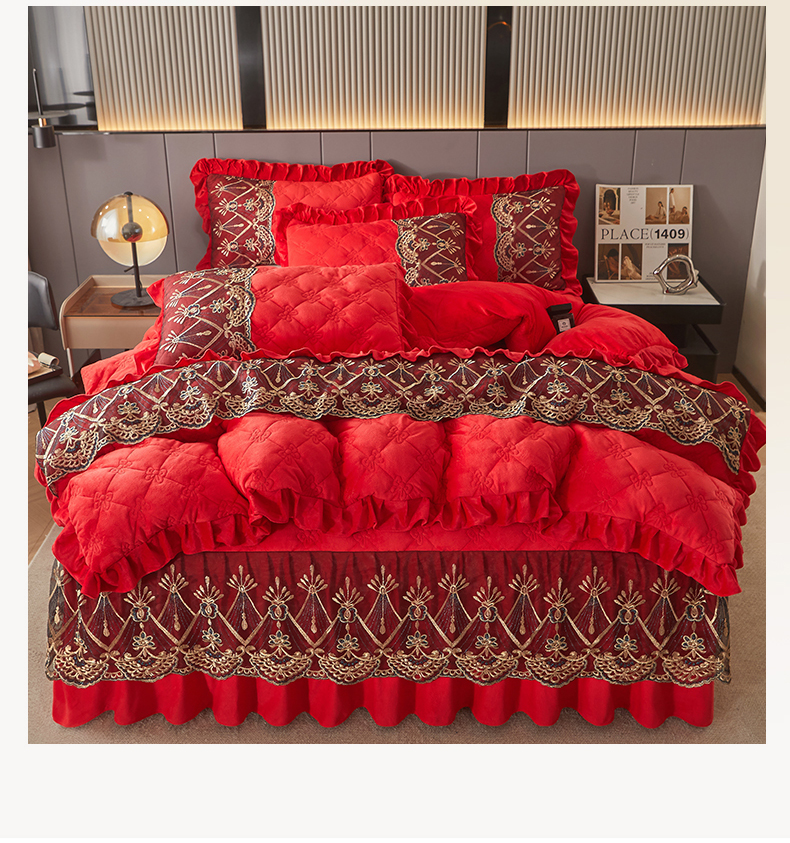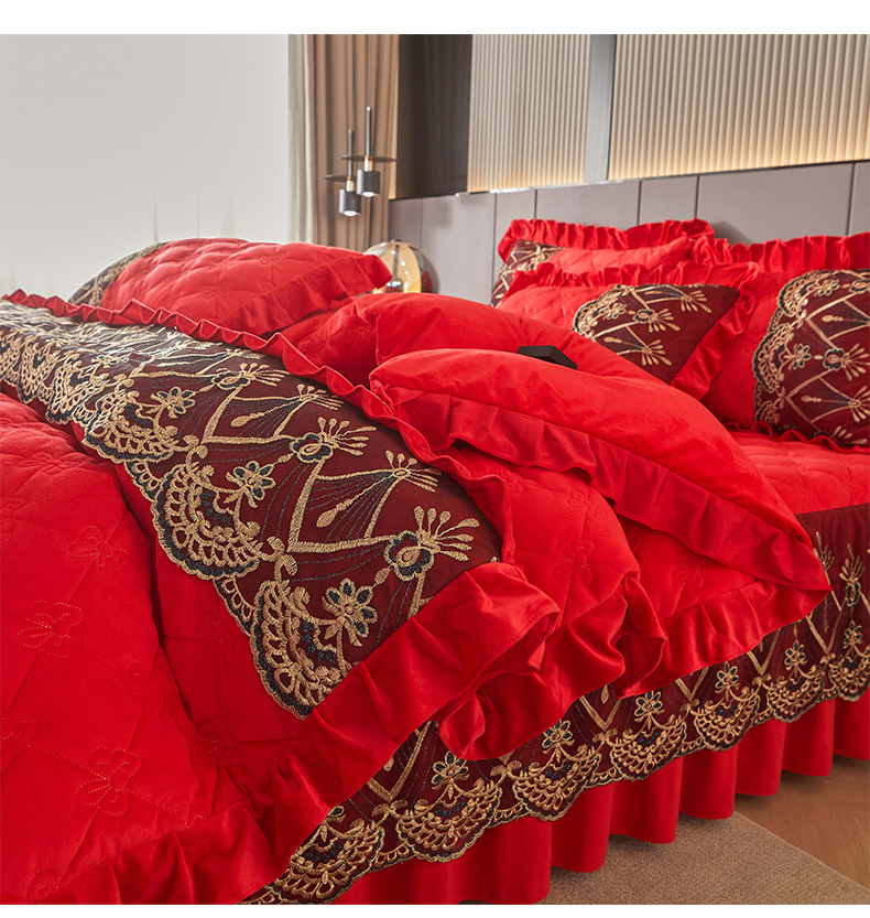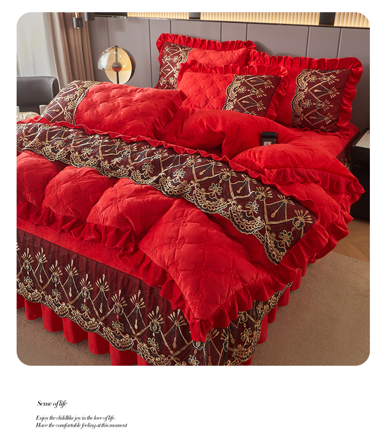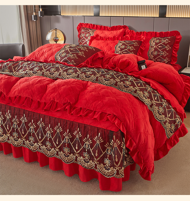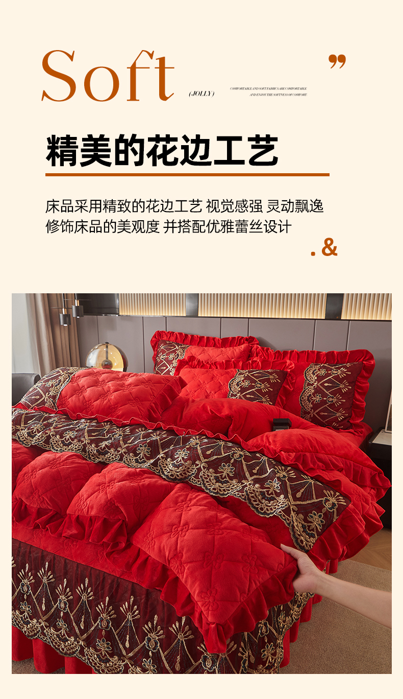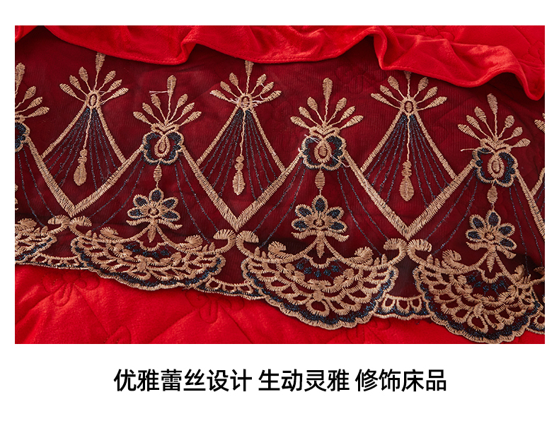当前位置: 91家纺网 > 商品网购 > 床品套件 > 四件套 > 水晶绒四件套 > 屹成家纺2025新款水晶绒夹棉绗缝床裙四件套(塞纳河畔)四件套起售价不低于230元 大红