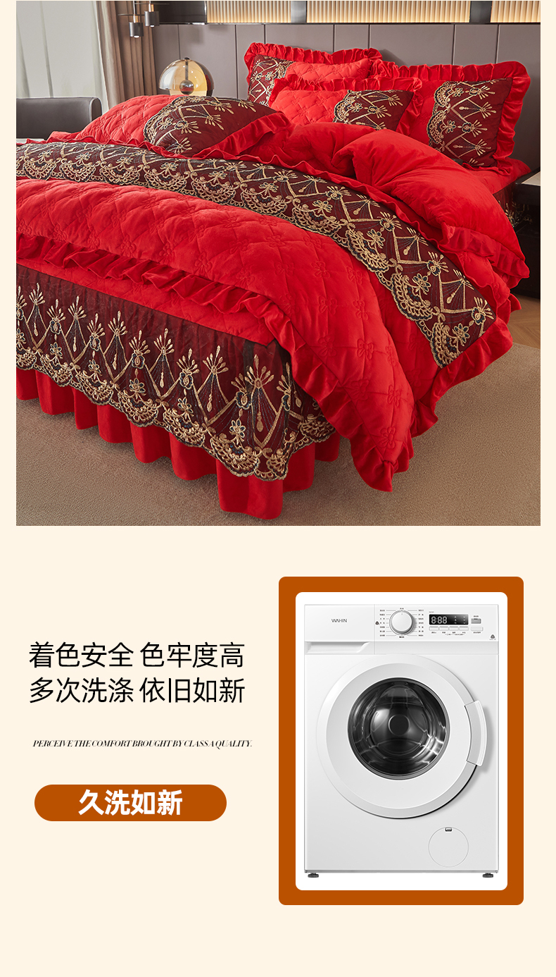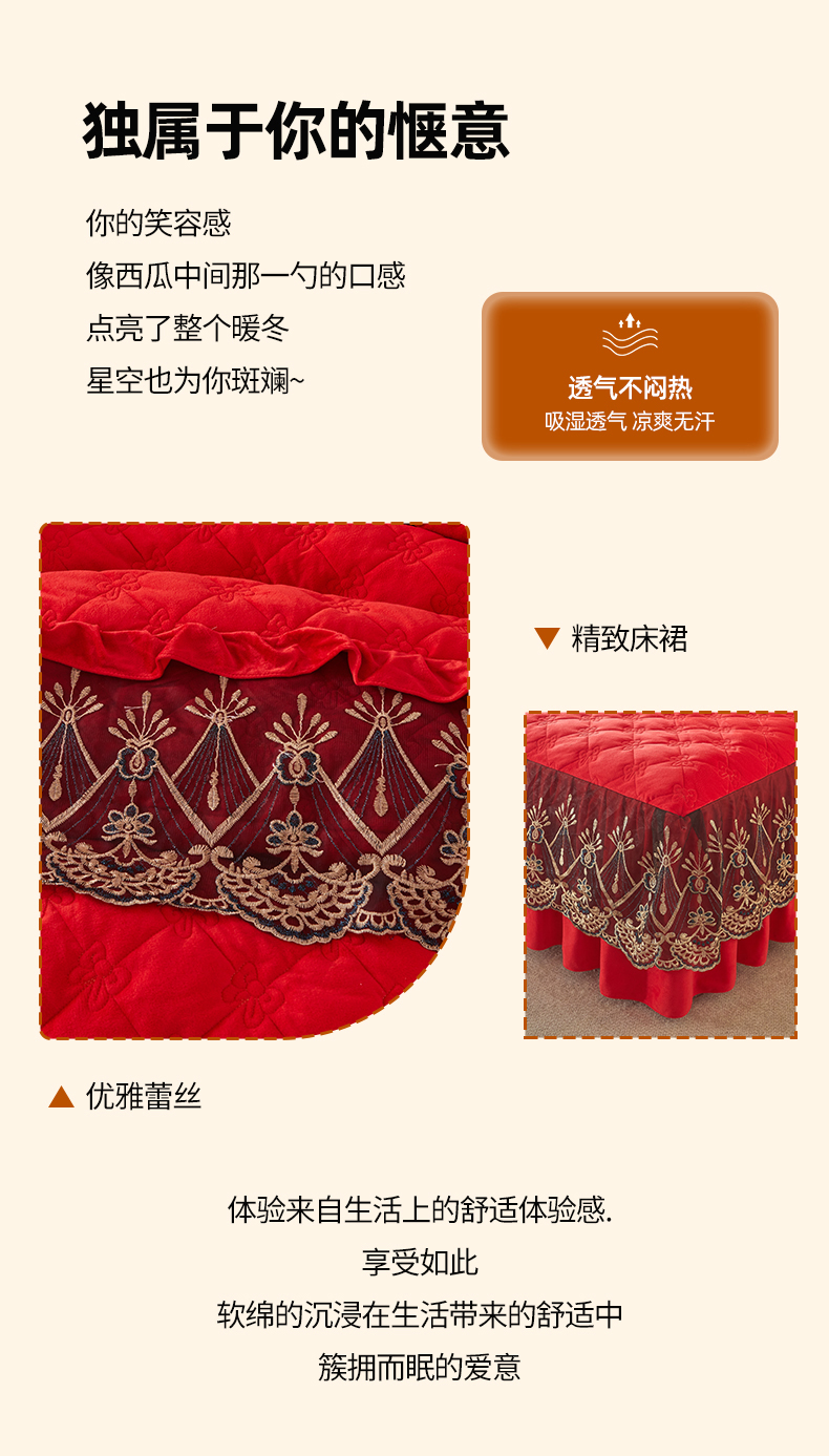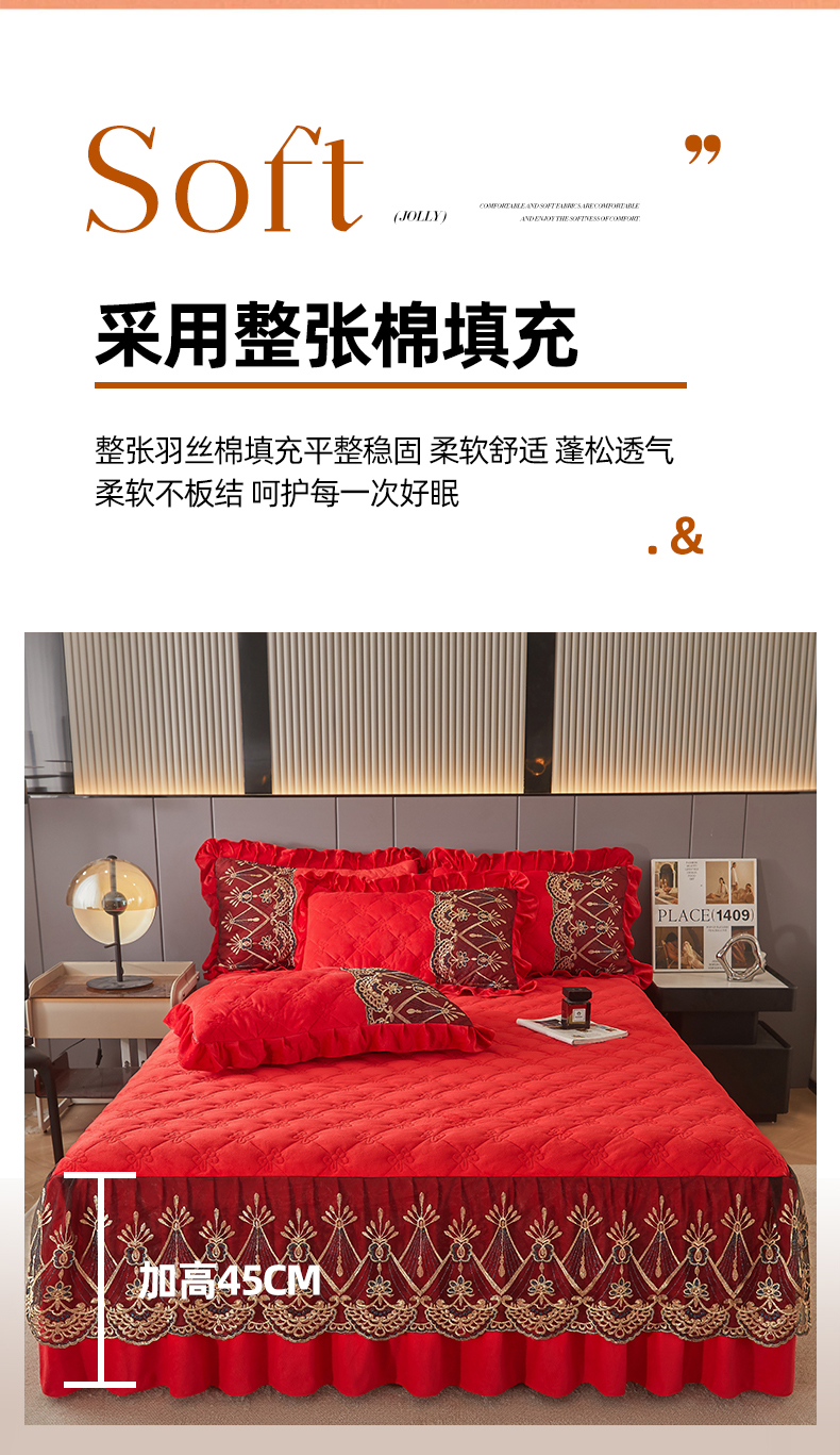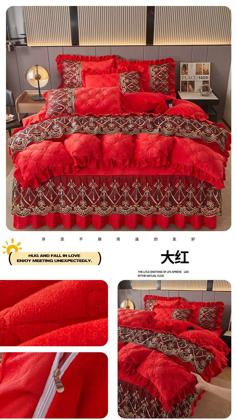 当前位置: 91家纺网 > 商品网购 > 床品套件 > 四件套 > 水晶绒四件套 > 屹成家纺2025新款水晶绒夹棉绗缝床裙四件套(塞纳河畔)四件套起售价不低于230元 大红