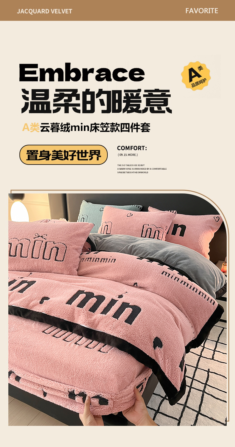 当前位置: 91家纺网 > 商品网购 > 床品套件 > 四件套 > 其它四件套 > 慕木家纺 2025新款A类高克重云暮绒床笠款四件套(跨境专供首选)提供买家秀 云暮绒min床笠四件套-桃夭粉