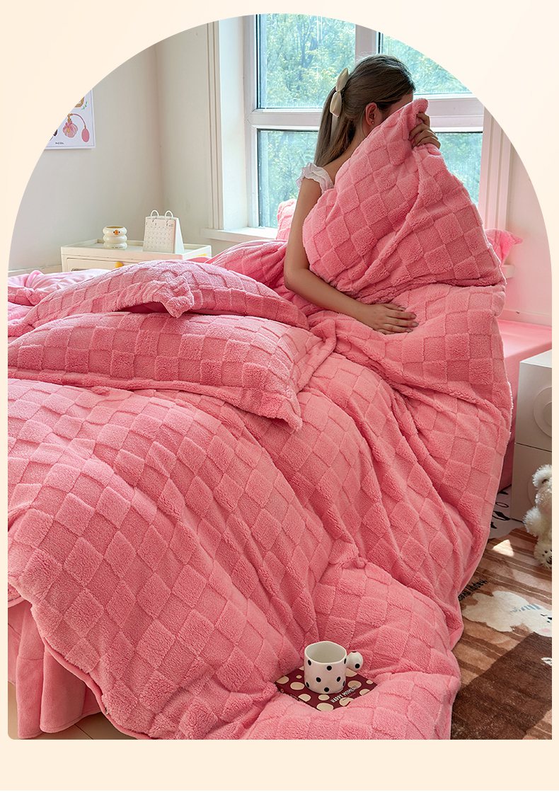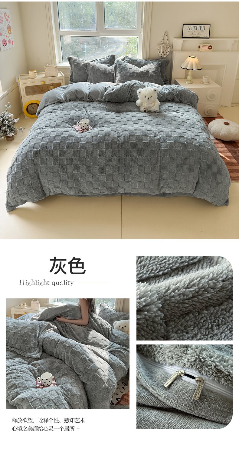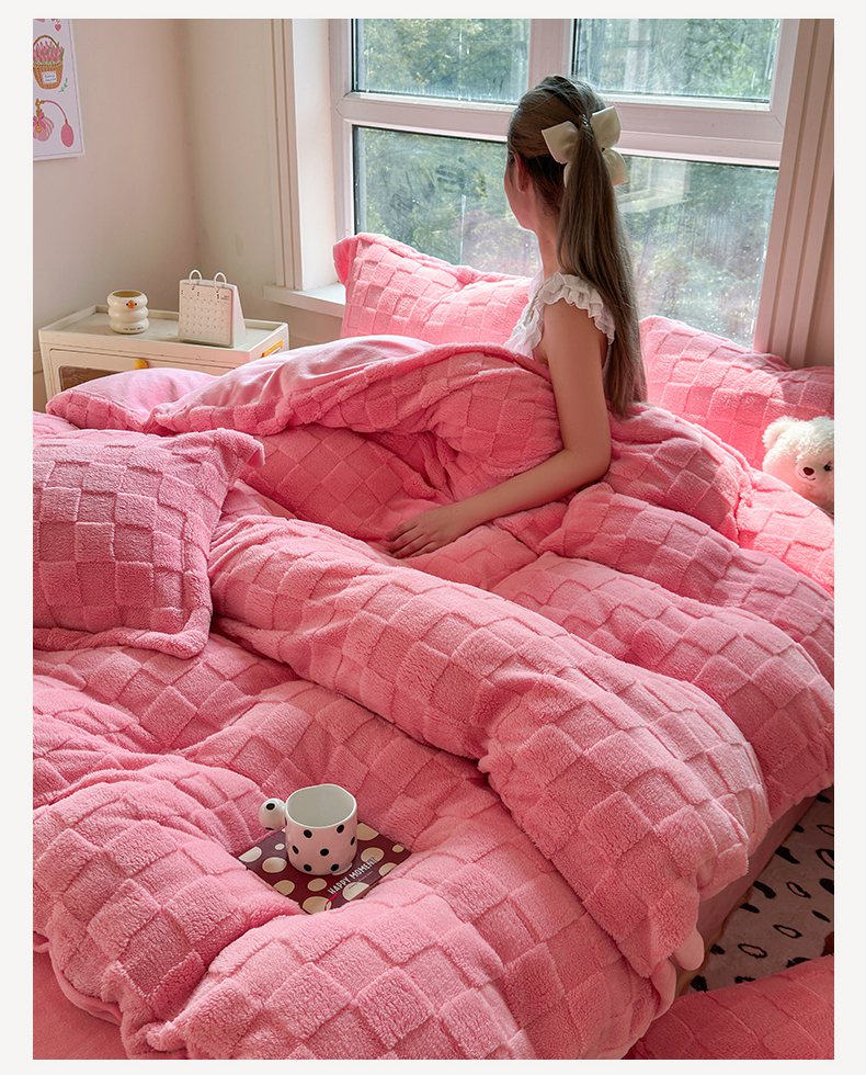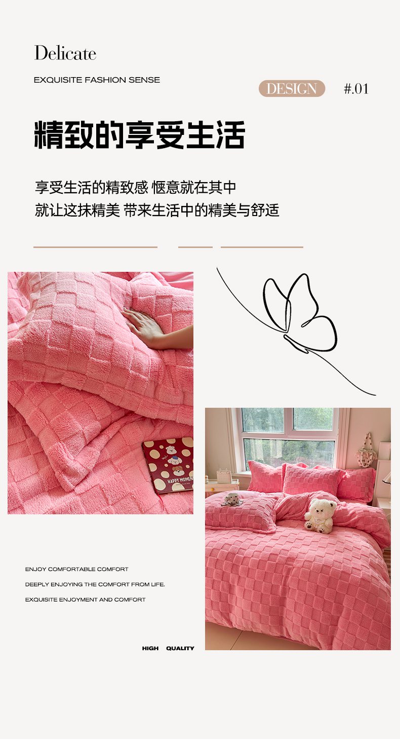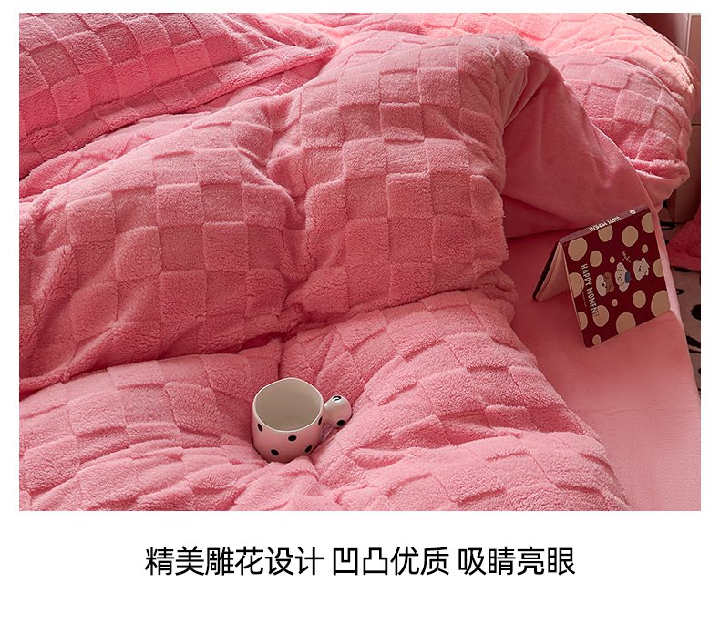 当前位置: 91家纺网 > 商品网购 > 床品套件 > 四件套 > 牛奶绒四件套 > 7V 2025新款A类牛奶绒立体格四件套雕花绒夹棉床盖床笠四件套全工艺牛奶绒 粉色