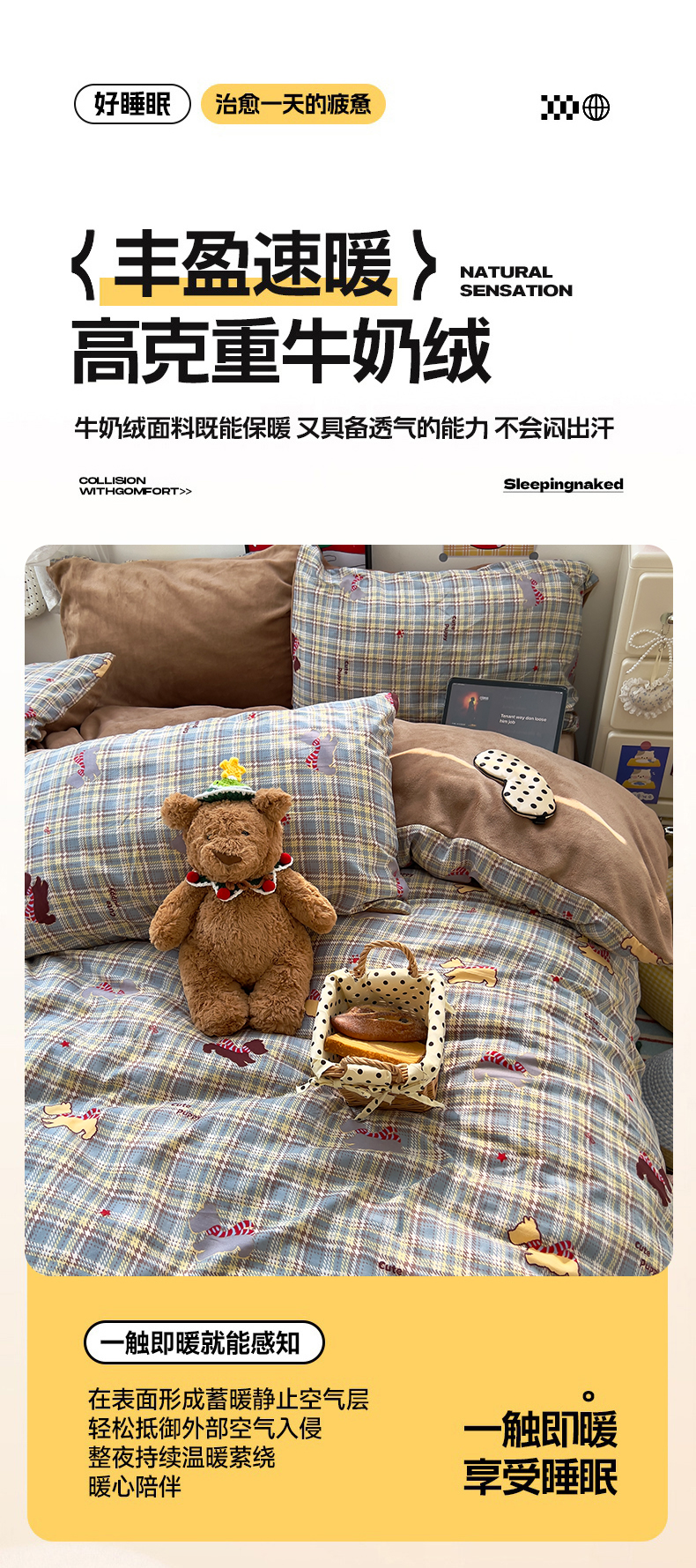 当前位置: 91家纺网 > 商品网购 > 床品套件 > 四件套 > 牛奶绒四件套 > 原素 2025秋冬A类水洗棉+200克牛奶绒四件套 萌宠喵喵-绒