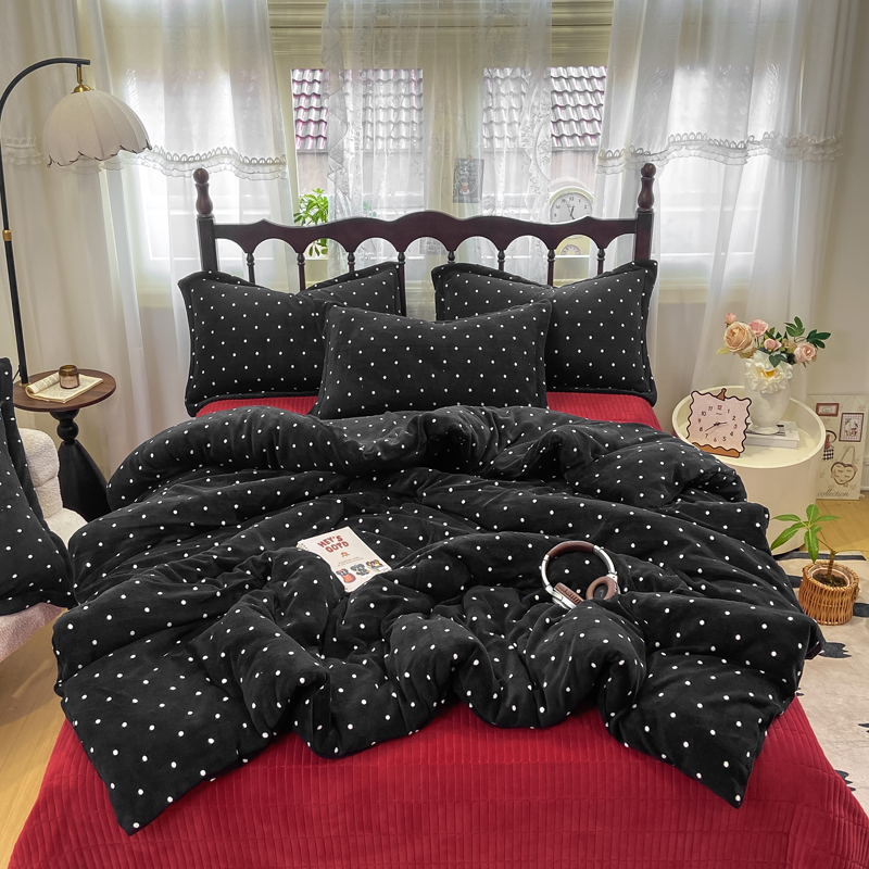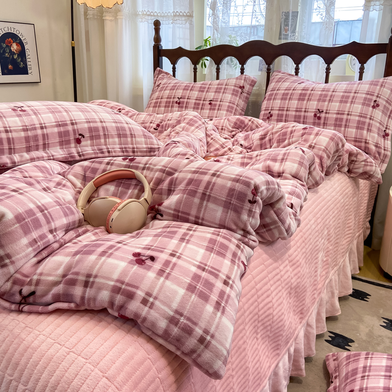 典曼家纺 2025新款亲肤舒适双面牛奶绒床盖款四件套 爱心紫