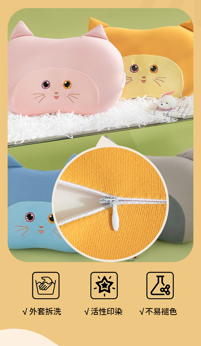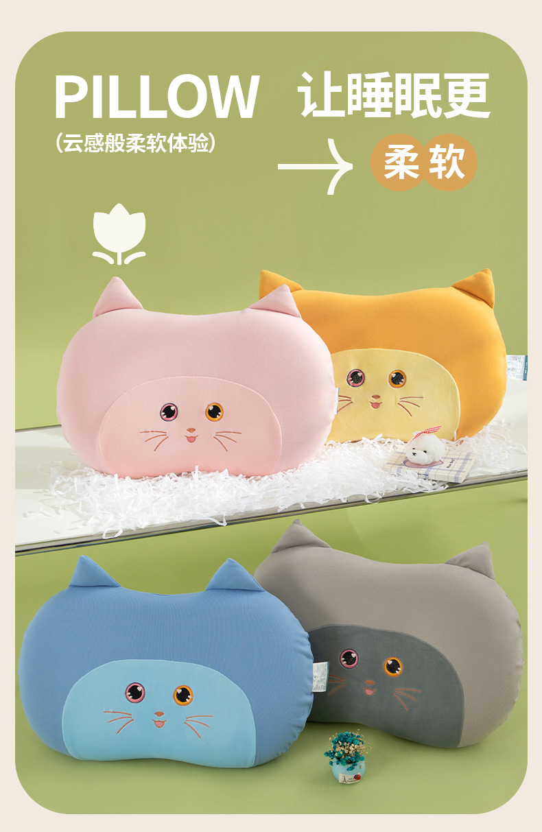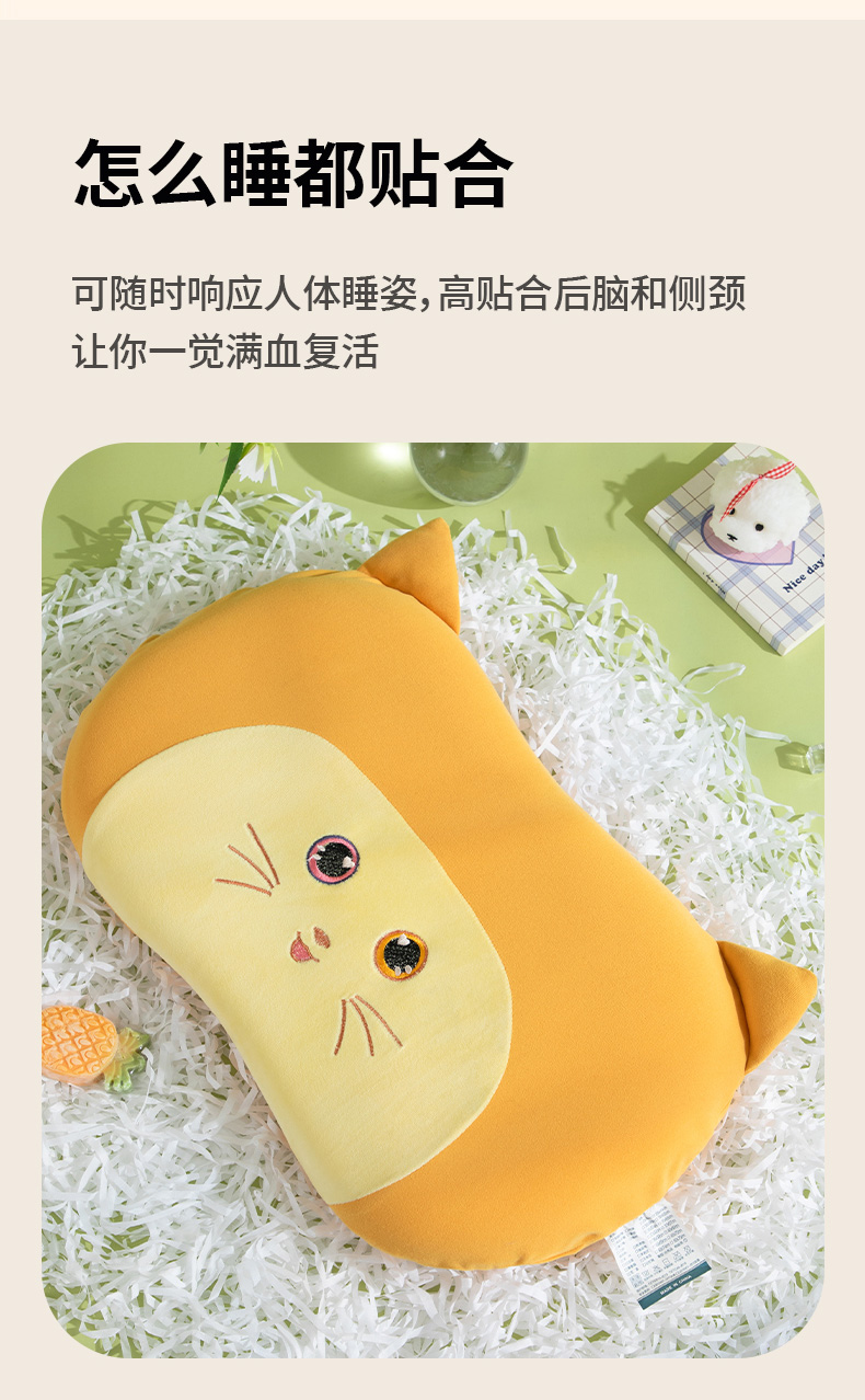商品名称:(总)仁宇枕业 2025新款新品水晶绒儿童卡通记忆枕头淘气猫记忆枕头枕芯