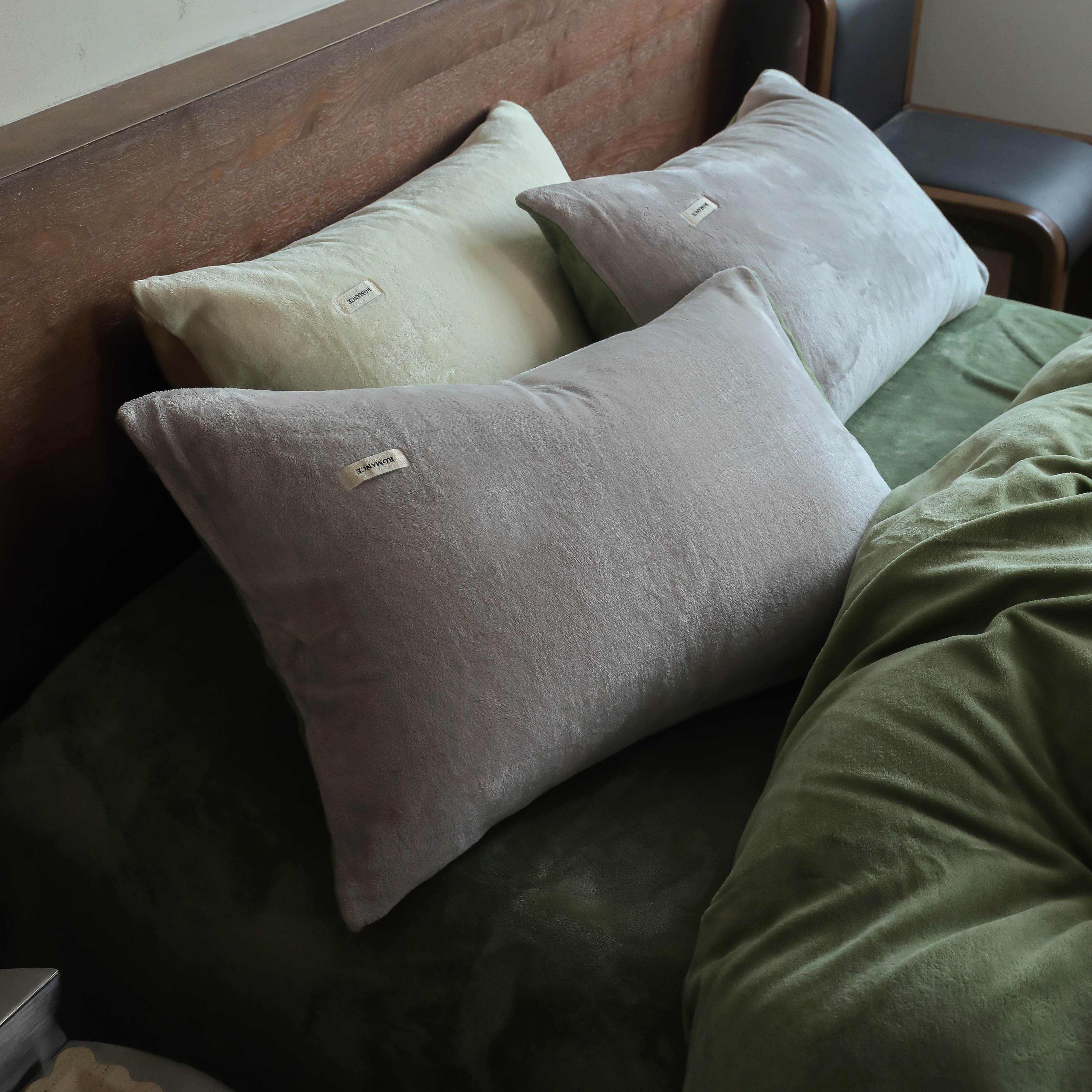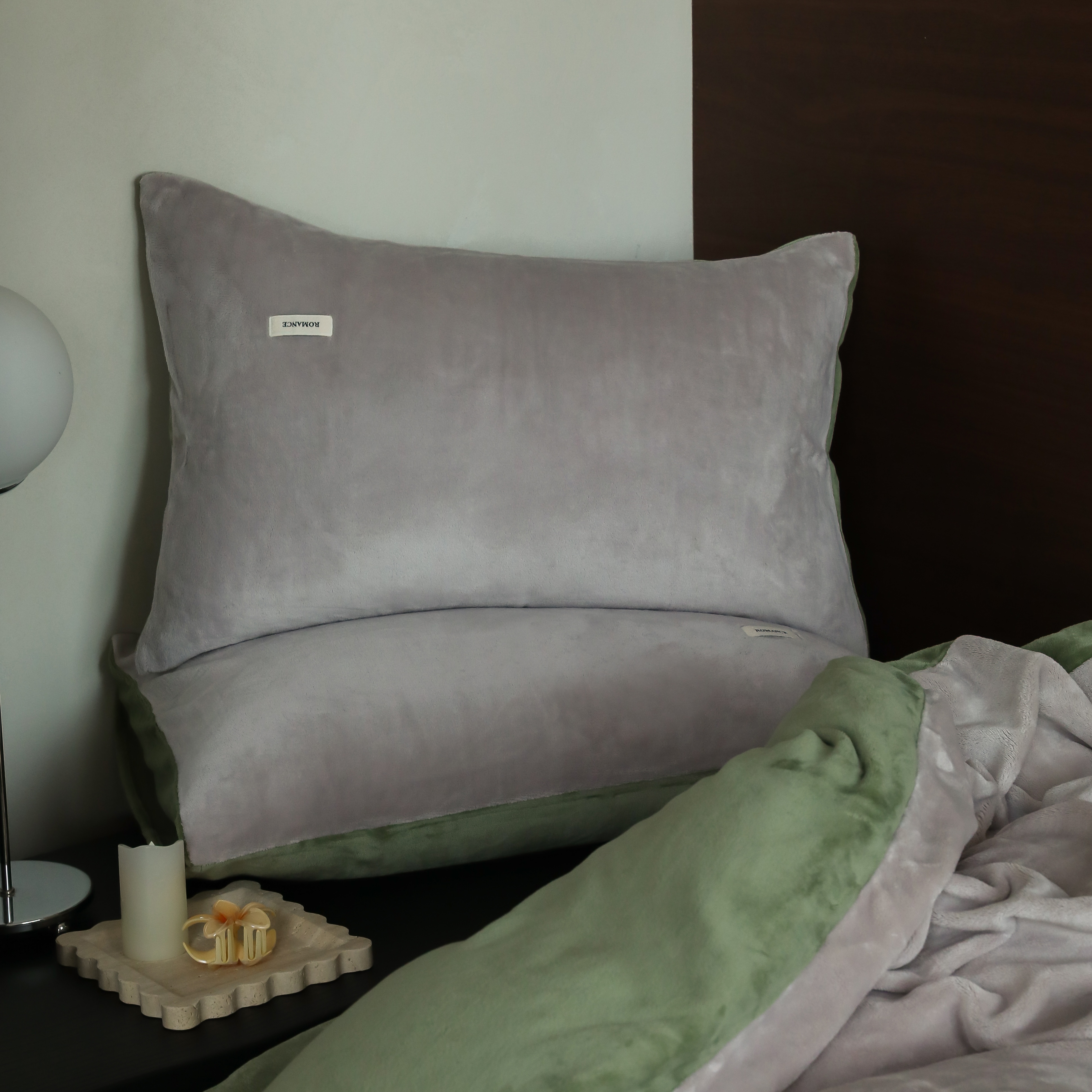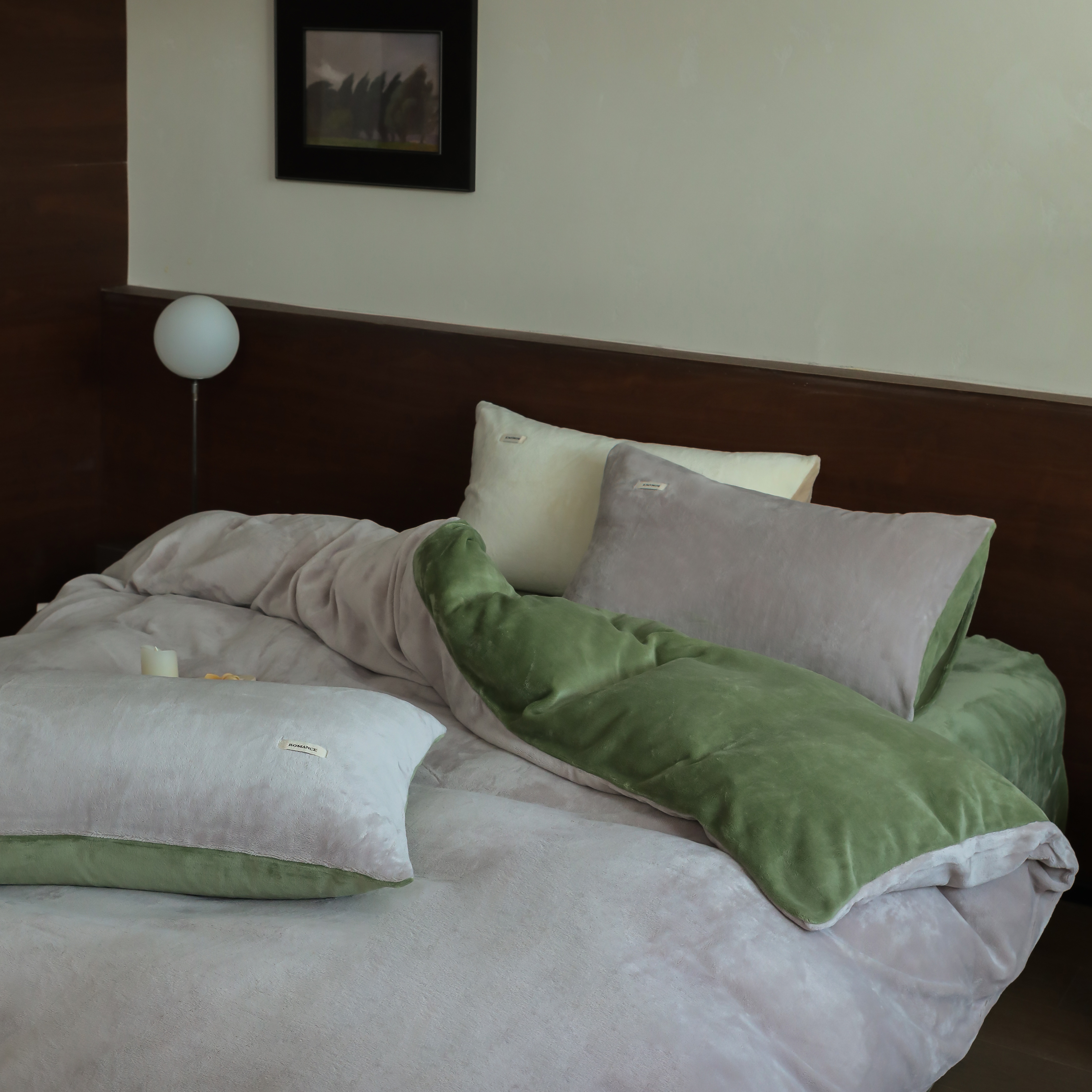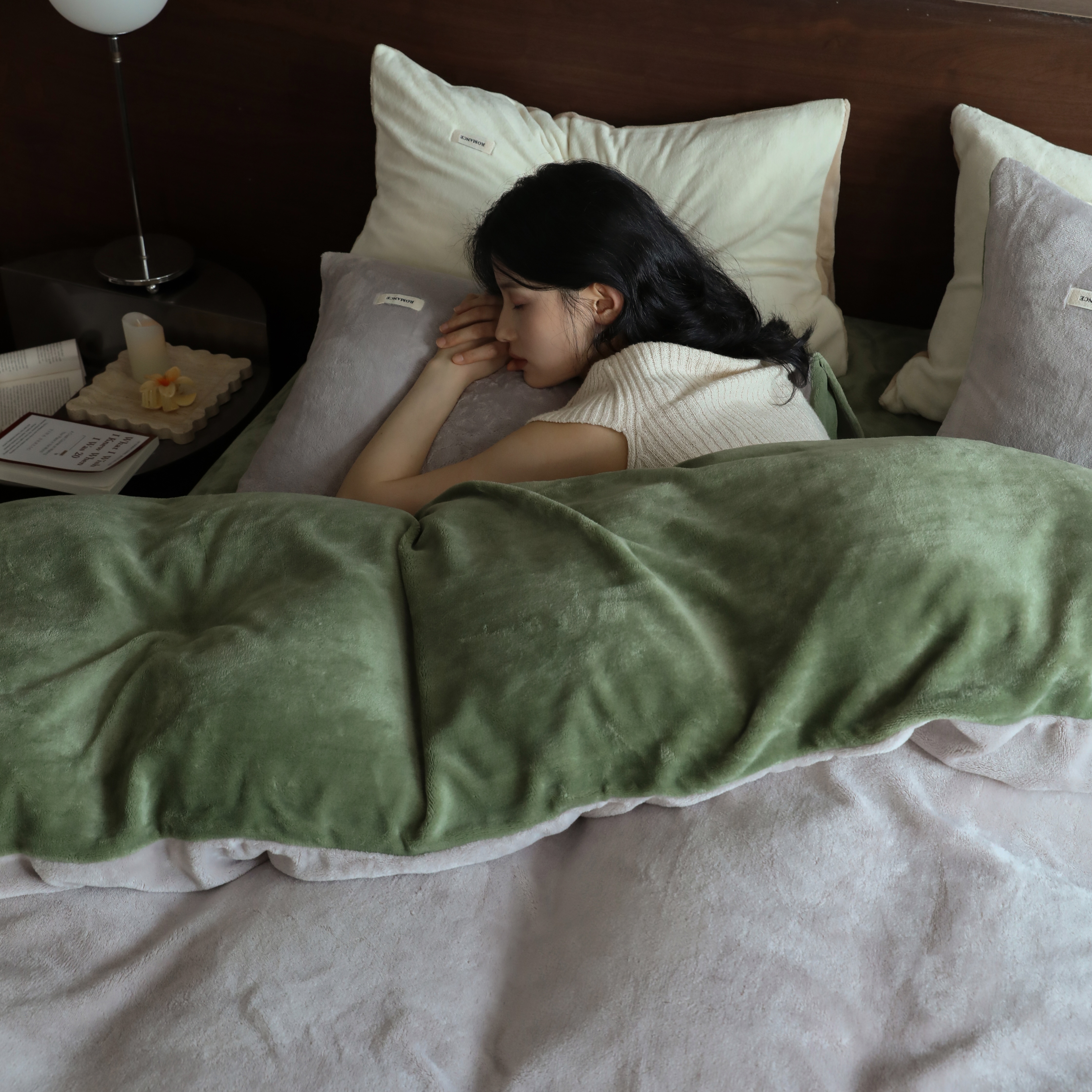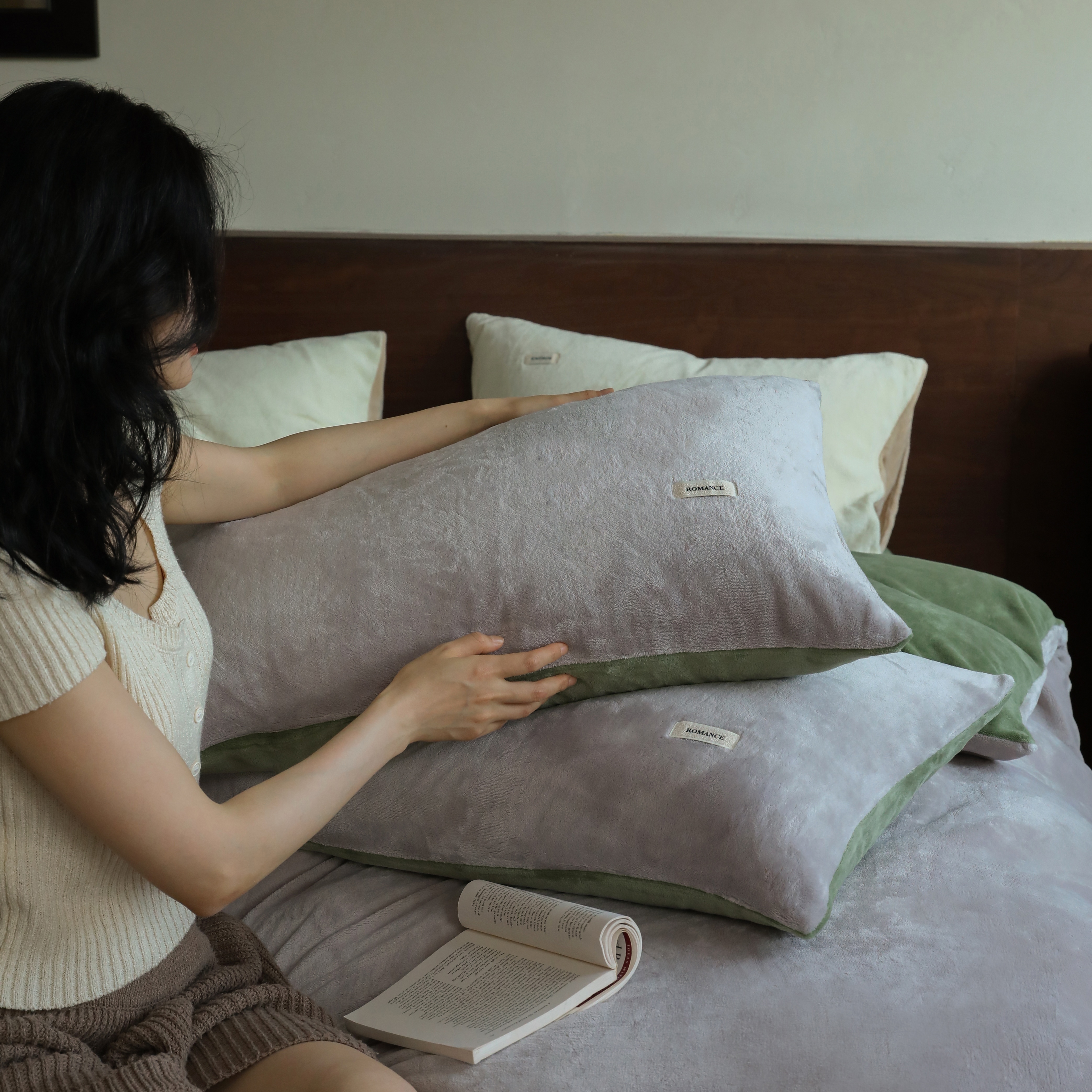 时光里 2025新款230克纯色简约双拼牛奶绒四件套套件 星际灰拼橄榄绿