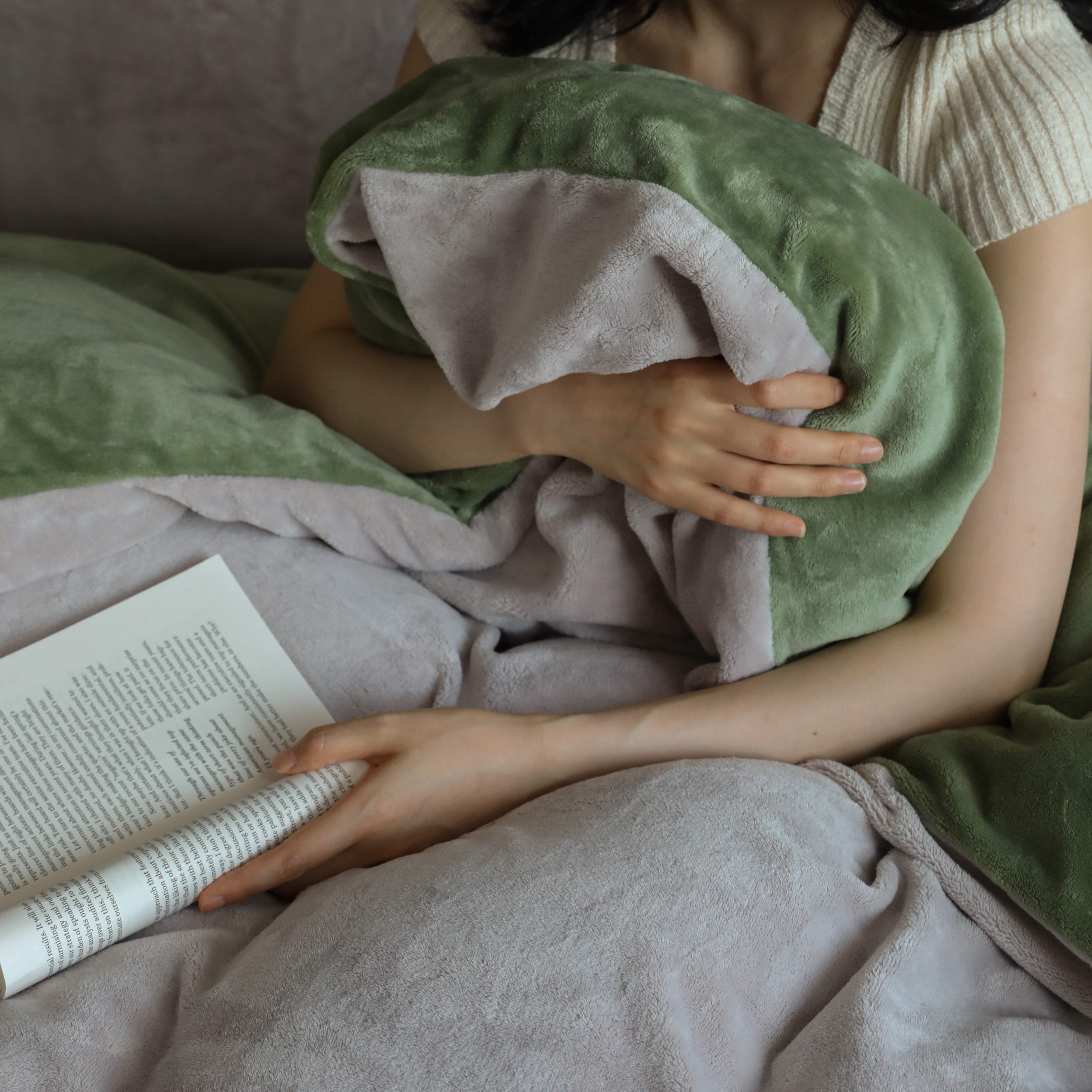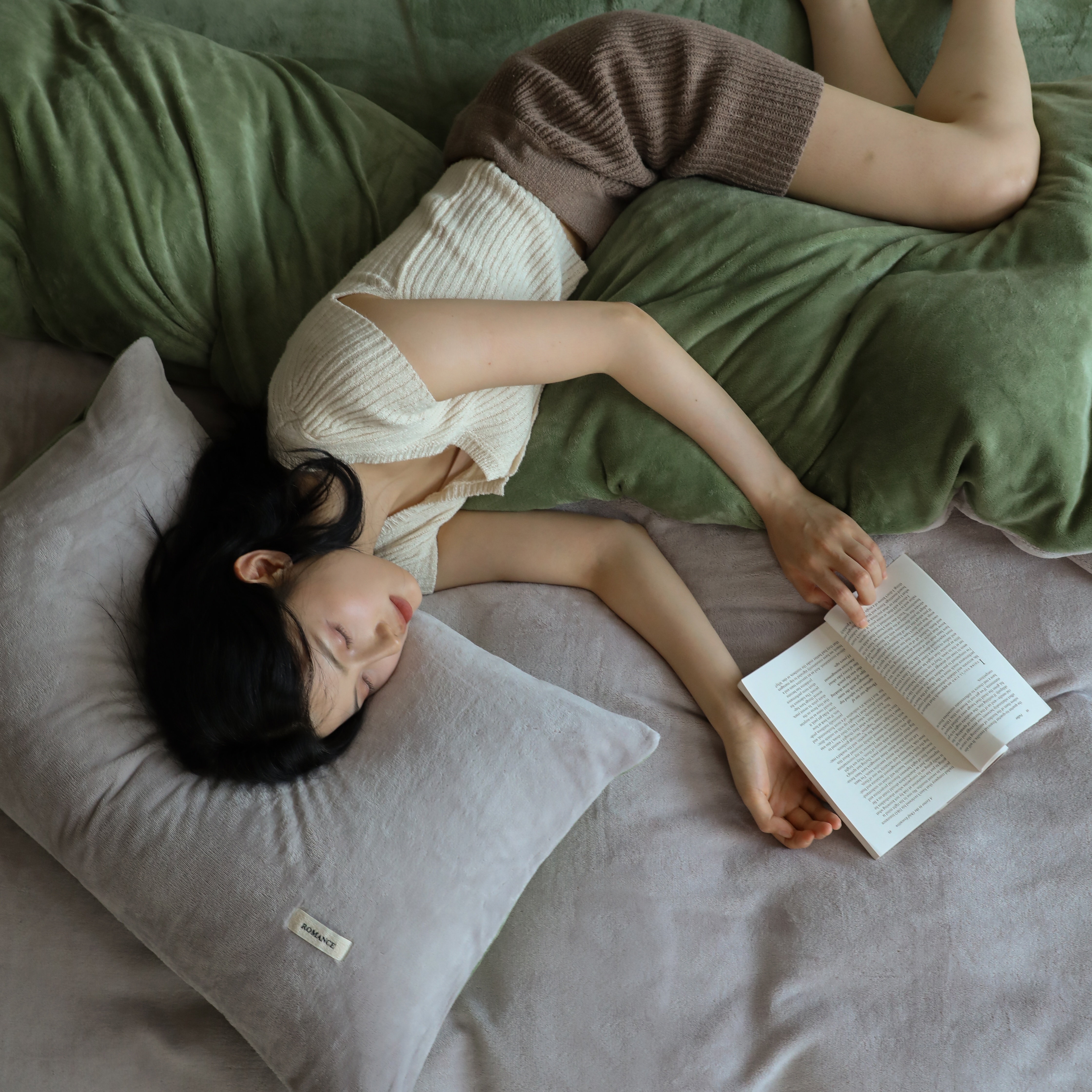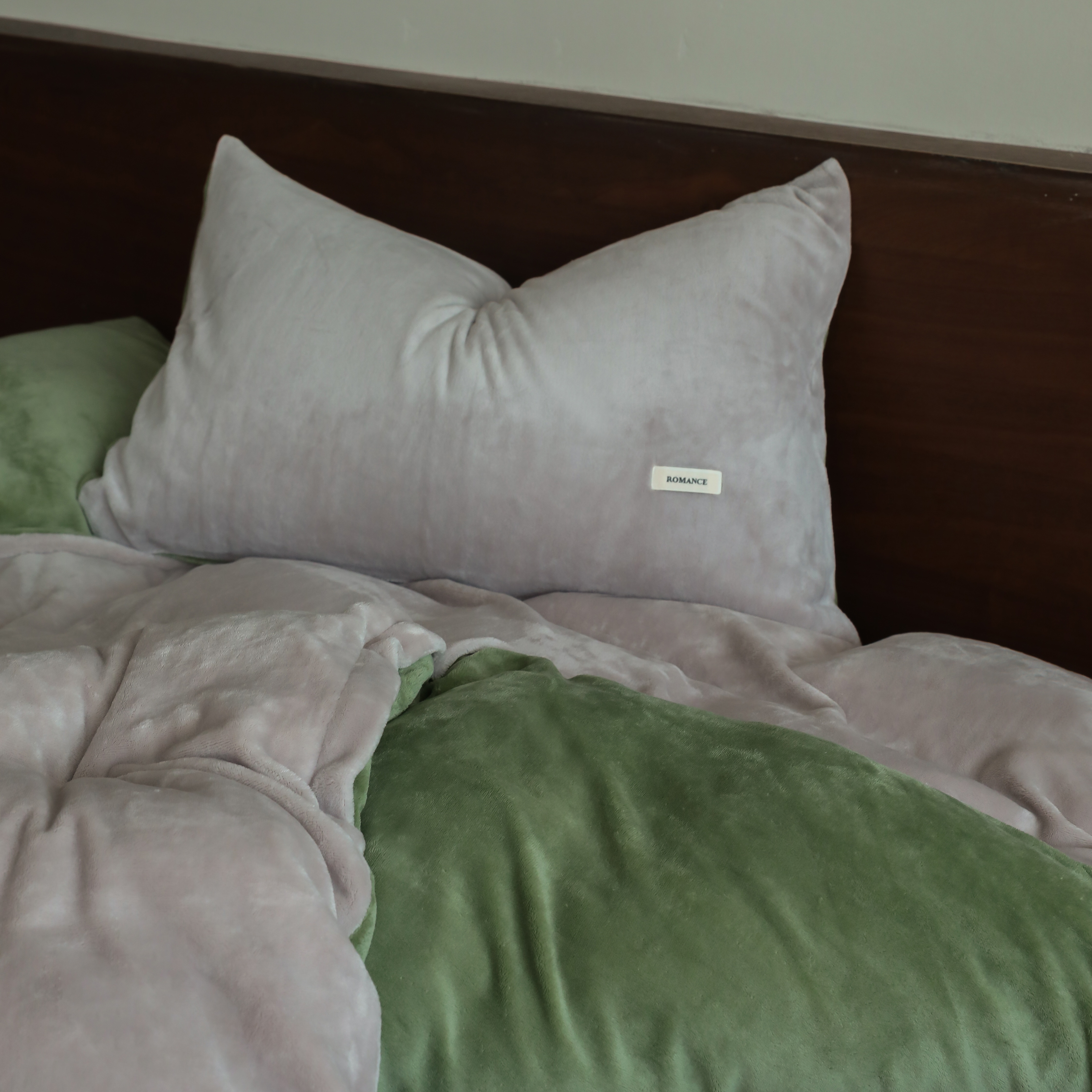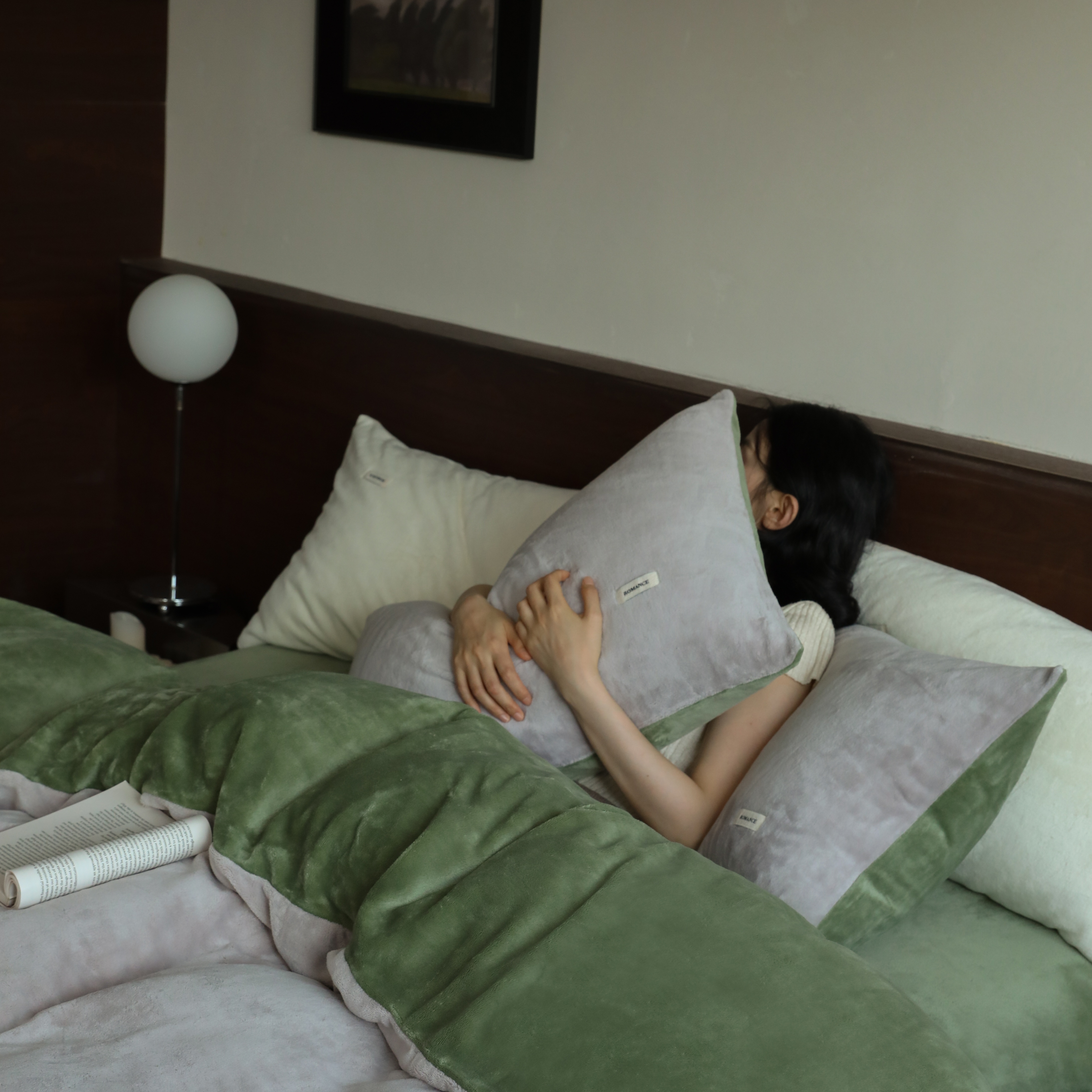 时光里 2025新款230克纯色简约双拼牛奶绒四件套套件 星际灰拼橄榄绿