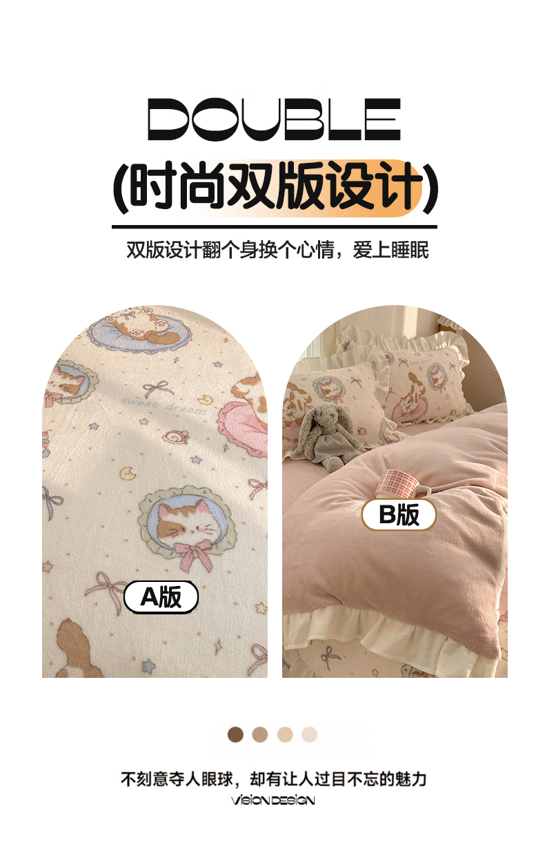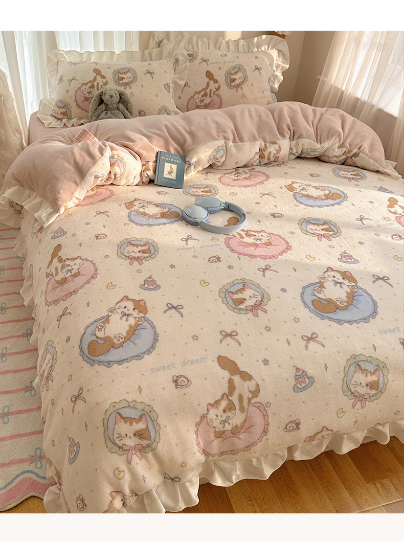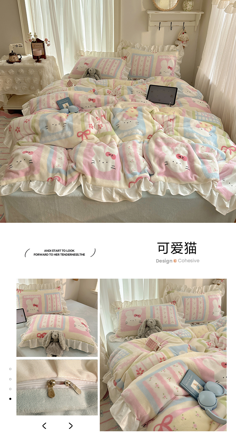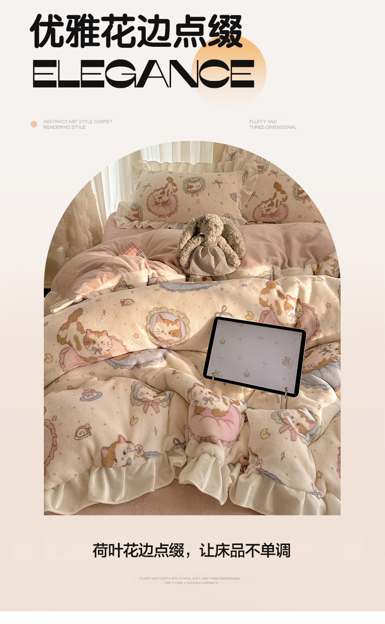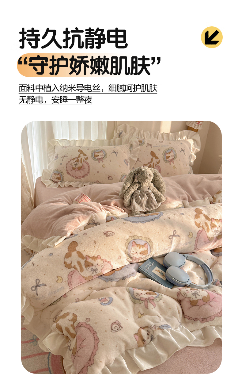 (总)萝莉家纺 2025秋冬新品韩版花边款加厚牛奶绒四件套,猫狗,花粉,花绿,可爱猫,甜品店,小肥猫,心心,熊熊