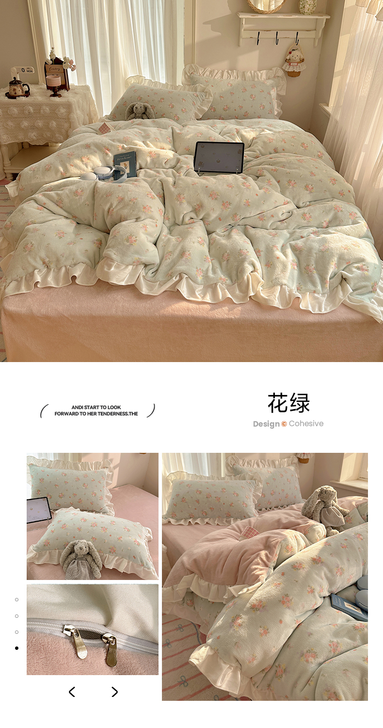 萝莉家纺 2025秋冬新品韩版花边款加厚牛奶绒四件套 心心