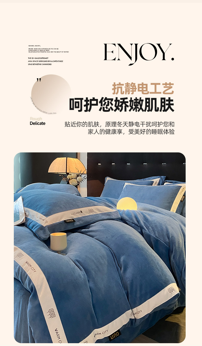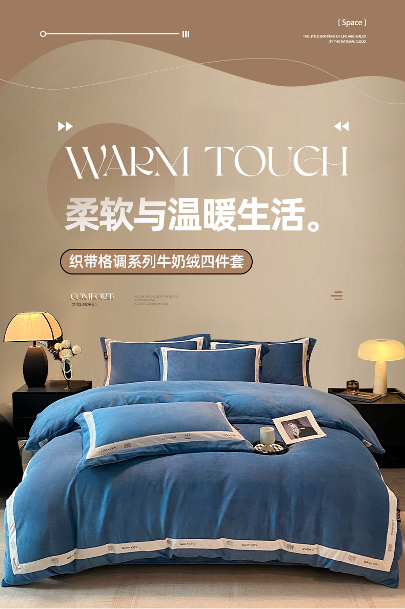 当前位置: 91家纺网 > 商品网购 > 床品套件 > 四件套 > 牛奶绒四件套 > 绒城 2025新款简约织带款牛奶绒四件套-格调 格调-景泰蓝