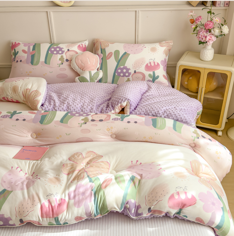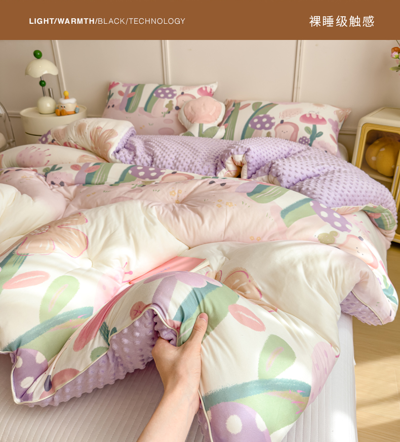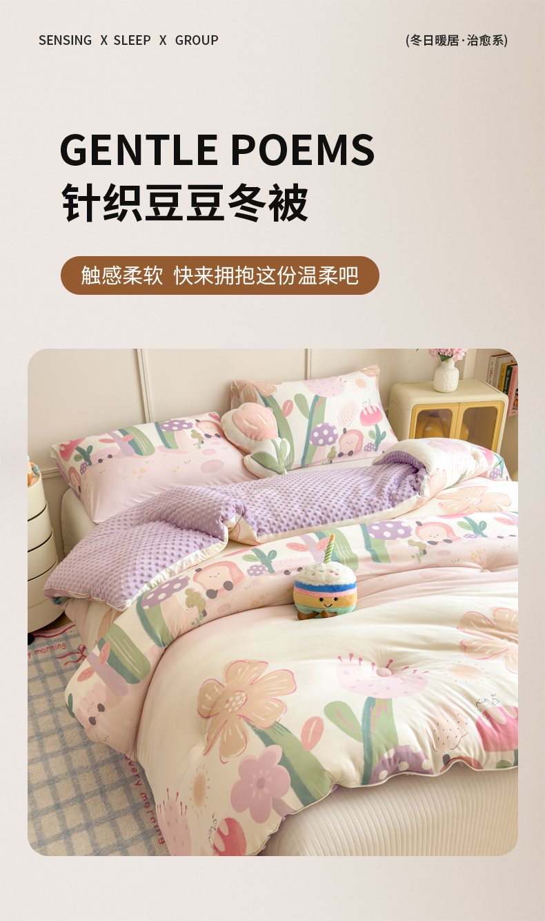 • 91家纺网 家纺一手货源 找家纺 米菲 2025新款针织豆豆冬被被子被芯 后花园