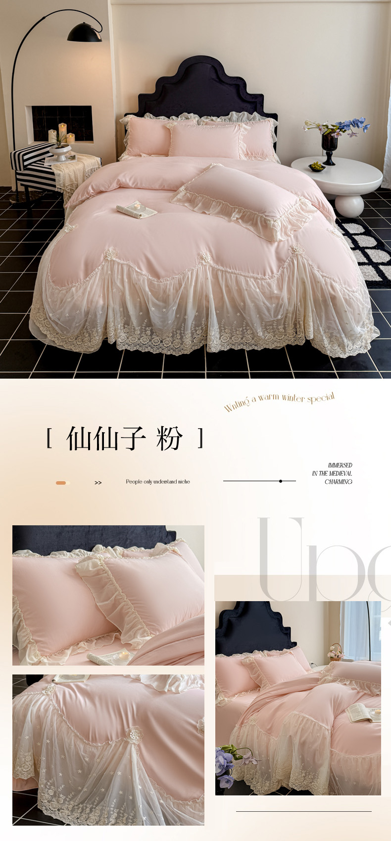 (总)艺玲家纺 2025新款韩版亲肤水洗棉刺绣花边床裙四件套,香香小姐-粉玉,香香小姐-米黄,香香小姐-浅绿,香香小姐-浅紫