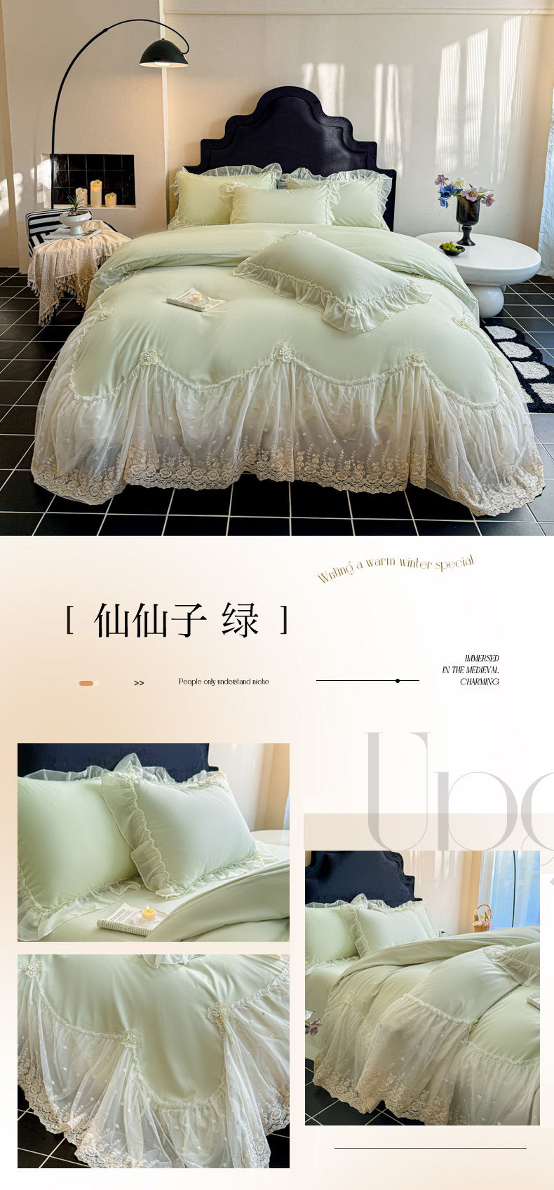 (总)艺玲家纺 2024新款韩版公主风牛奶绒蝴蝶结蕾丝花边四件套,小香风-本白,小香风-果绿,小香风-浅兰,小香风-浅玉,小香风-青灰,小香风-雪紫