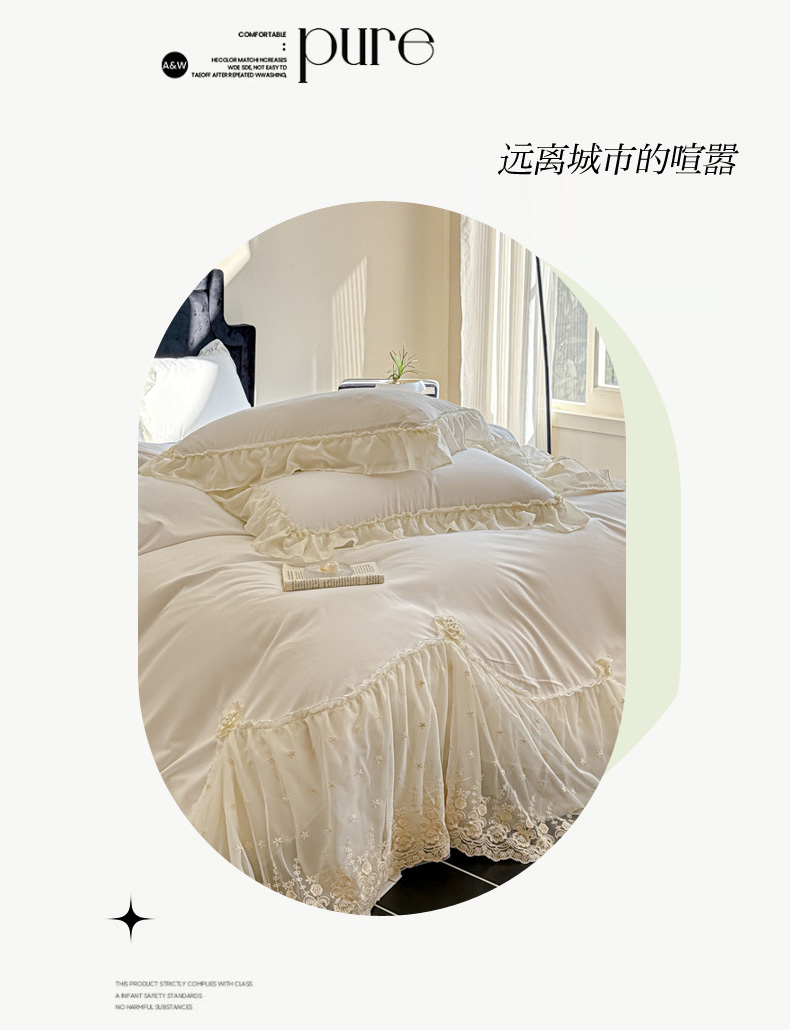 (总)艺玲家纺 2025新款糯小棉爱丽莎雪纺花边四件套,爱丽莎-白,爱丽莎-粉,爱丽莎-黄,爱丽莎-蓝,爱丽莎-绿,爱丽莎-紫