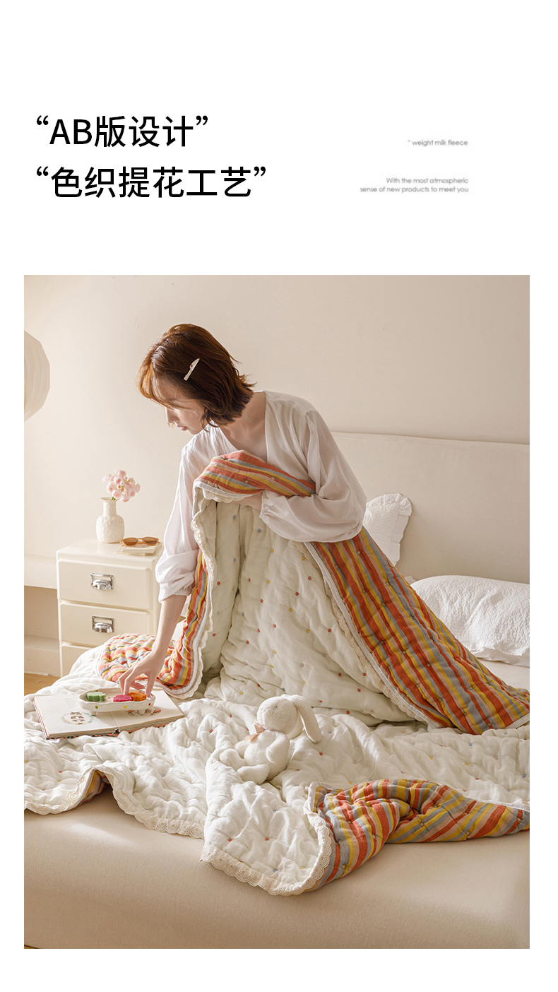 商品名称:麻依 2025新款安心棉十层纱布泡芙被全棉纱布被子被芯 彩虹点点