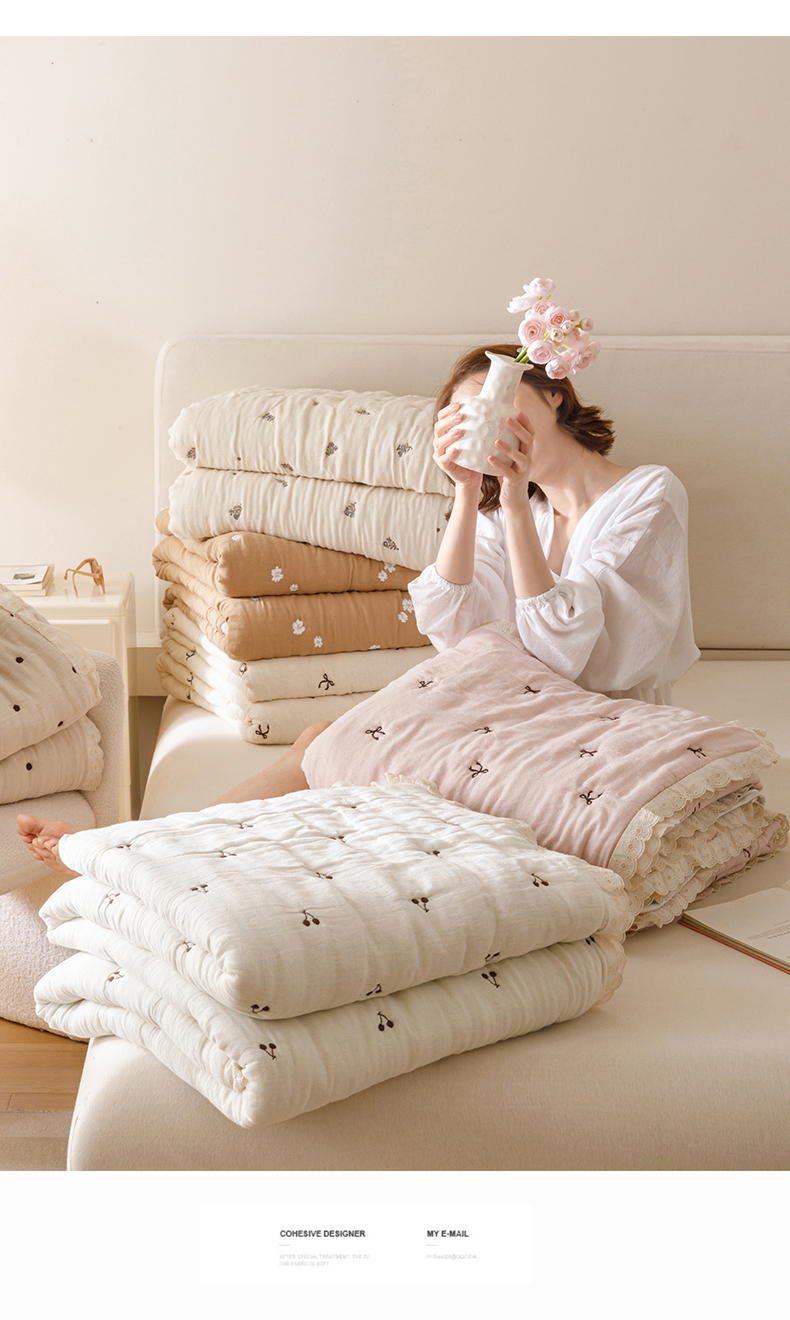 商品名称:麻依 2025新款安心棉十层纱布泡芙被全棉纱布被子被芯 小波点