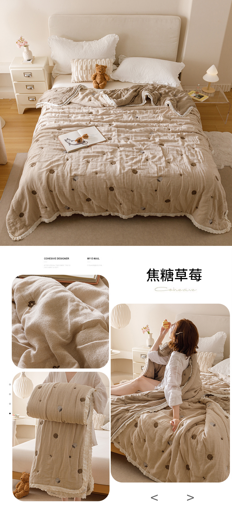 (总)麻依 2025新款十层纱布棉花糖春秋被被子泡芙被,抱抱熊,点点-白,点点-灰,花影-粉,花影-米,墨心,奶油草莓,帕帕熊,牵手小熊,生日腊肠狗,甜甜圈小熊,小蝴蝶结,小南瓜,小柿子,樱桃香