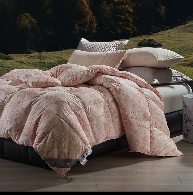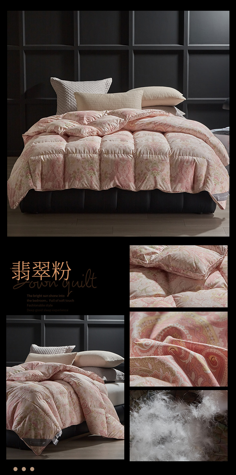 • 91家纺网 家纺一手货源 找家纺 暖羽屋羽绒馆 2025新款印花鹅绒丝被芯 白鹅绒羽毛被子 双人加厚冬被 春秋被子2米 翡翠粉