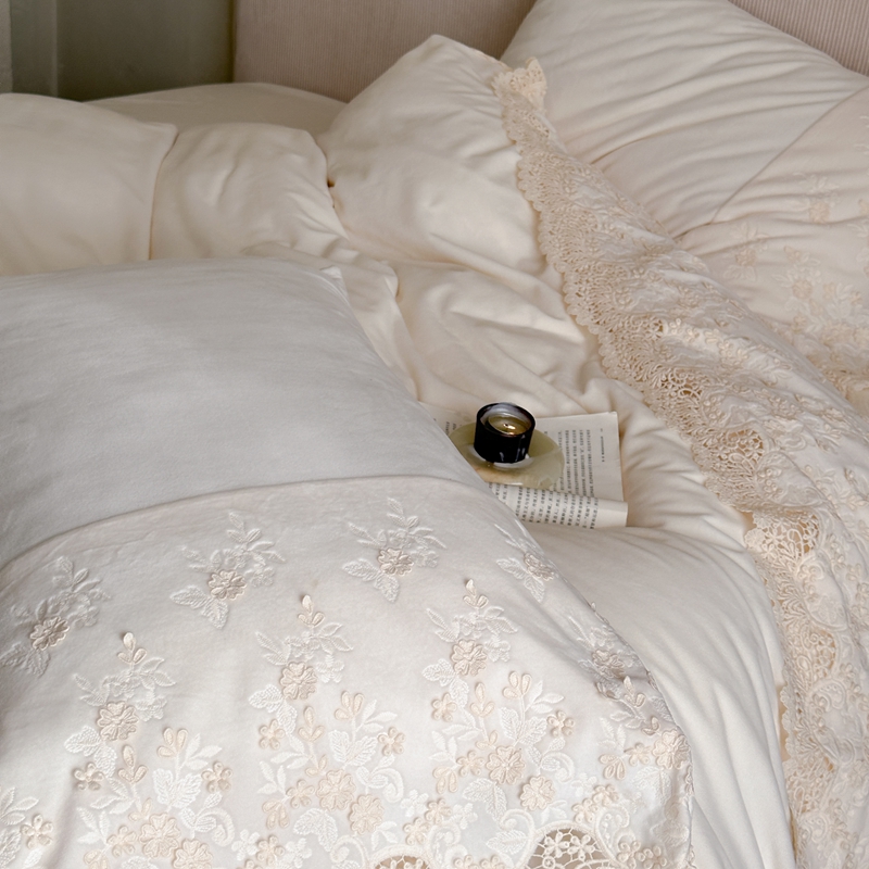 商品名称:(总)佳汐蓝家纺 2025新款230g婴肤绒立体刺绣花边四件套-秘密花园
