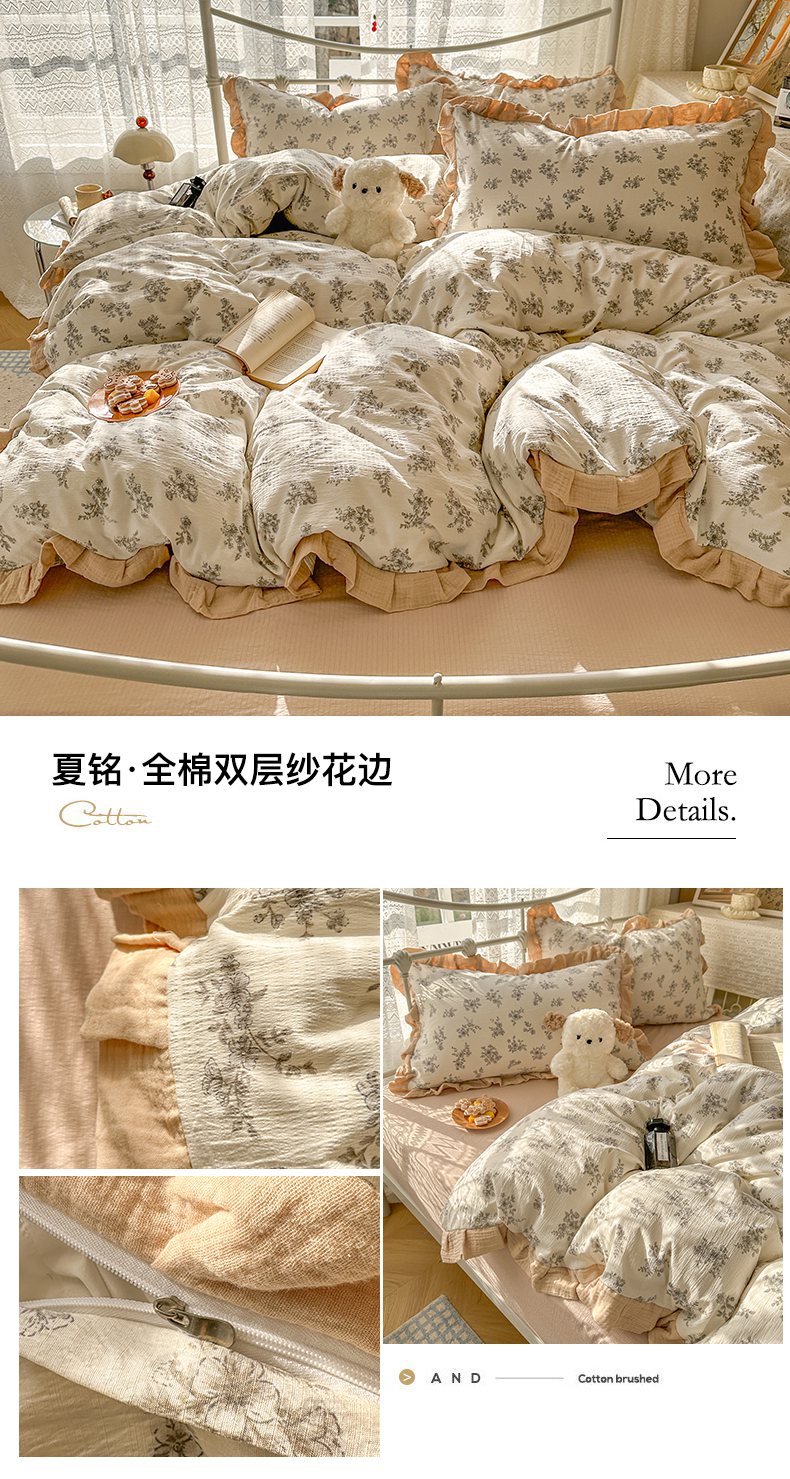 当前位置: 91家纺网 > 商品网购 > 床品套件 > 四件套 > 全棉普通四件套 > 颜选 2025新款全棉双层纱花边面料木棉四件套 星月-全棉花边双层纱