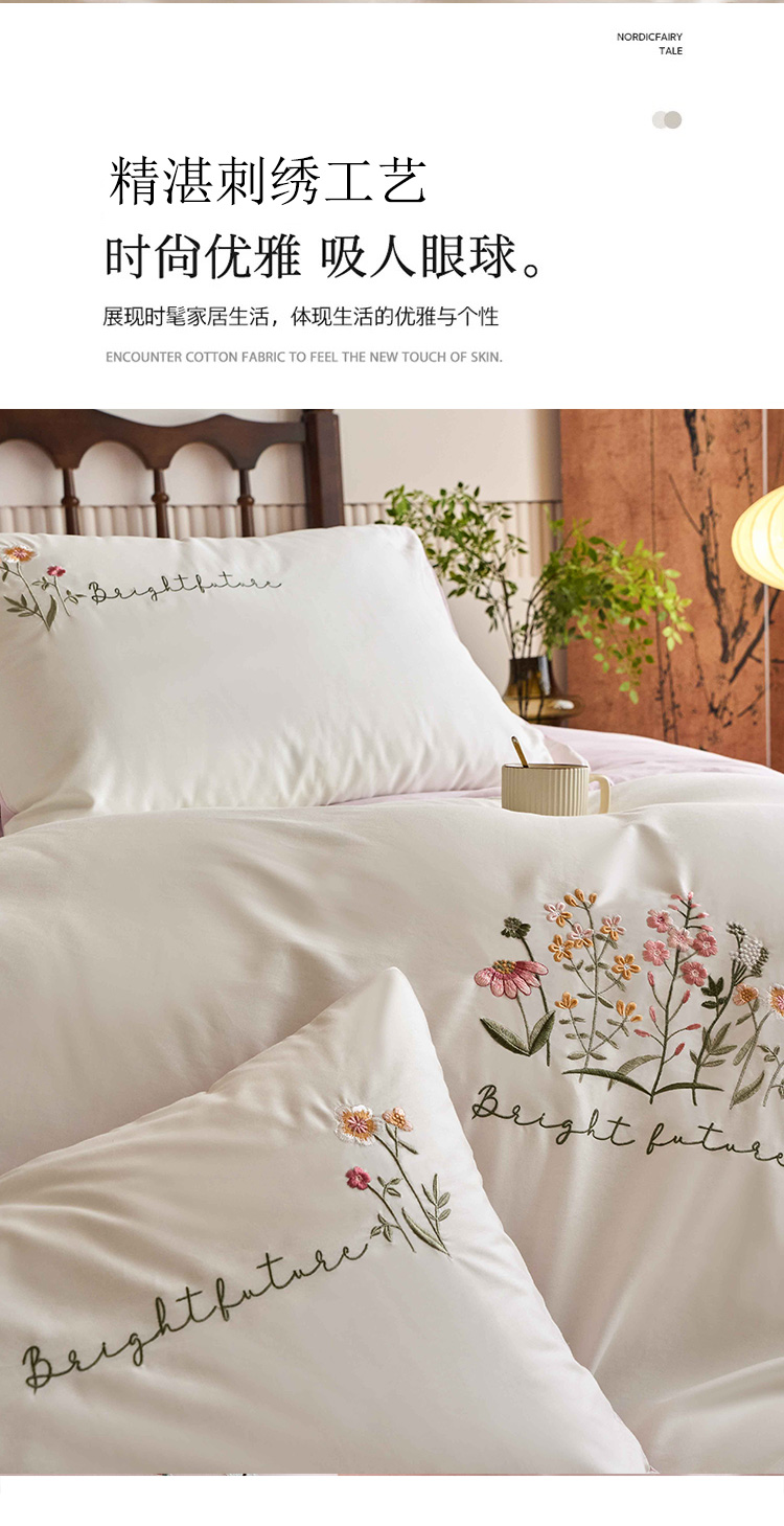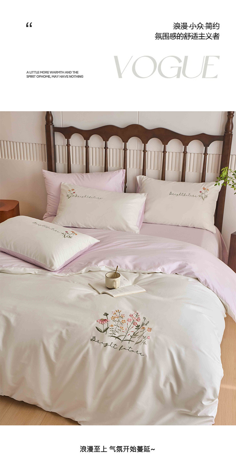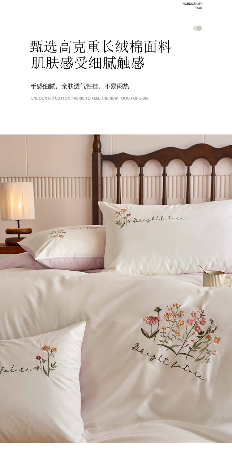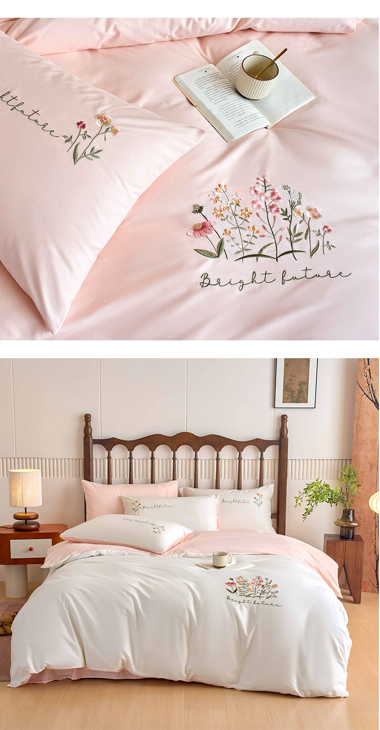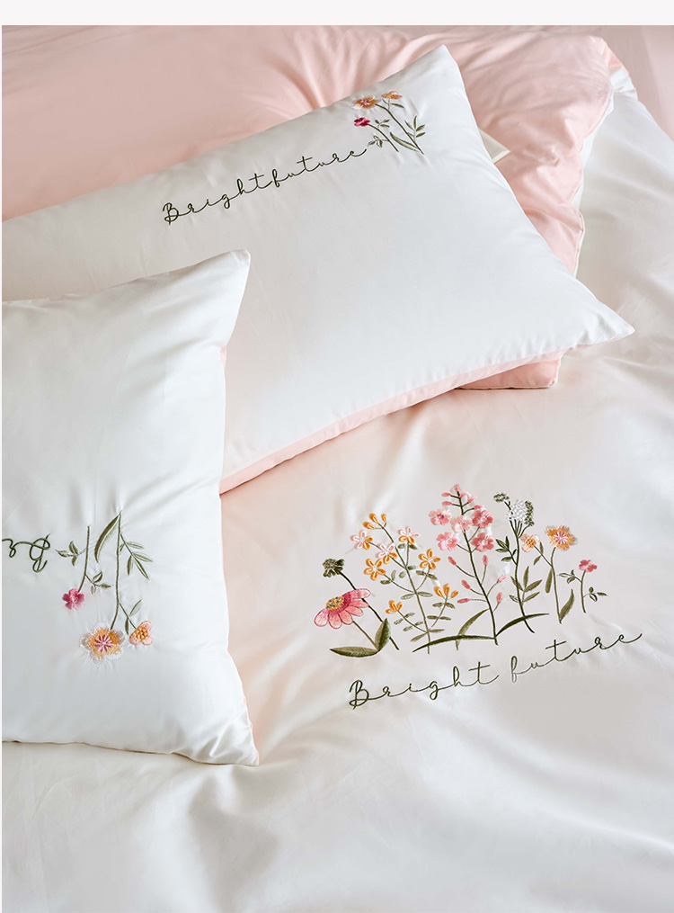 商品名称:悦然毛巾被 2025新款全棉纯棉斜纹毛巾绣四件套 花语情怀白+粉