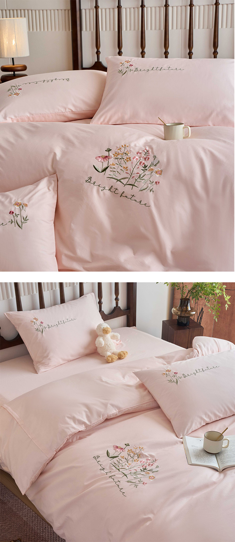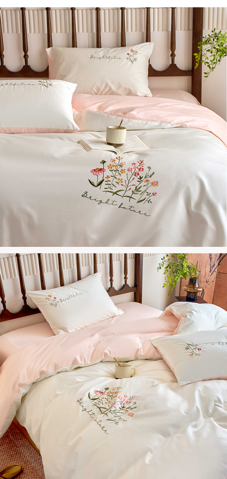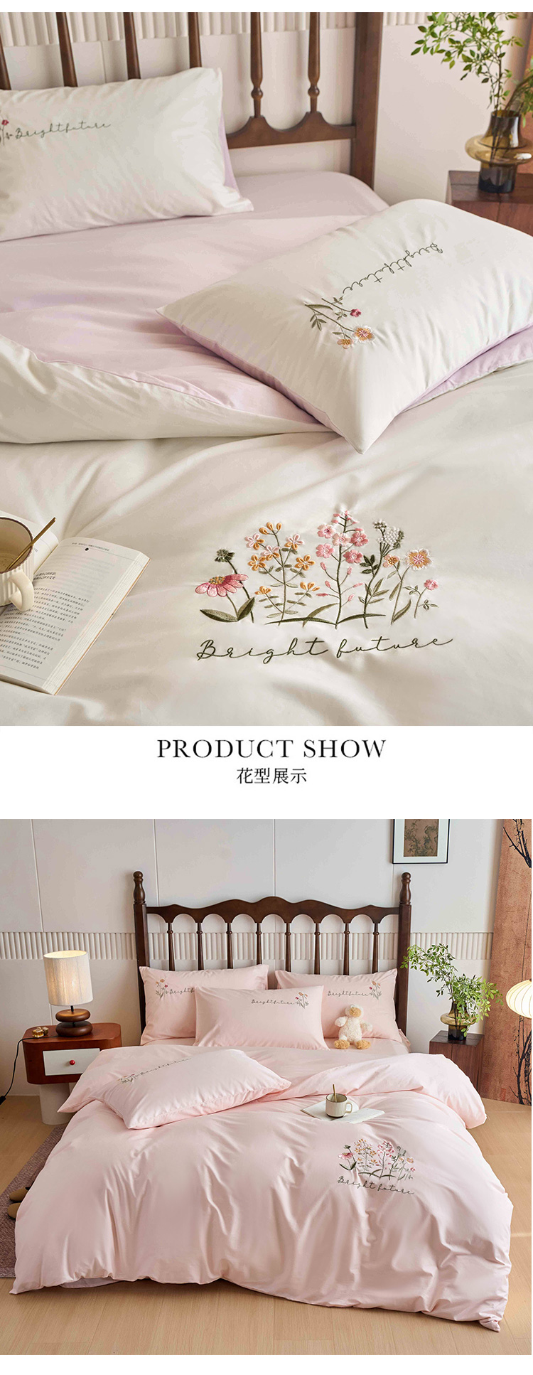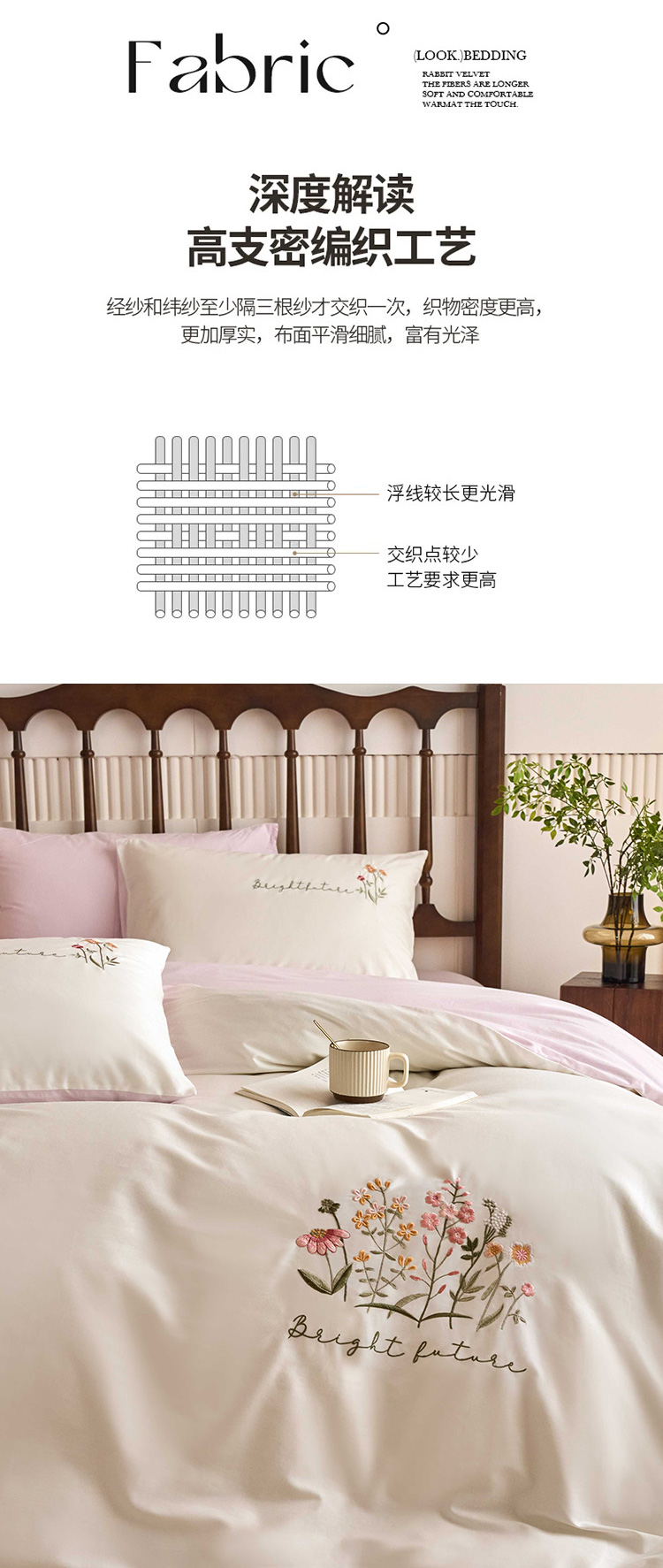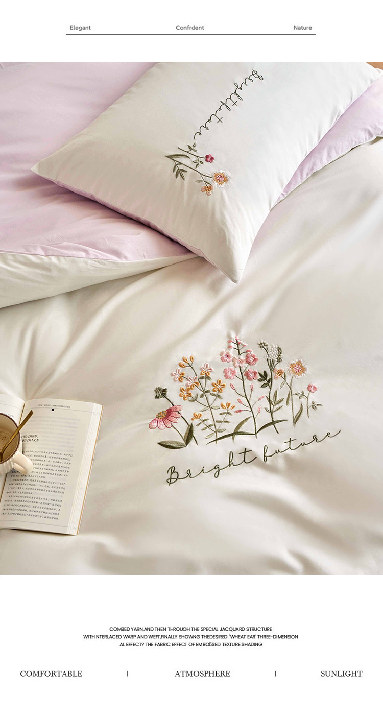 商品名称:悦然毛巾被 2025新款全棉纯棉斜纹毛巾绣四件套 花语情怀白+粉