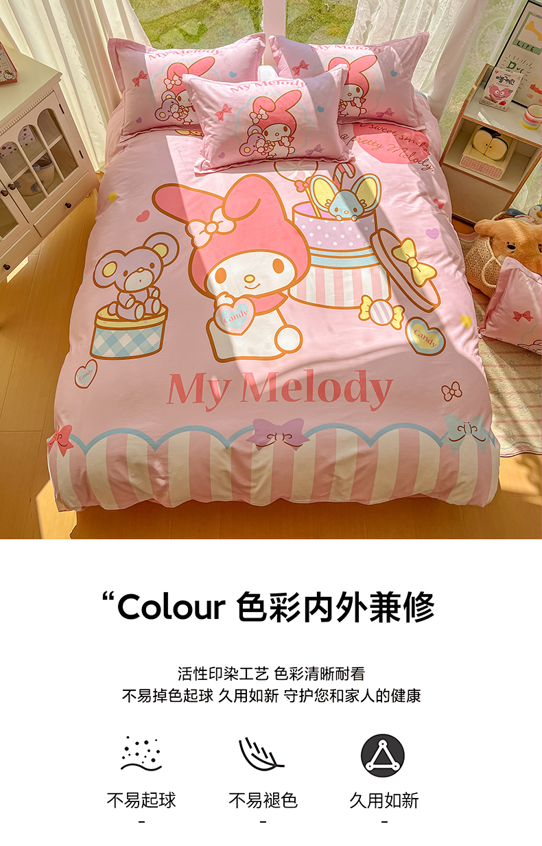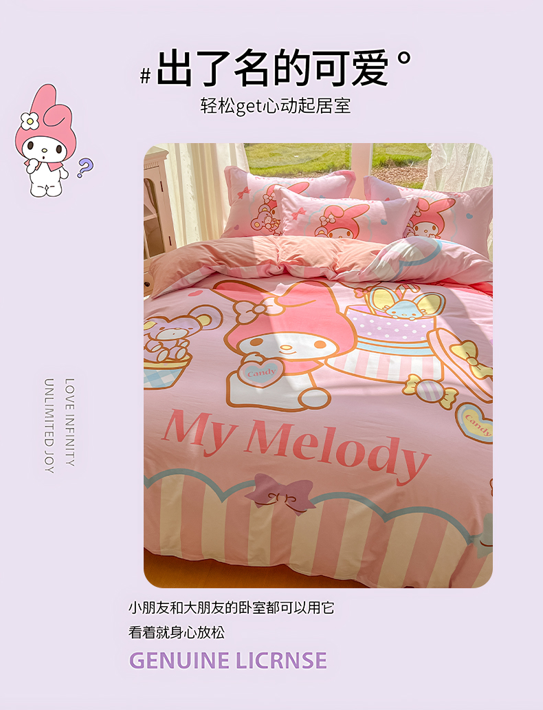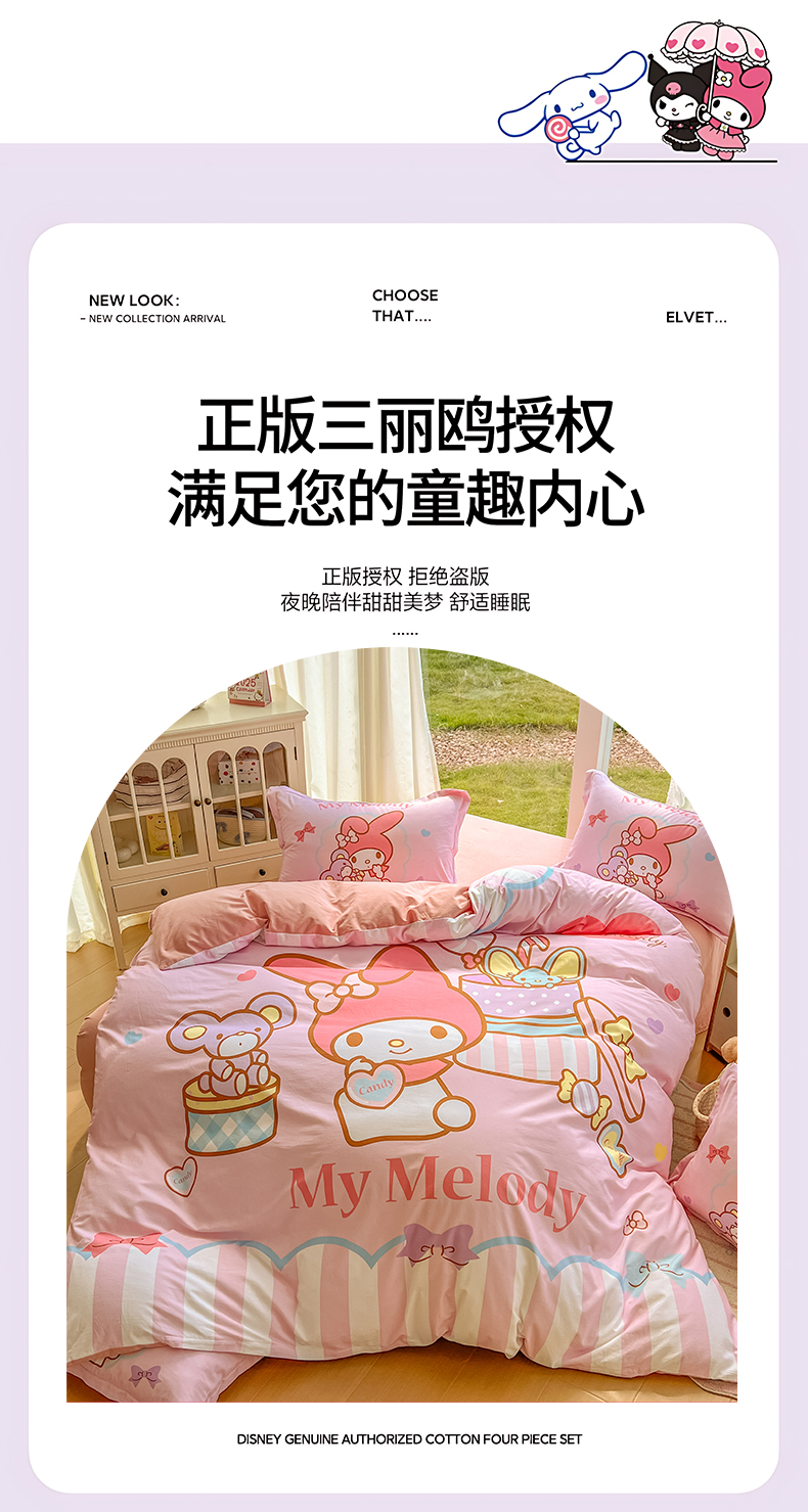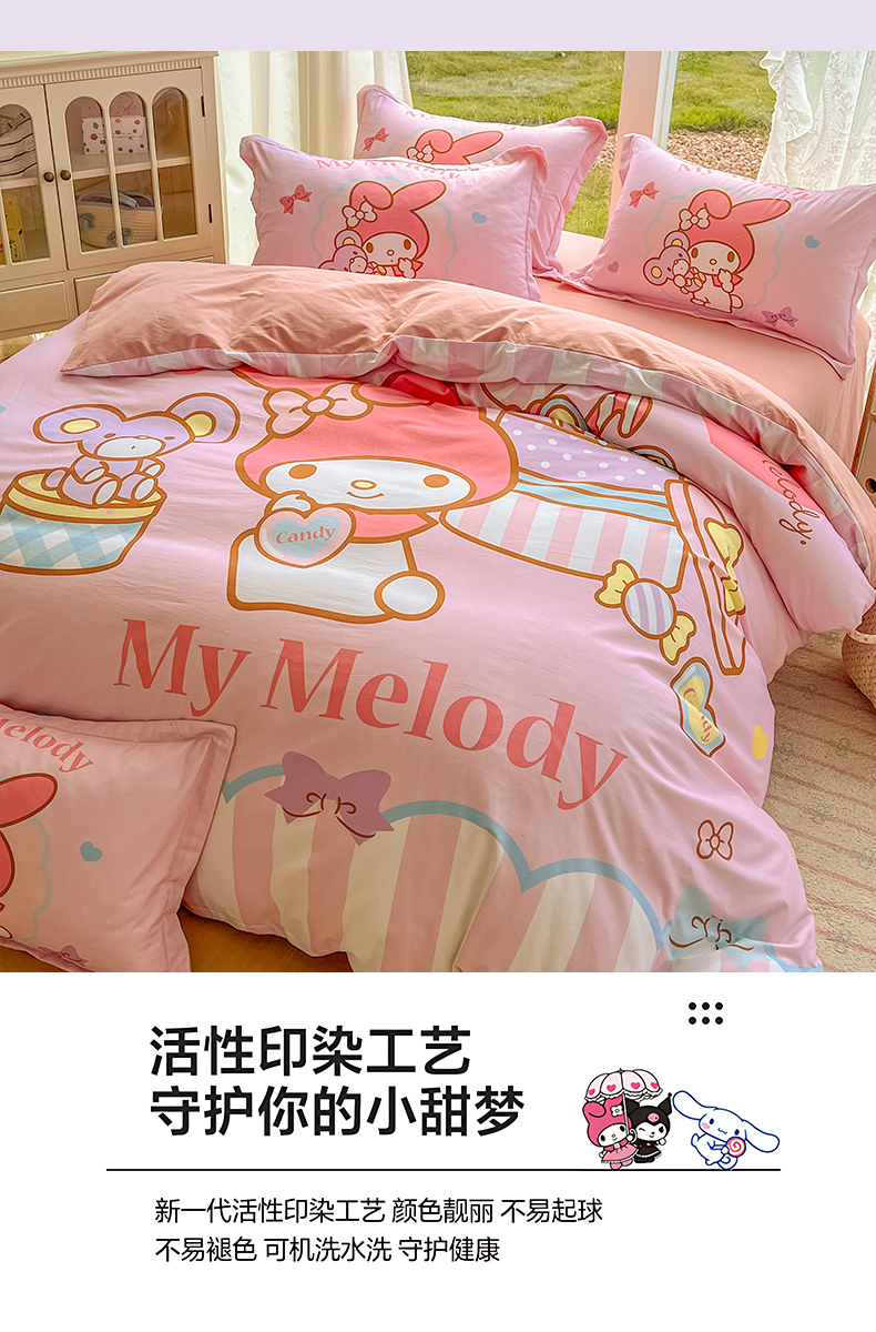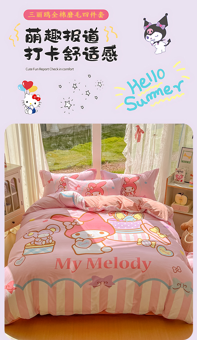 商品名称:浩诚 2025新款三丽鸥专版全棉磨毛纯棉四件套 开心美乐蒂
