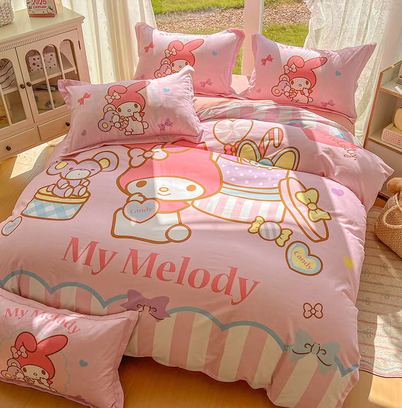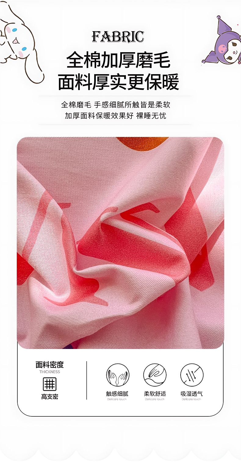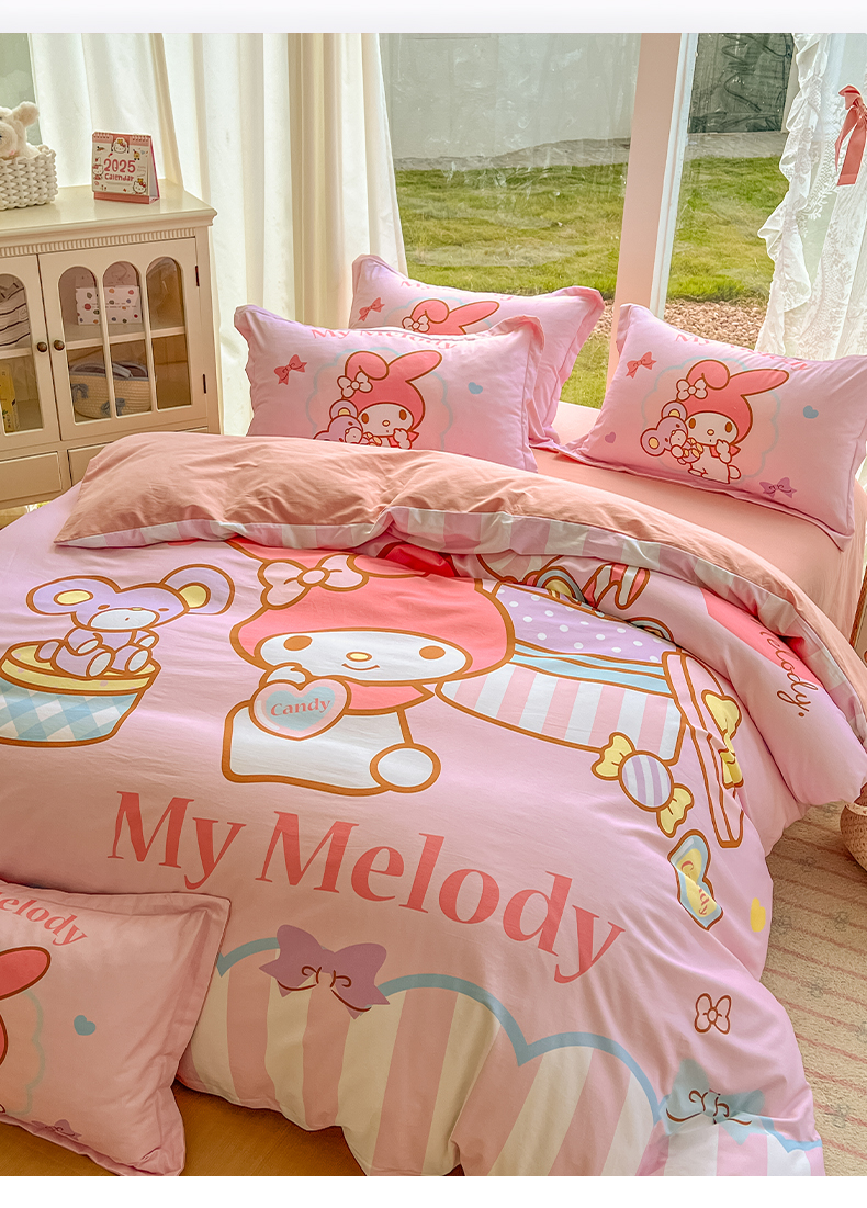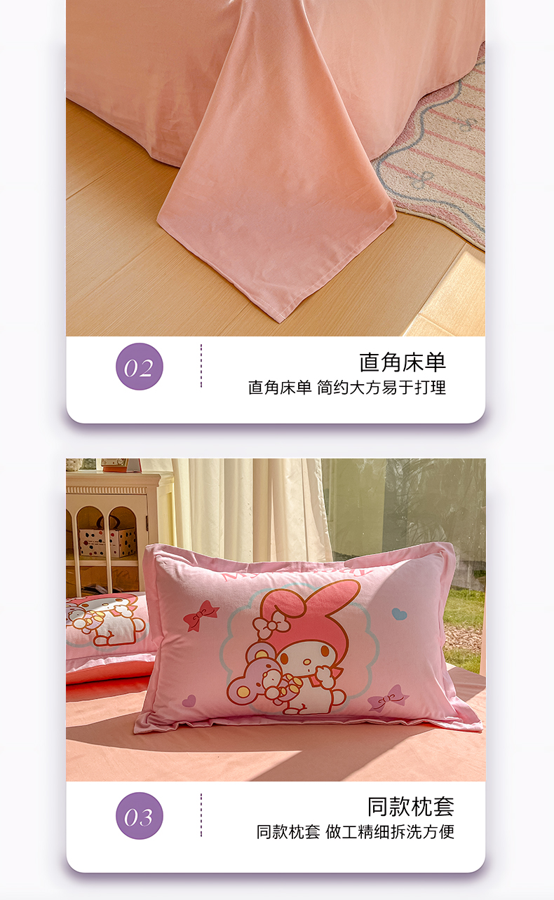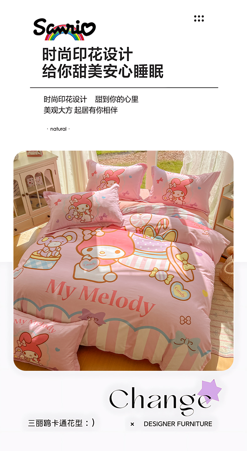 商品名称:浩诚 2025新款三丽鸥专版全棉磨毛纯棉四件套 开心美乐蒂