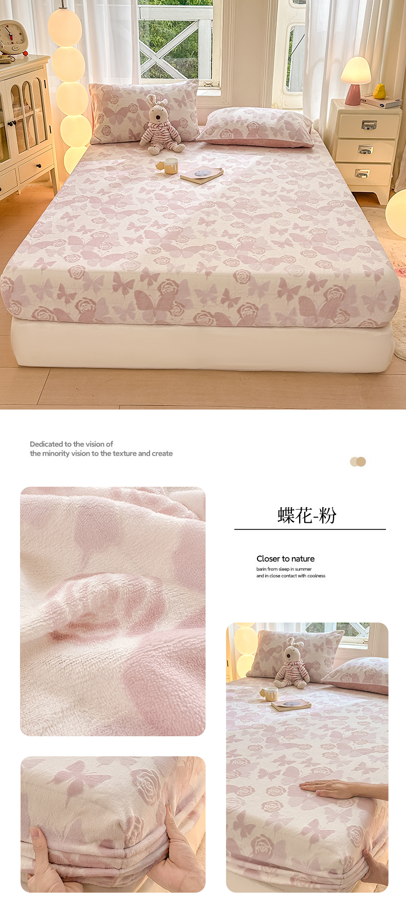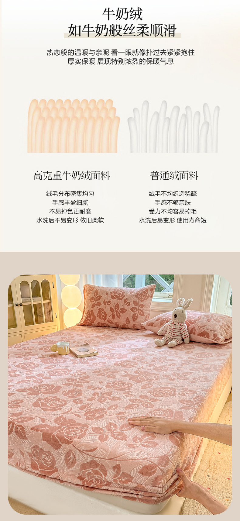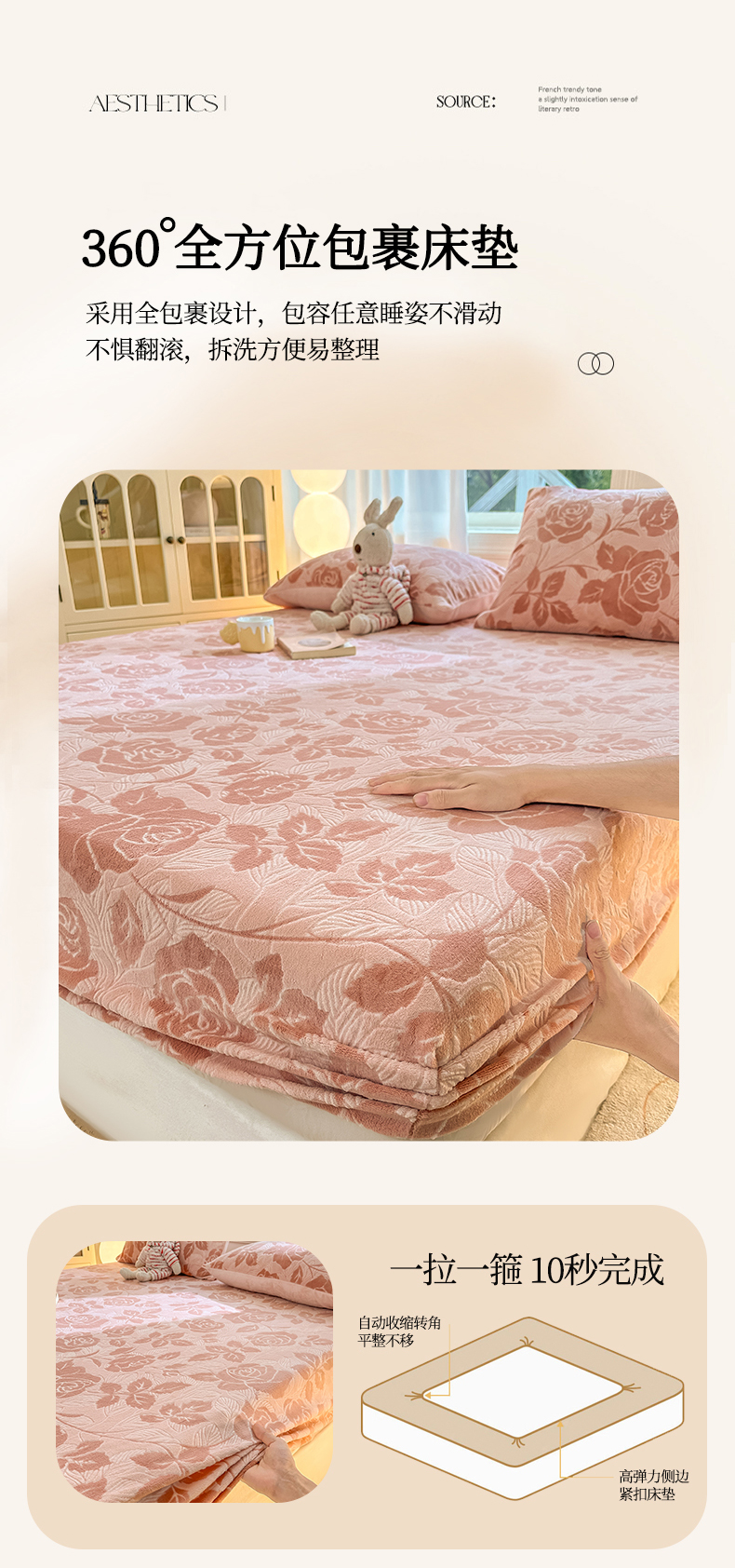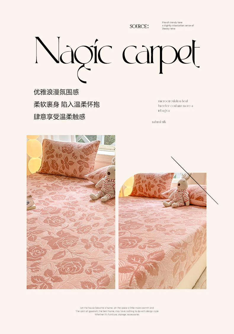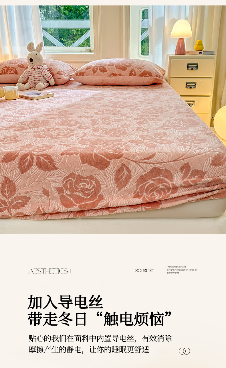 • 91家纺网 家纺一手货源 找家纺 灰鲸 2025新款立体雕花牛奶绒床笠 爱意-粉