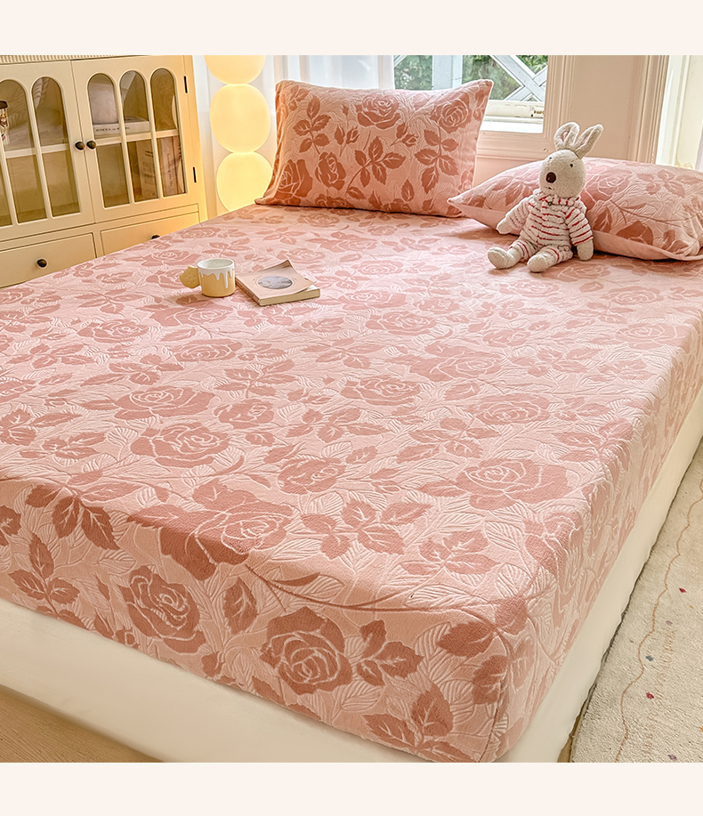 灰鲸 2025新款立体雕花牛奶绒床笠 爱意-粉