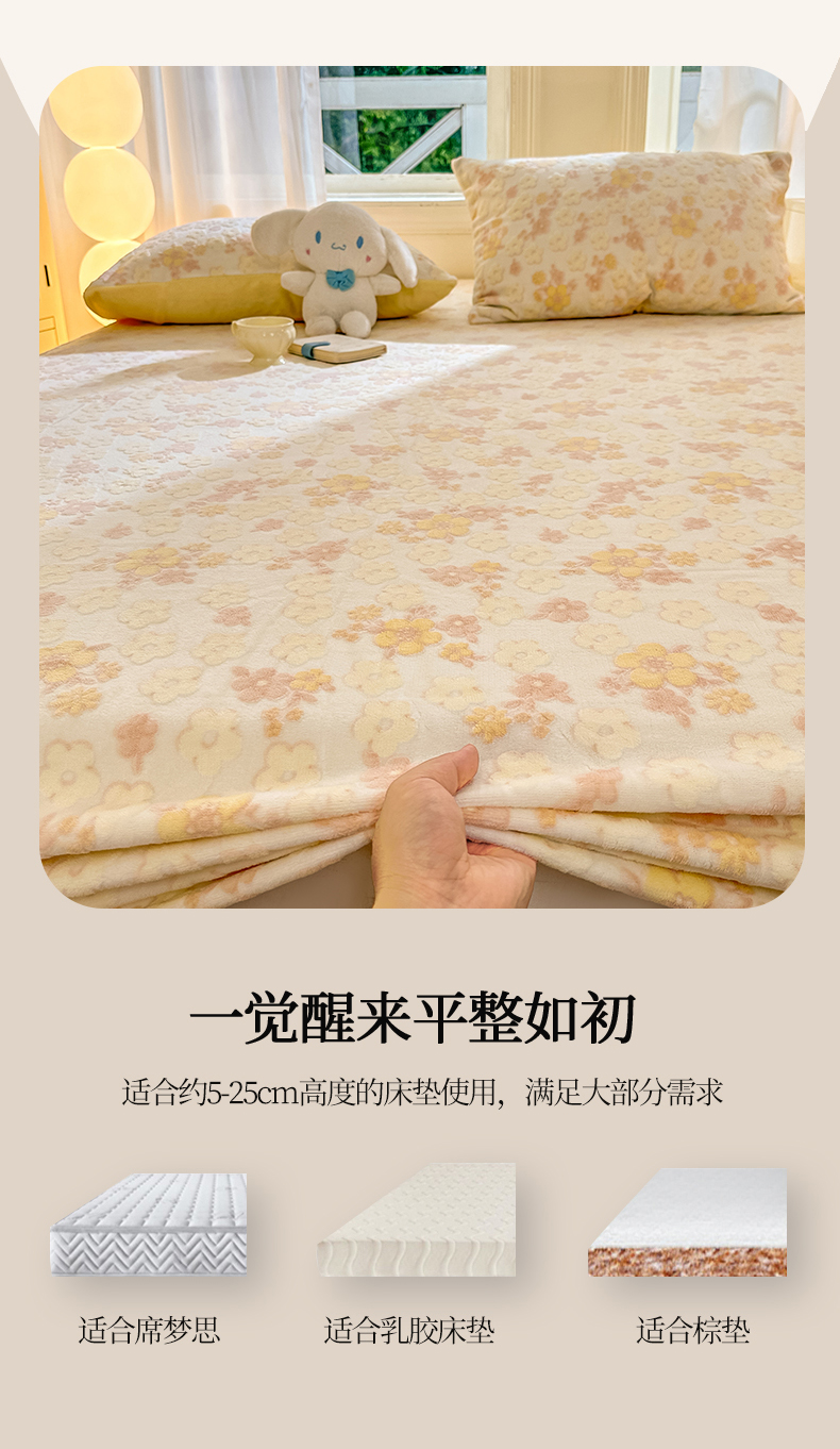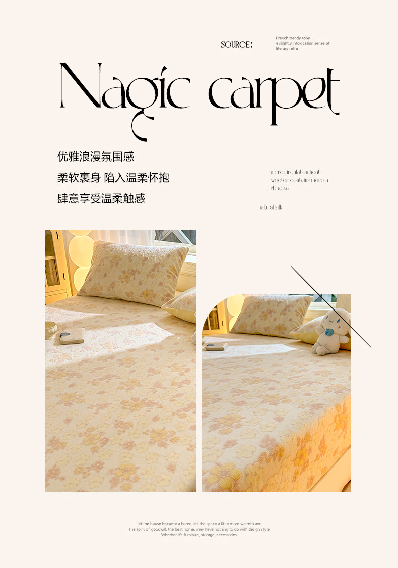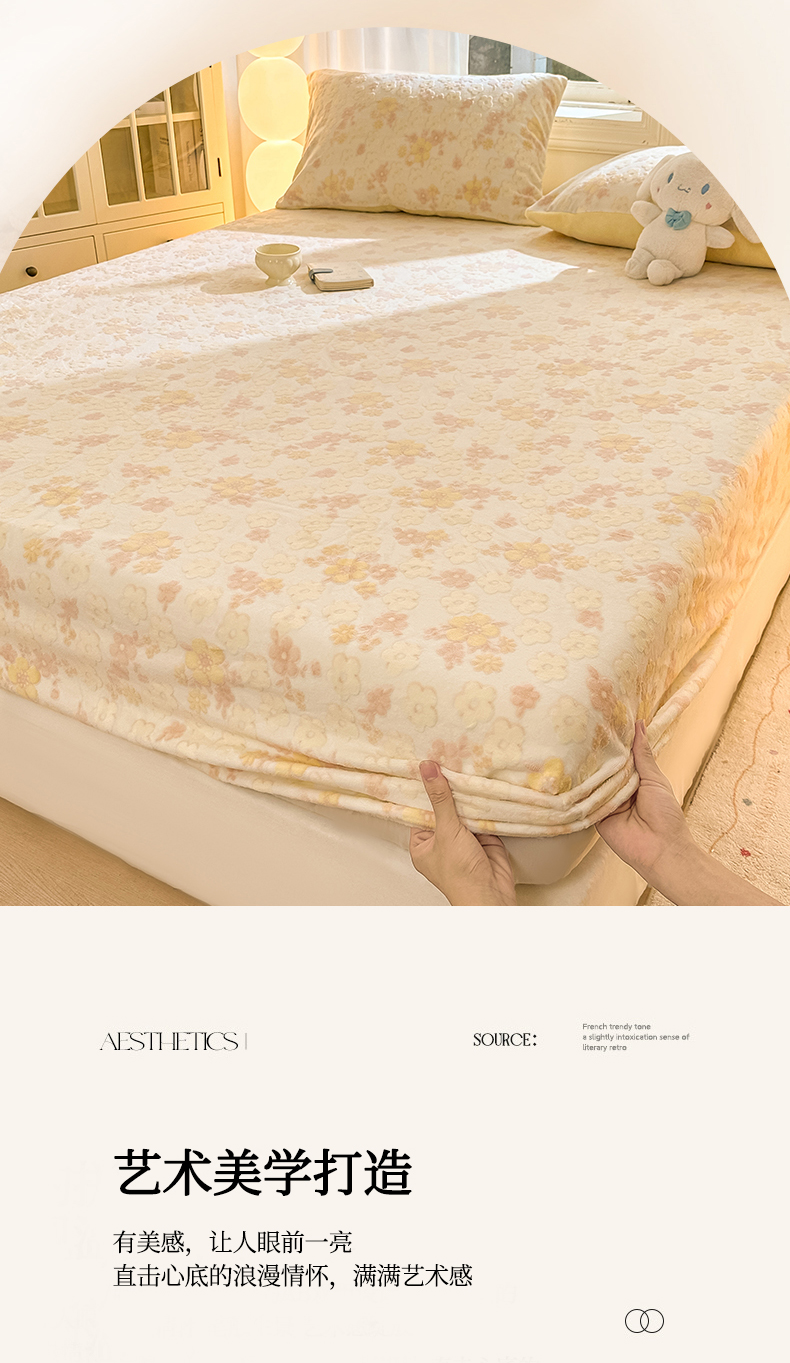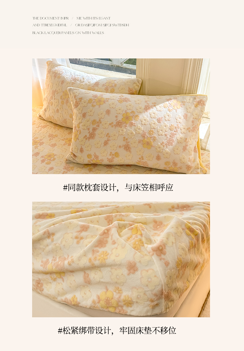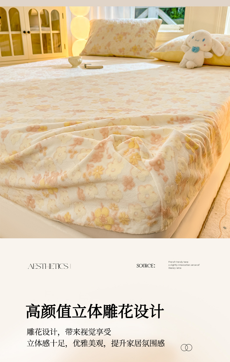 • 91家纺网 家纺一手货源 找家纺 灰鲸 2025新款立体雕花牛奶绒床笠 花海-黄