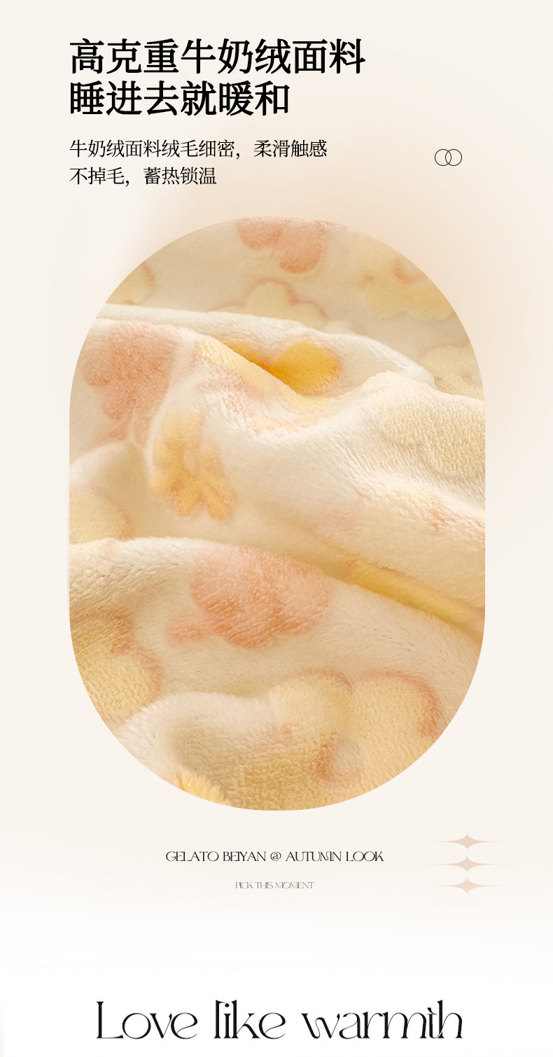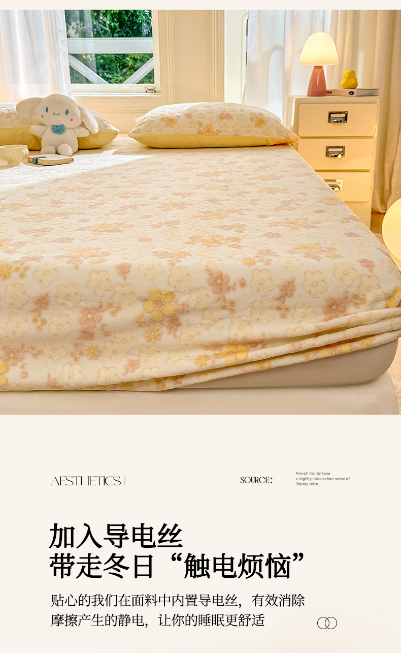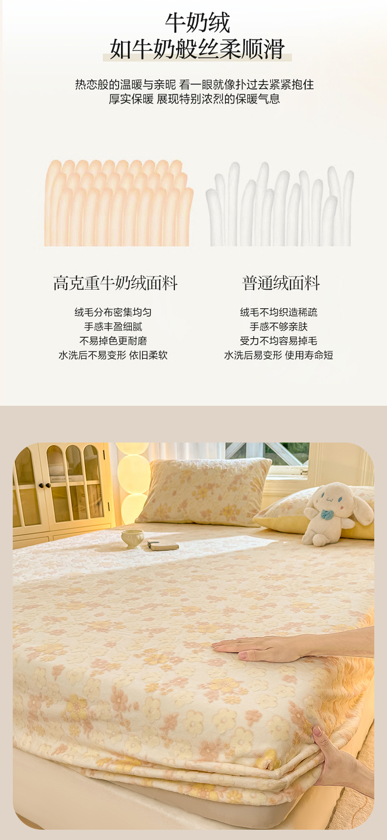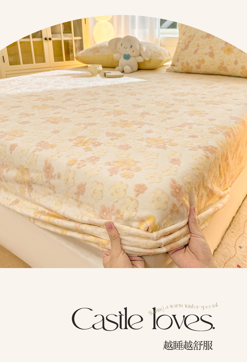 • 91家纺网 家纺一手货源 找家纺 灰鲸 2025新款立体雕花牛奶绒床笠 花海-黄