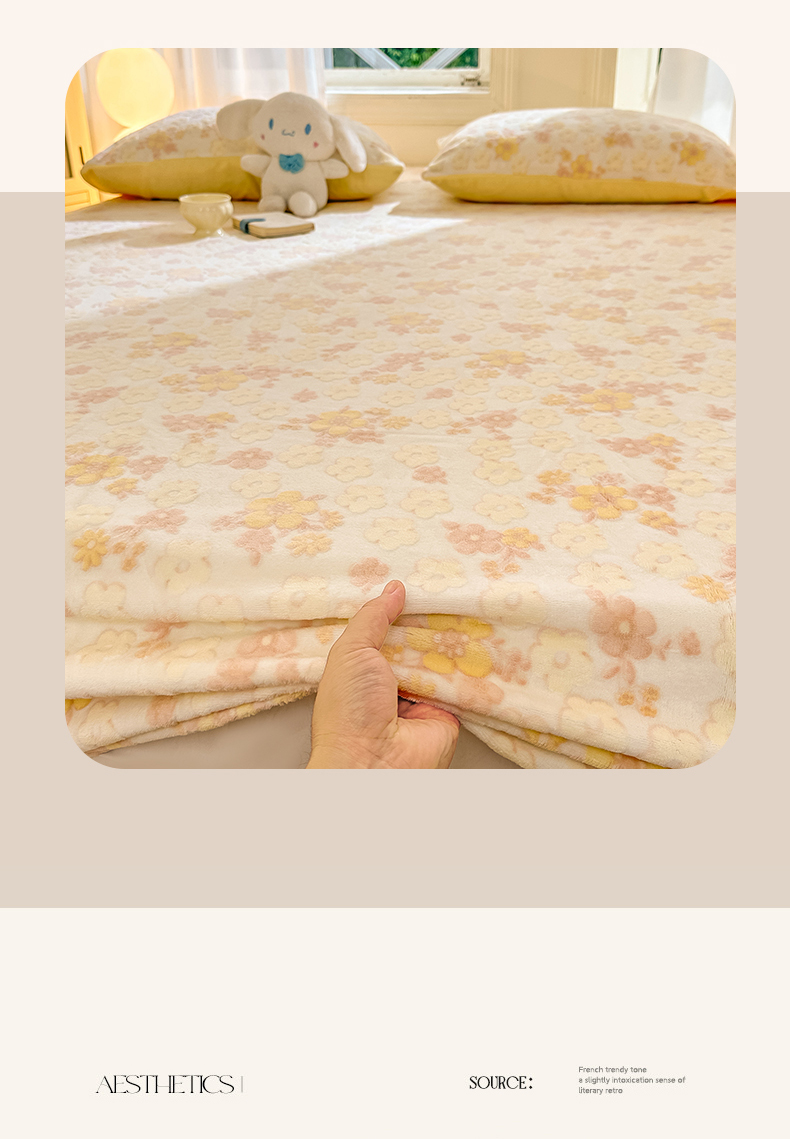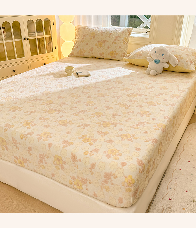 灰鲸 2025新款立体雕花牛奶绒床笠 花海-黄