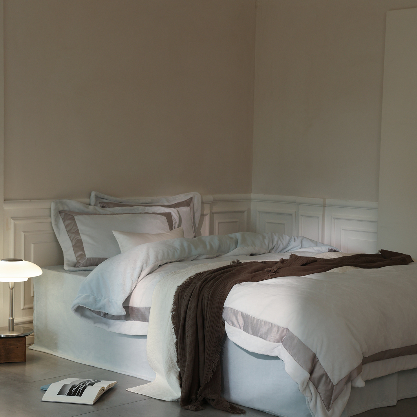 (总)佳汐蓝 2025春夏新品双层皱皱纱刺绣+织带+荷叶边四件套--白茶花,奶白,曲奇