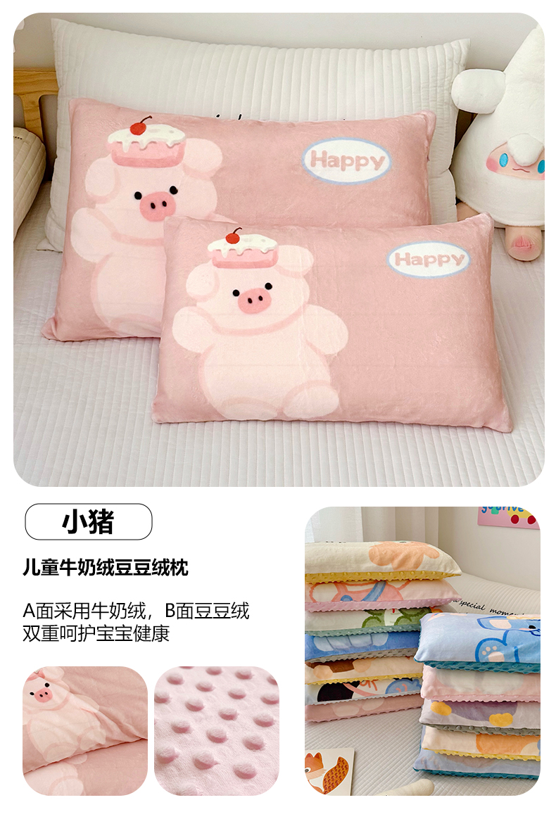 (总)萌宝家纺 2025新款儿童牛奶绒豆豆单品枕套,大象,粉色小狗,灰企鹅,考拉,小狗,小恐龙,小企鹅,小狮子,小兔子,小象,小熊,小猪,组合图仅供参考不可下单