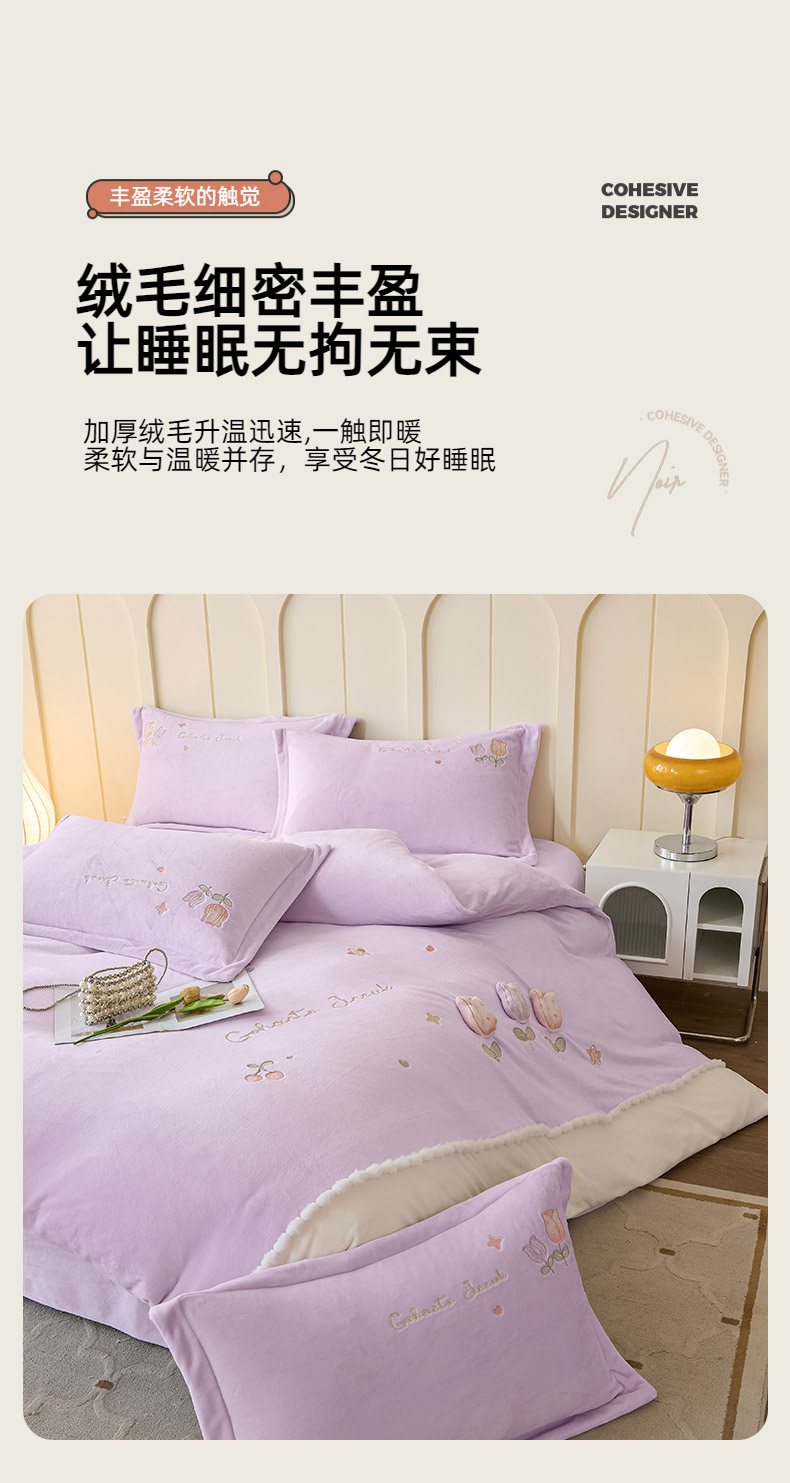 (总)合欢(原天一阁) 2025新款A类高克重全消光韩版牛奶绒刺绣四件套-郁金香,郁金香-奶油黄,郁金香-豆沙,郁金香-嫩绿,郁金香-浅粉,郁金香-天空蓝,郁金香-优雅紫