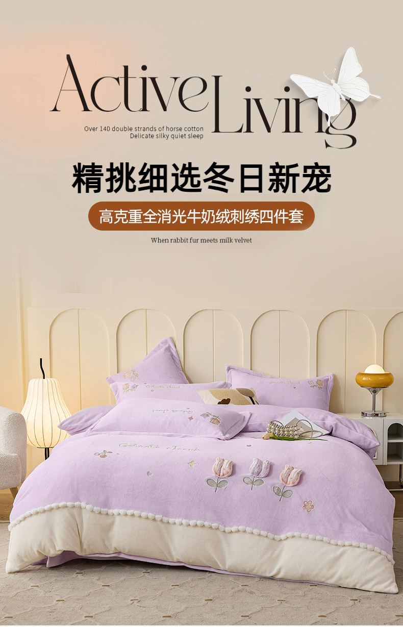 (总)合欢(原天一阁) 2025新款A类高克重全消光韩版牛奶绒刺绣四件套,春晓-繁星蓝,春晓-轻奢粉,蝶舞-奶油黄,蝶舞-粉豆沙,春晓-优雅紫,蝶舞-繁星蓝,春晓-奶油黄,春晓-粉豆沙,蝶舞-轻奢粉,蝶舞-优雅紫