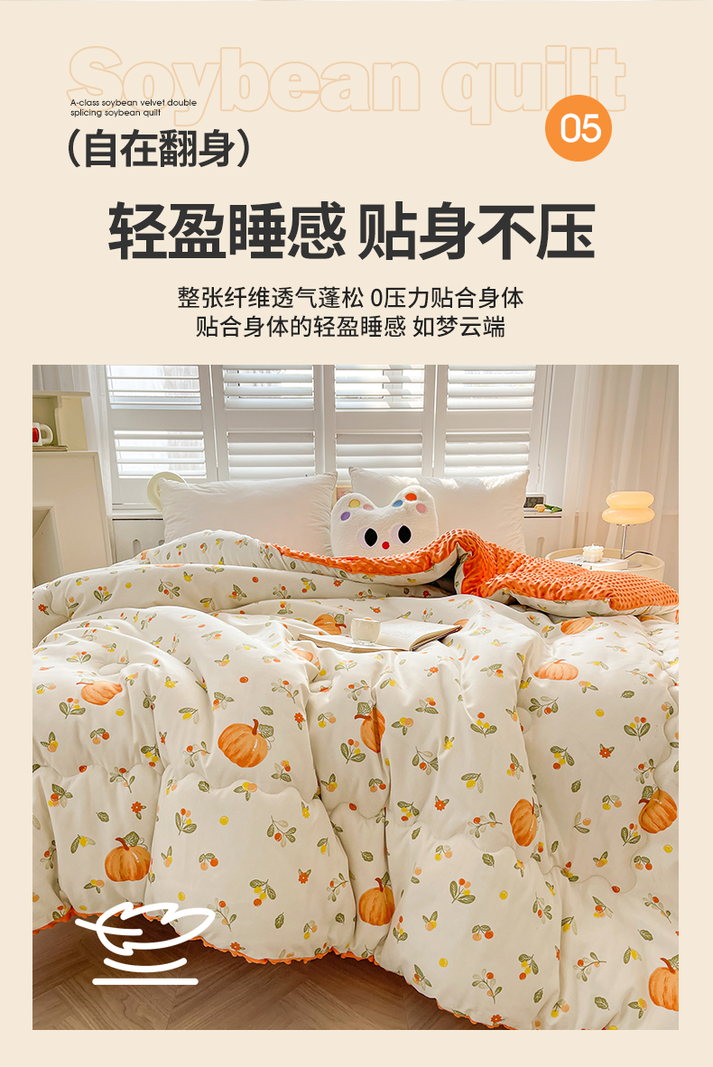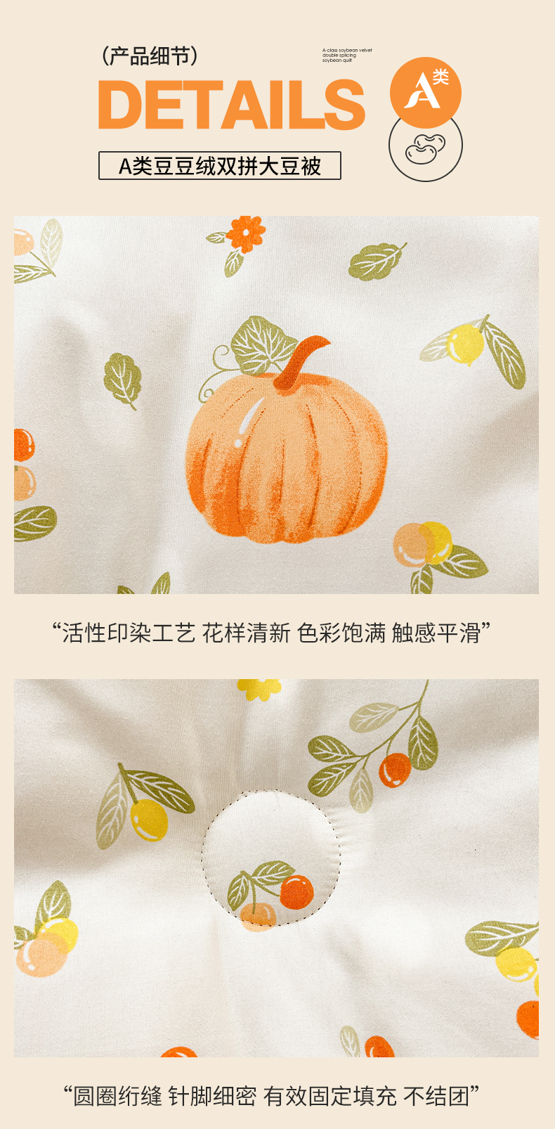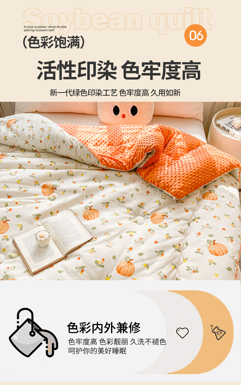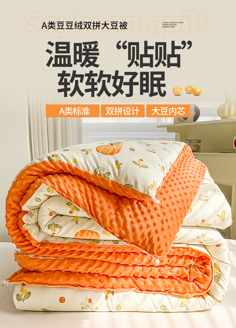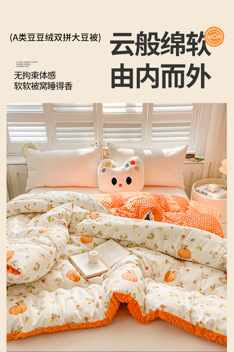 商品名称:鑫缘家纺 2025新款亲肤舒适豆豆绒双面大豆被被子被芯 可爱南瓜