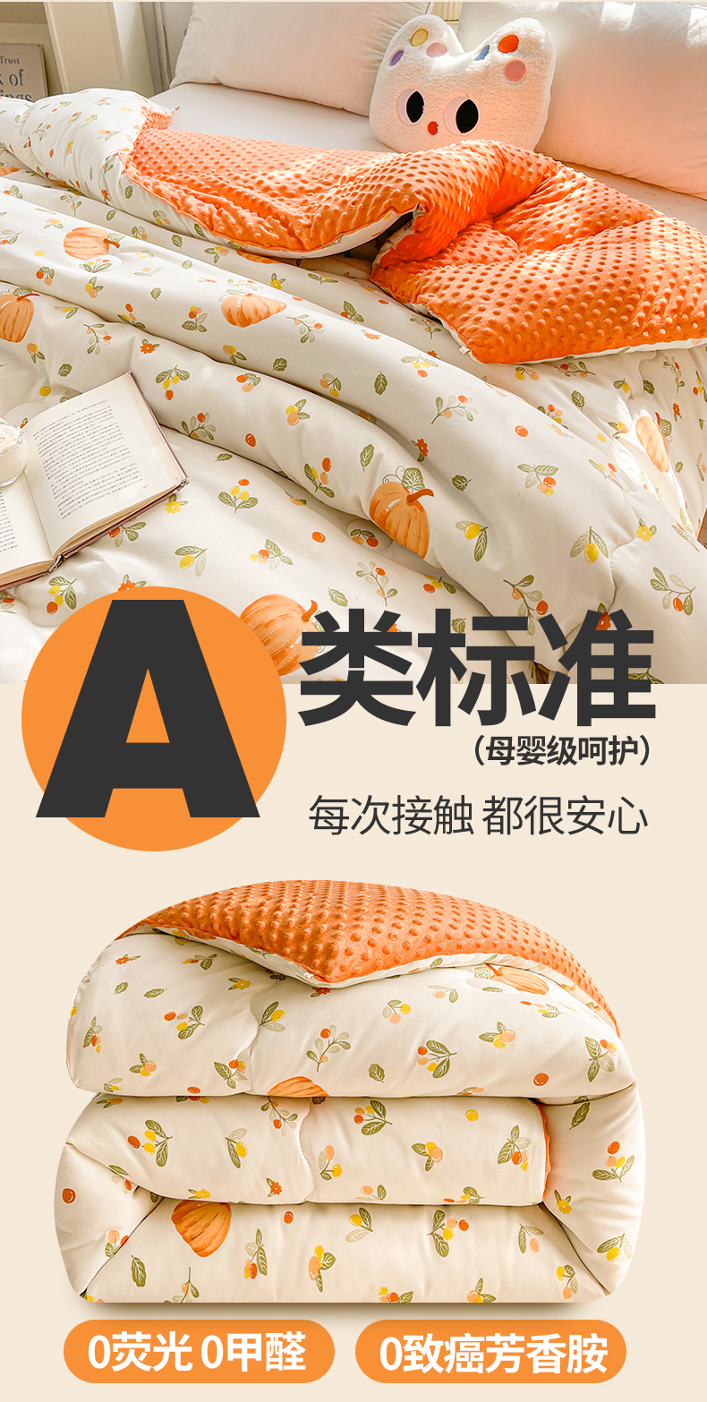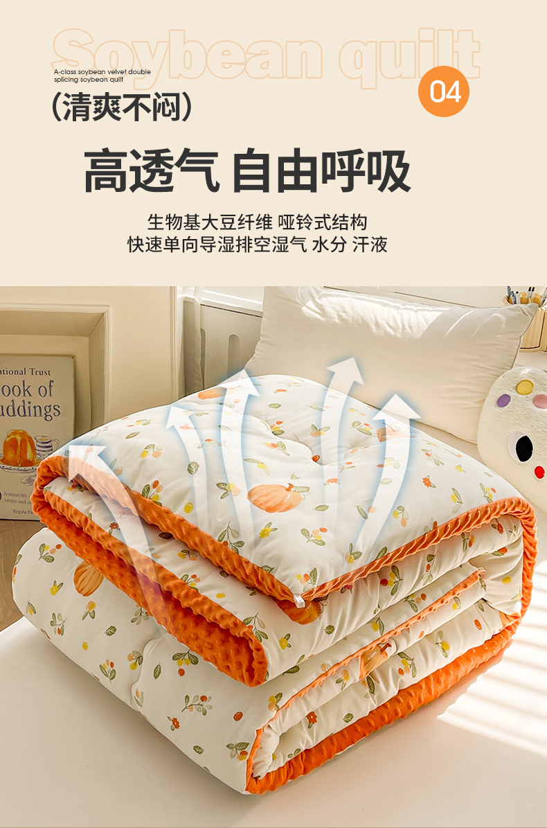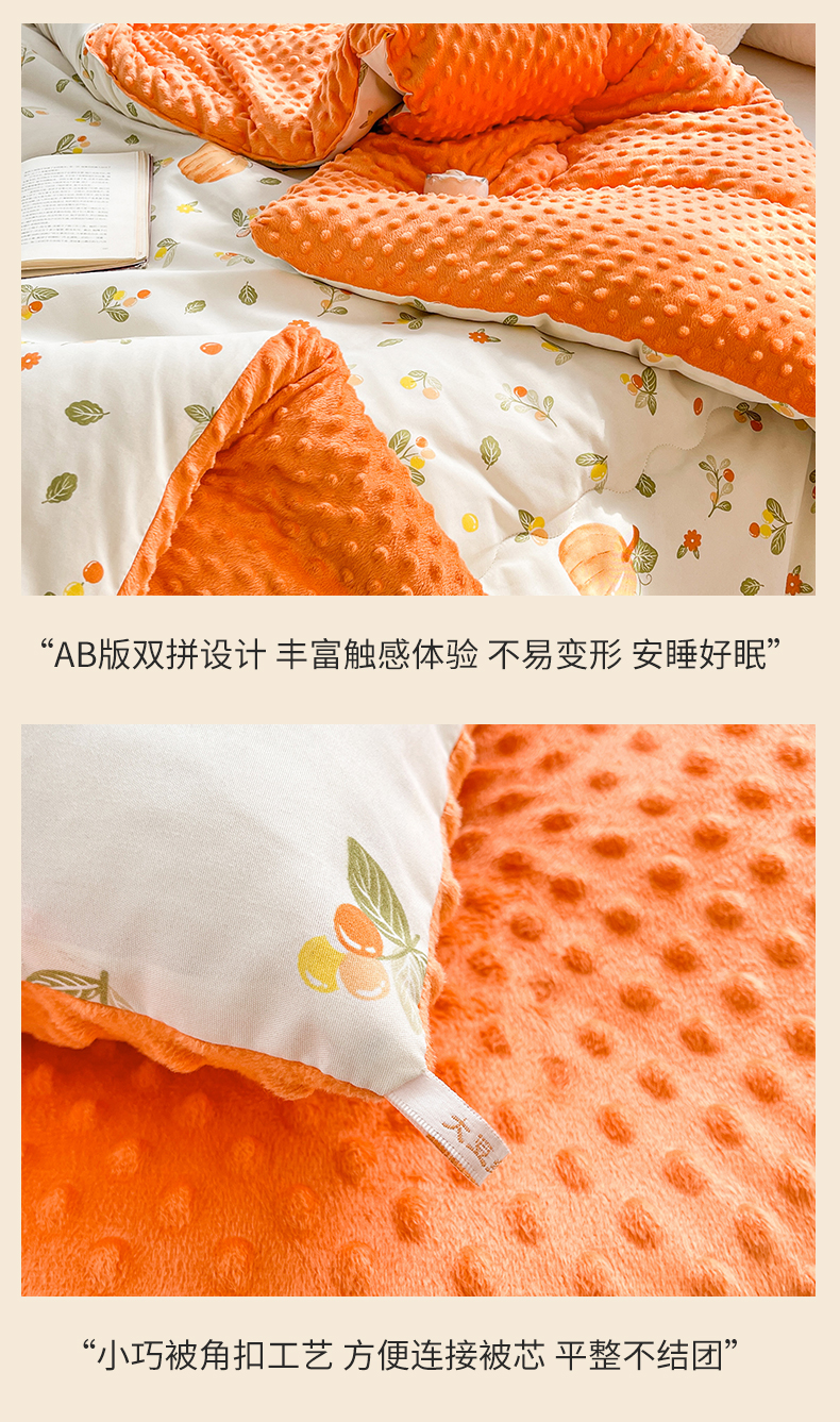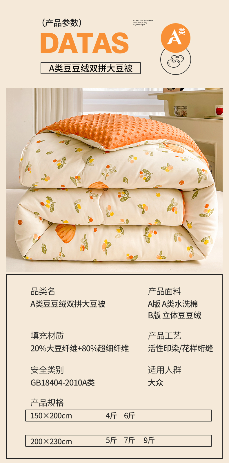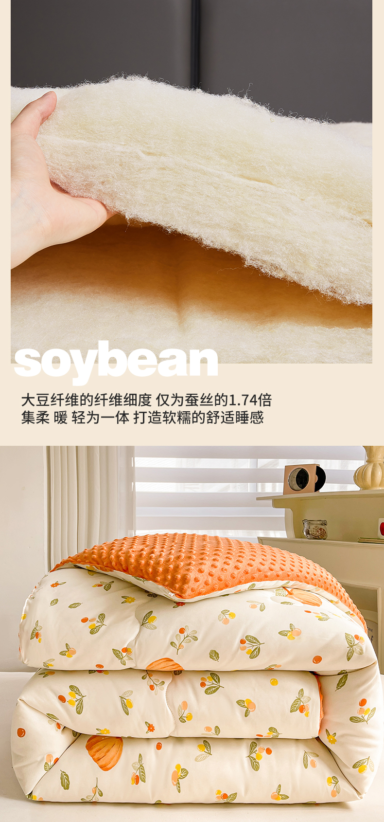 商品名称:鑫缘家纺 2025新款亲肤舒适豆豆绒双面大豆被被子被芯 可爱南瓜