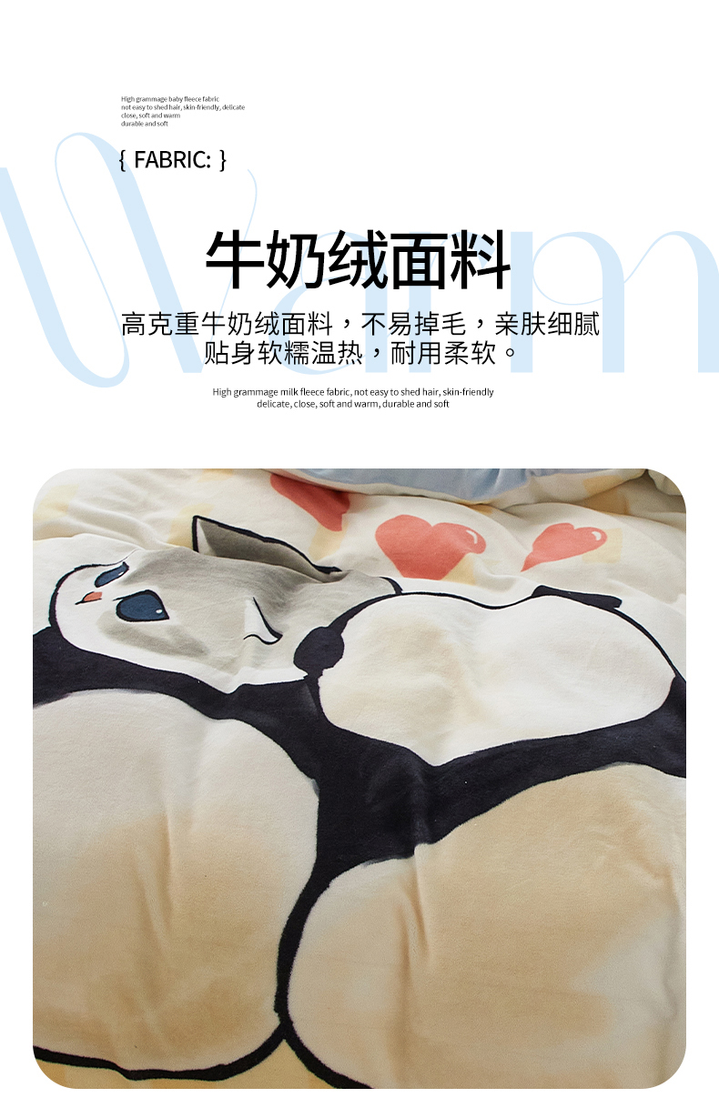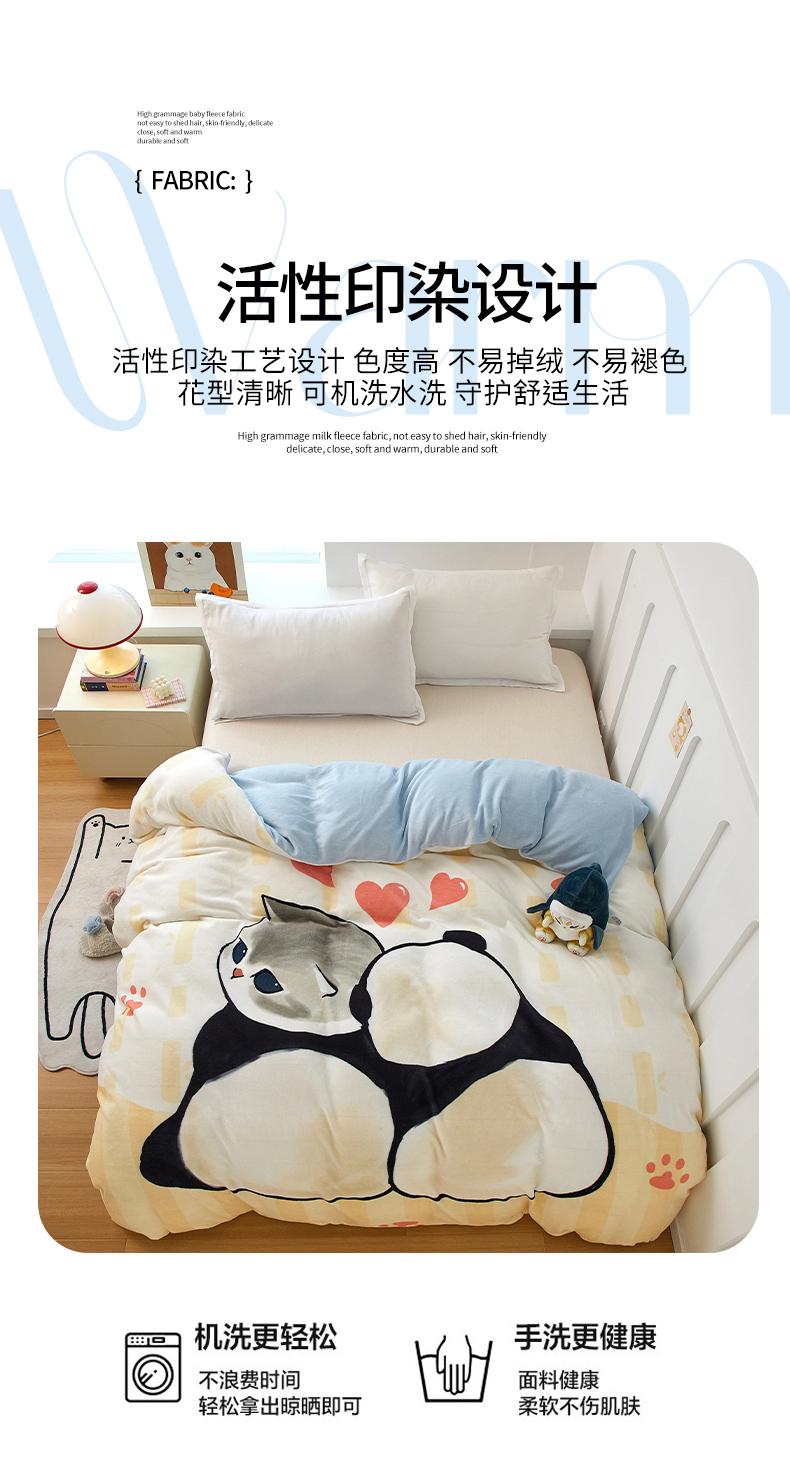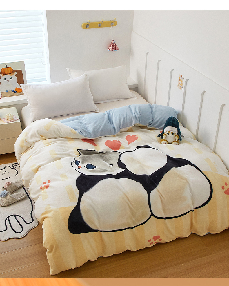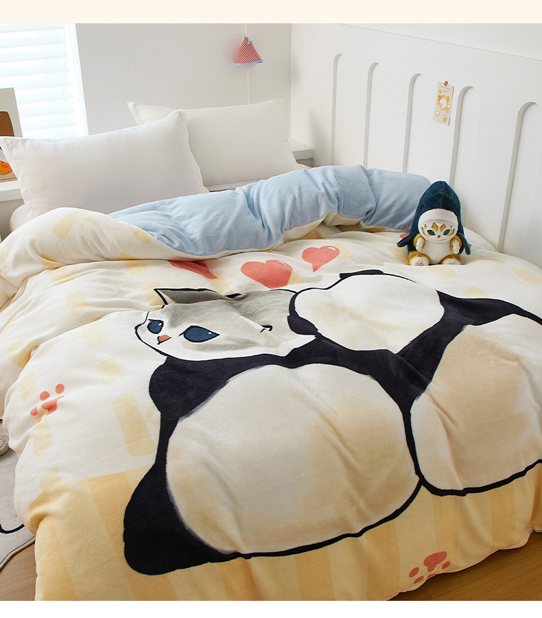 商品名称:蘭菲家纺 2025新款高克重牛奶绒正版鲨鱼猫系列单品被套 珊迪熊-猫福