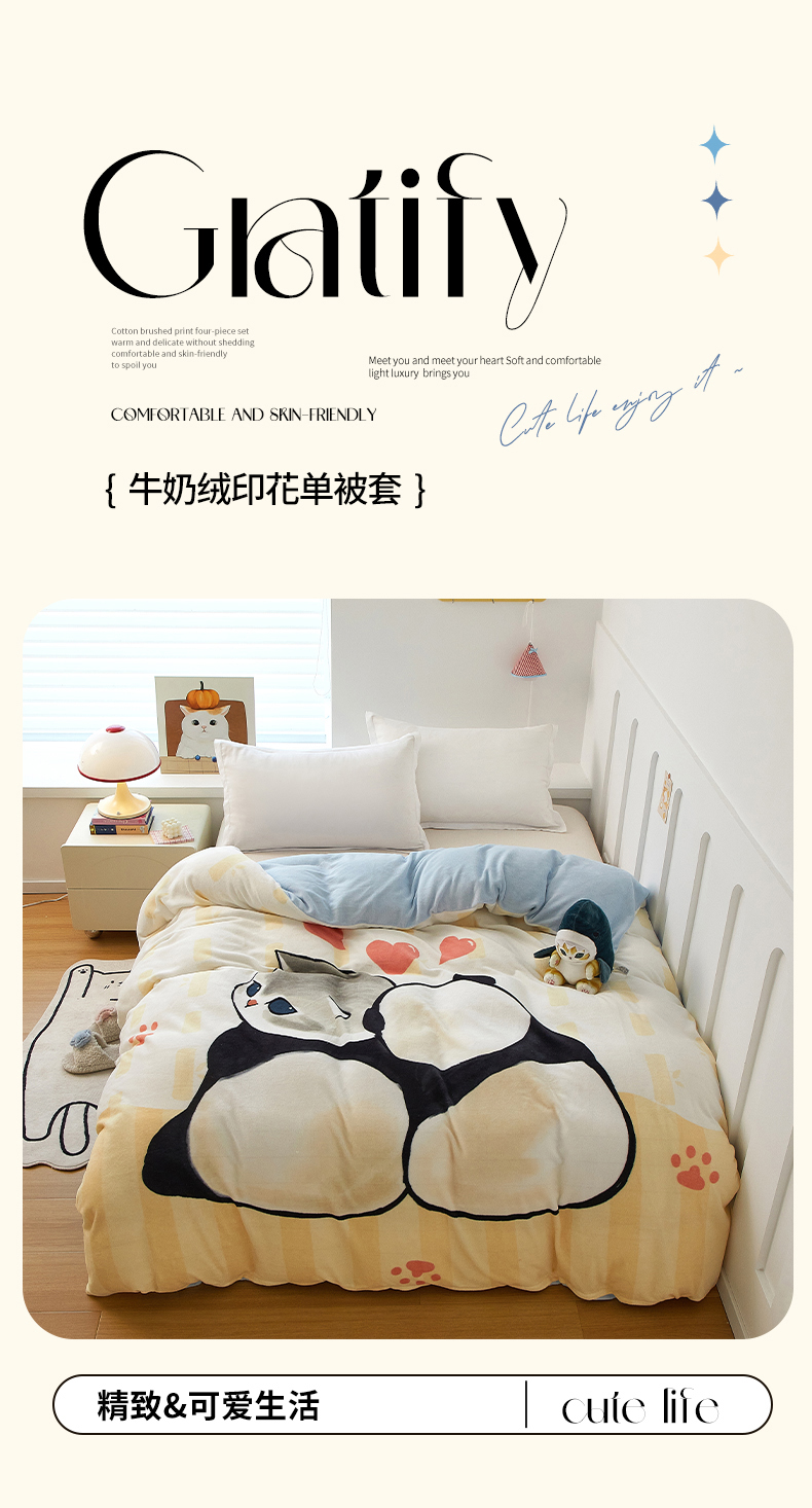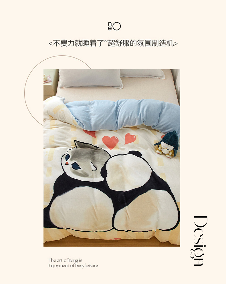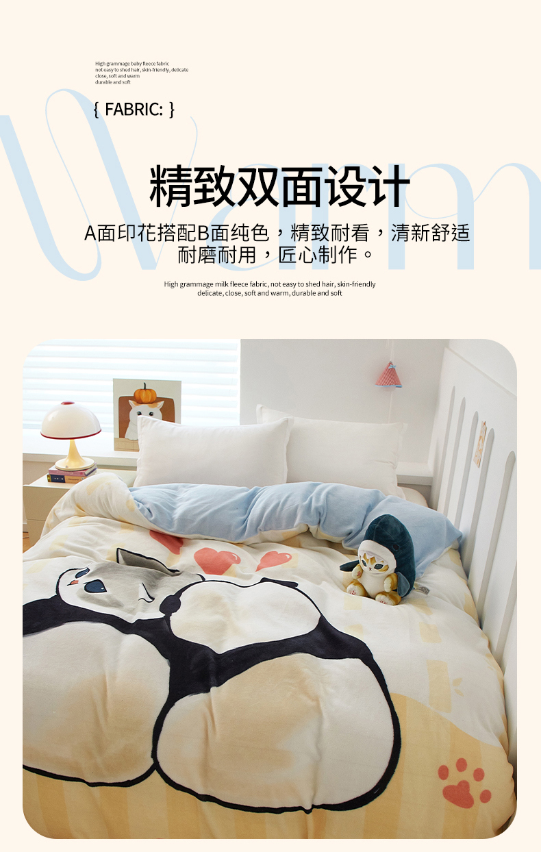 商品名称:蘭菲家纺 2025新款高克重牛奶绒正版鲨鱼猫系列单品被套 珊迪熊-猫福