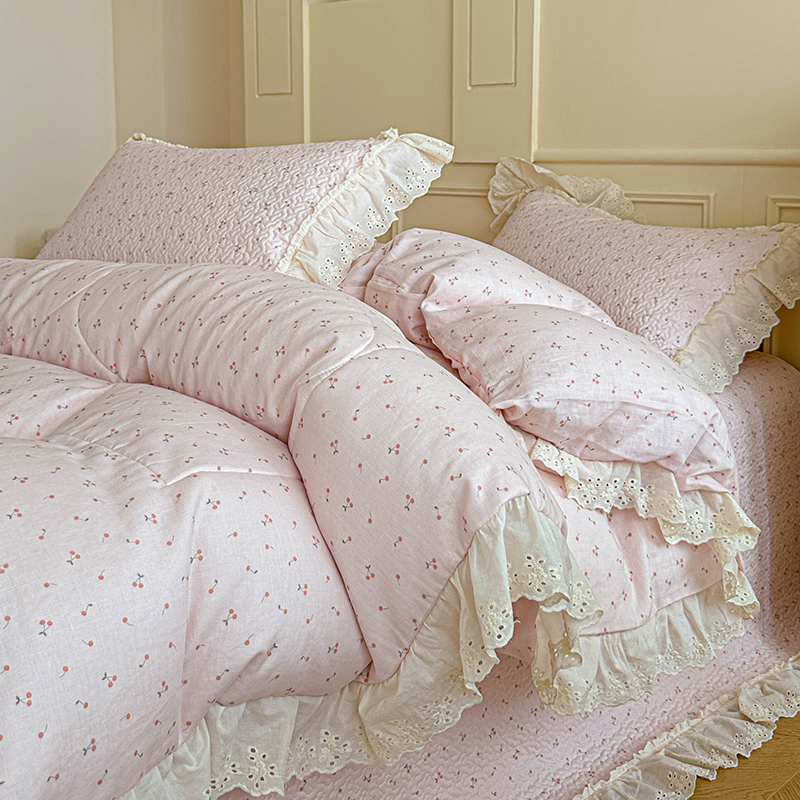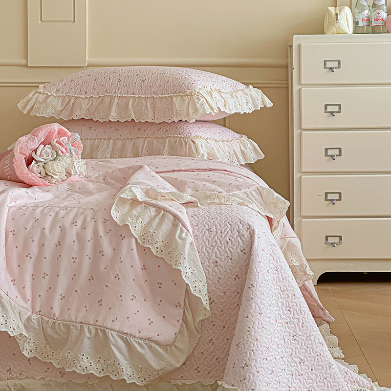 源舜家纺 2025新款全棉双层纱床盖三件套四件套 樱桃奶盖-粉