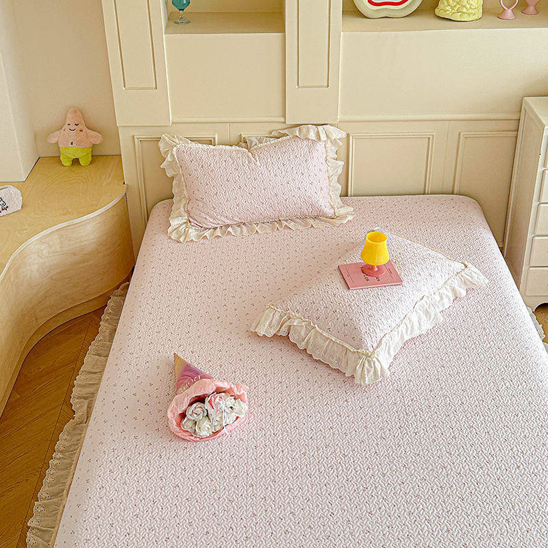 • 91家纺网 家纺一手货源 找家纺 源舜家纺 2025新款全棉双层纱床盖三件套四件套 樱桃奶盖-粉