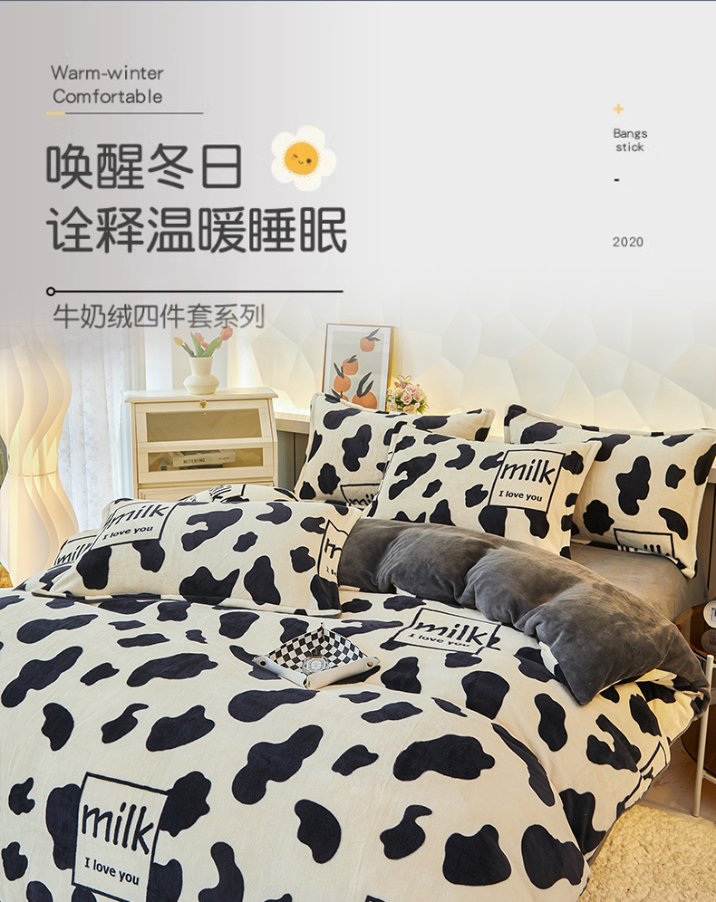 商品名称:(总)三盛源 2025新款牛奶绒床品四件套冬季加厚珊瑚绒被套罩双面加绒法兰绒床单三件套