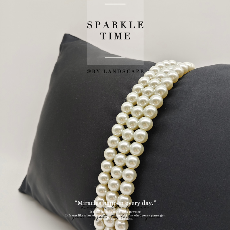 (总)澜屿 新款珍珠蕾丝小抱枕装饰枕腰枕枕芯,蕾丝珍珠(黑)