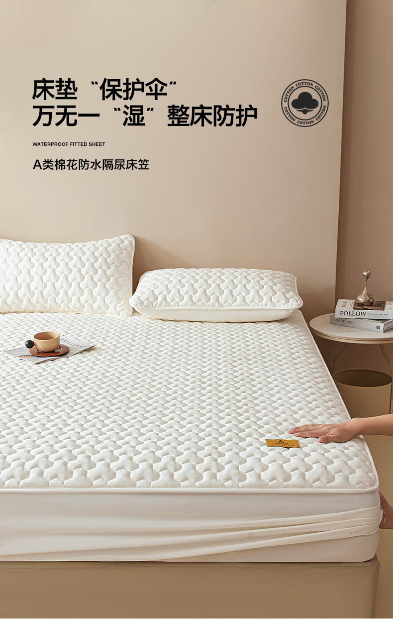 居眠 2025新款简格-棉花防水床笠-简格 简格-蓝色