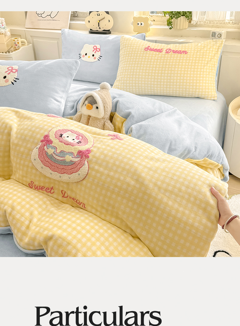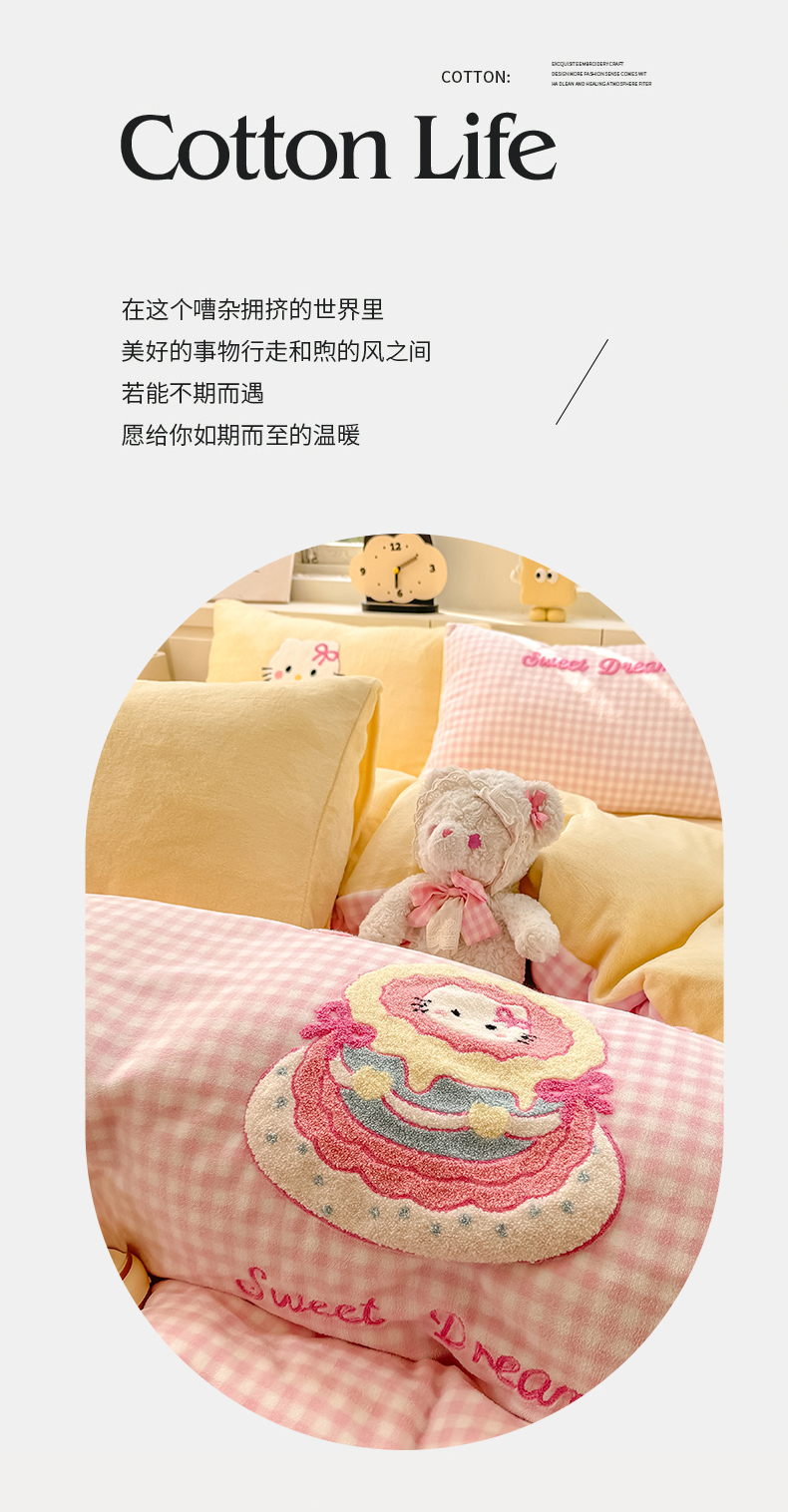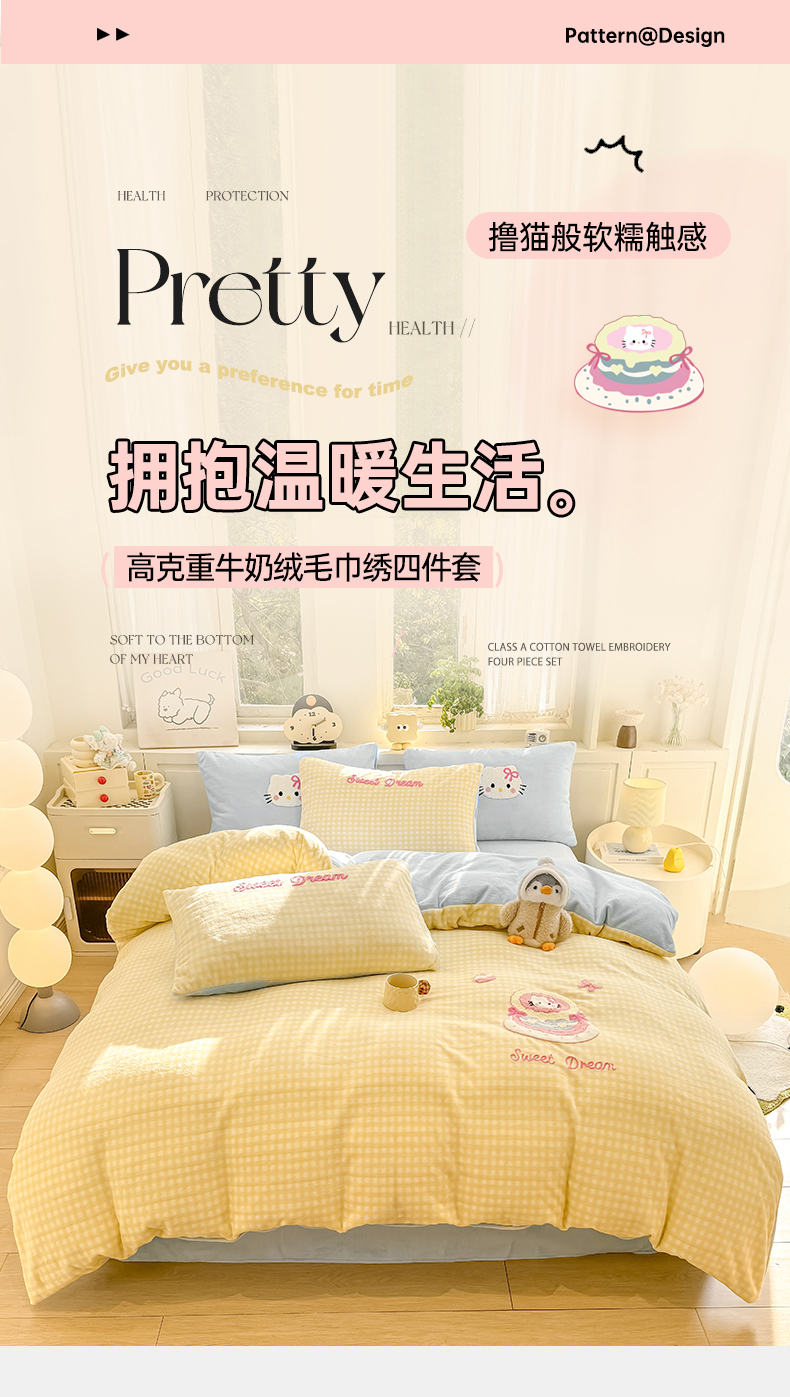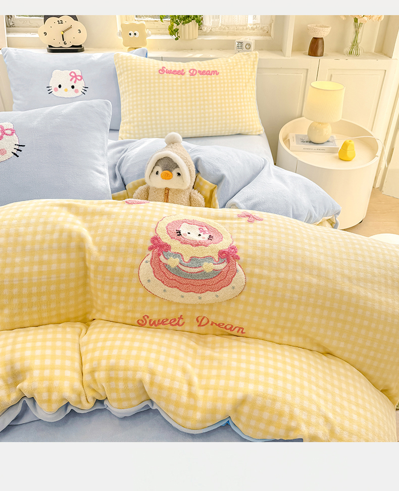 当前位置: 91家纺网 > 商品网购 > 床品套件 > 四件套 > 牛奶绒四件套 > 灰鲸 2025新款牛奶绒毛巾绣苹果狗、蛋糕喵系列四件套 蛋糕喵-黄格+繁星蓝