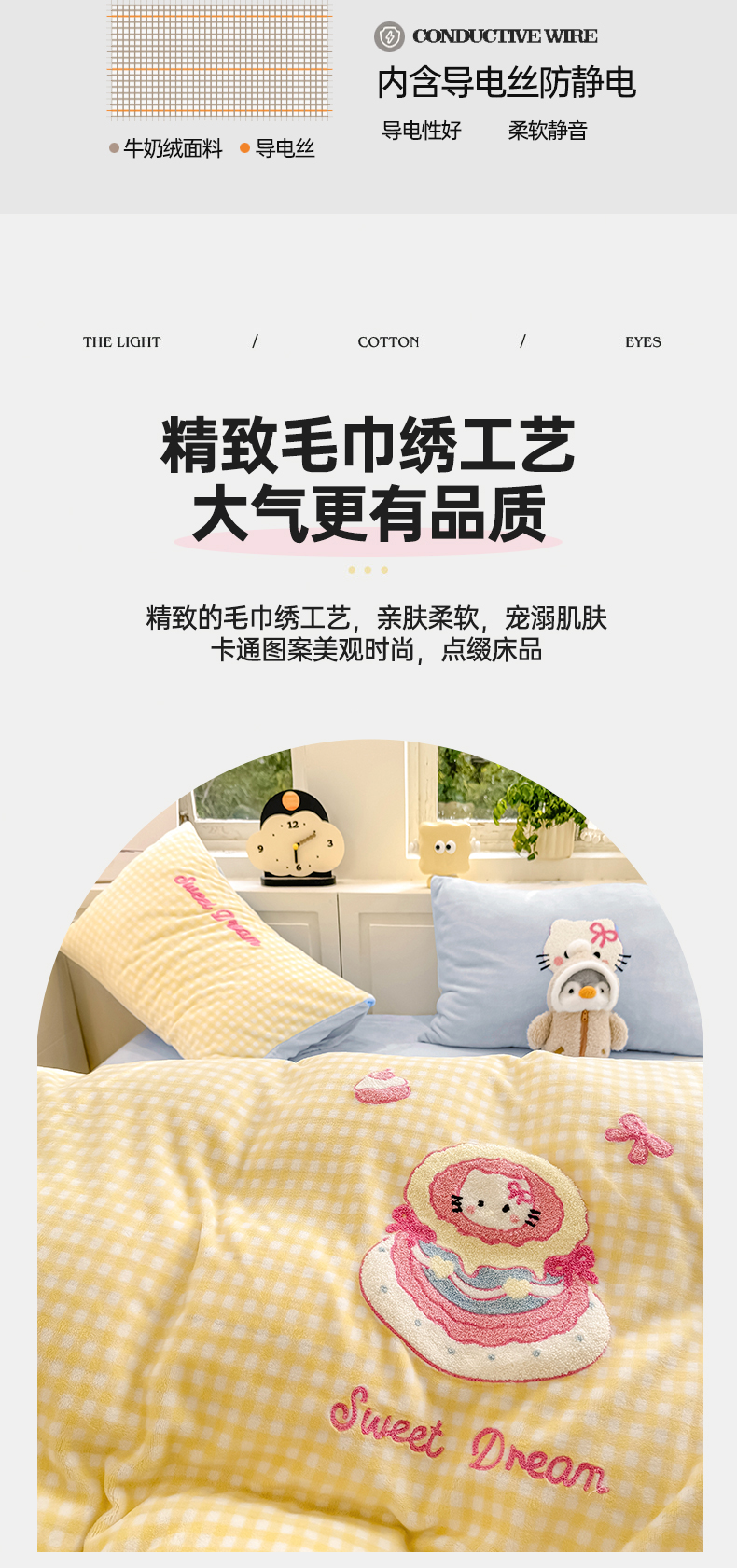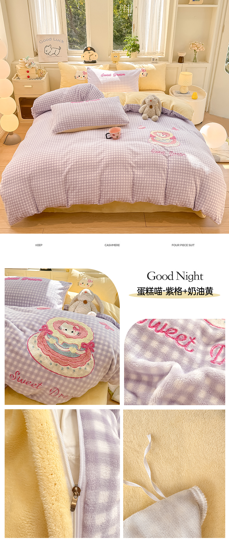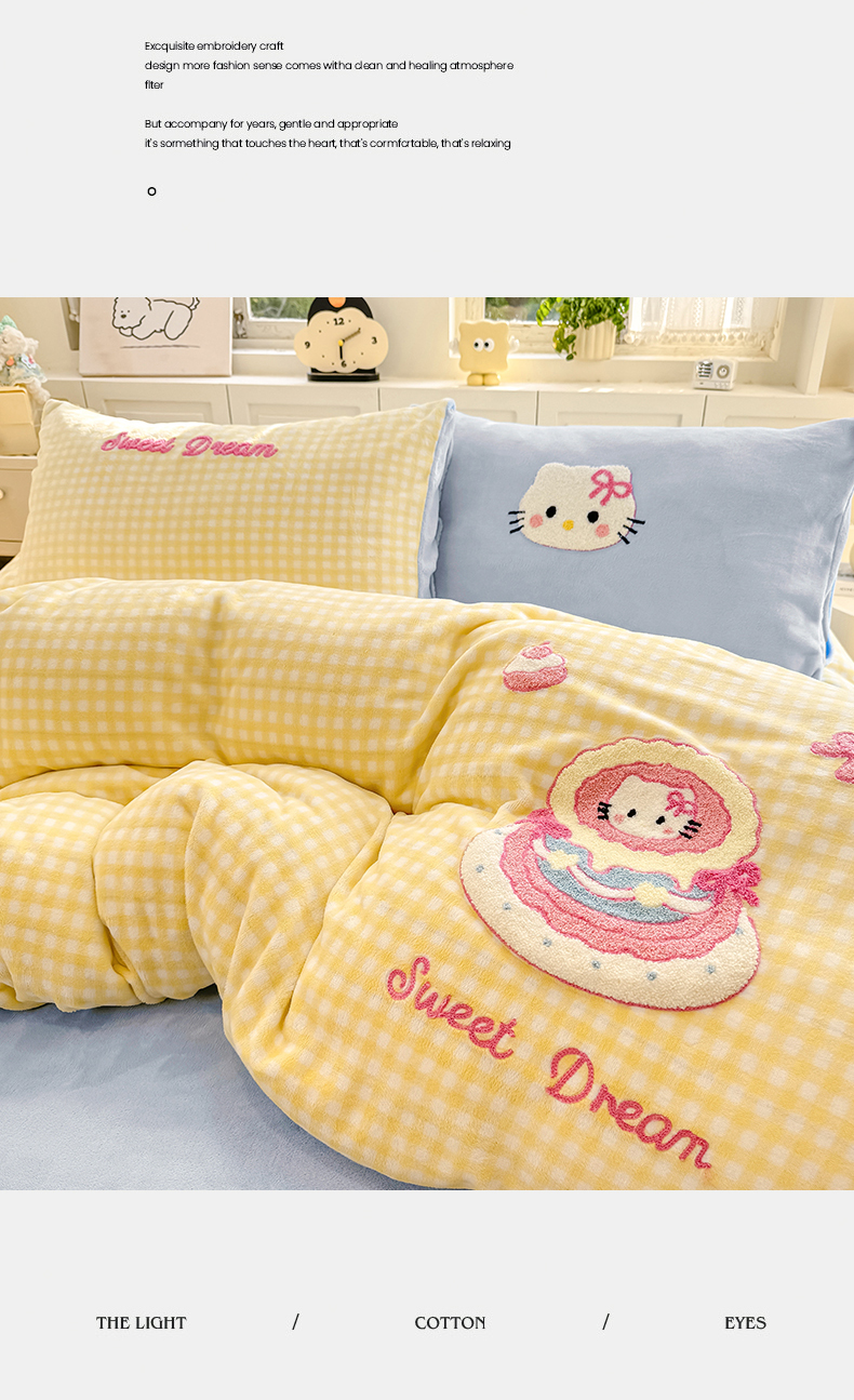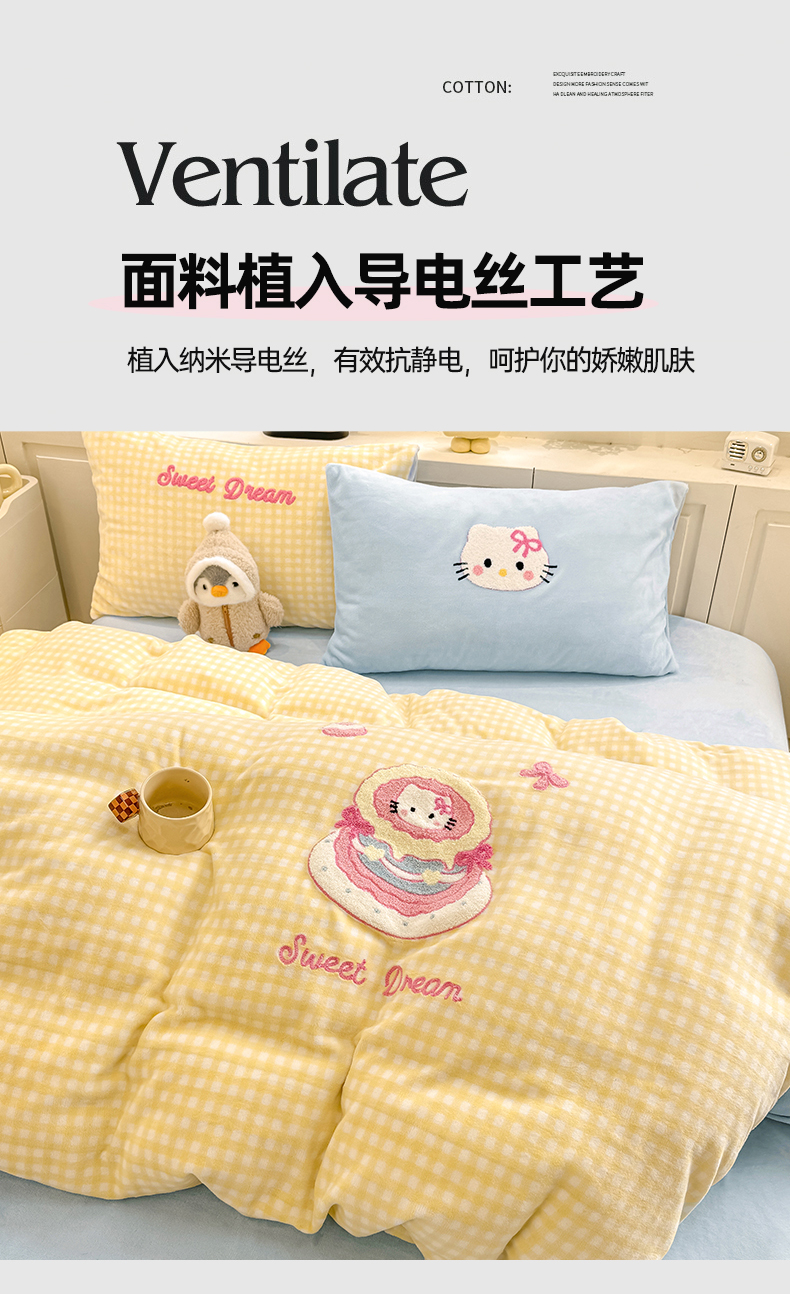 当前位置: 91家纺网 > 商品网购 > 床品套件 > 四件套 > 牛奶绒四件套 > 灰鲸 2025新款牛奶绒毛巾绣苹果狗、蛋糕喵系列四件套 蛋糕喵-黄格+繁星蓝