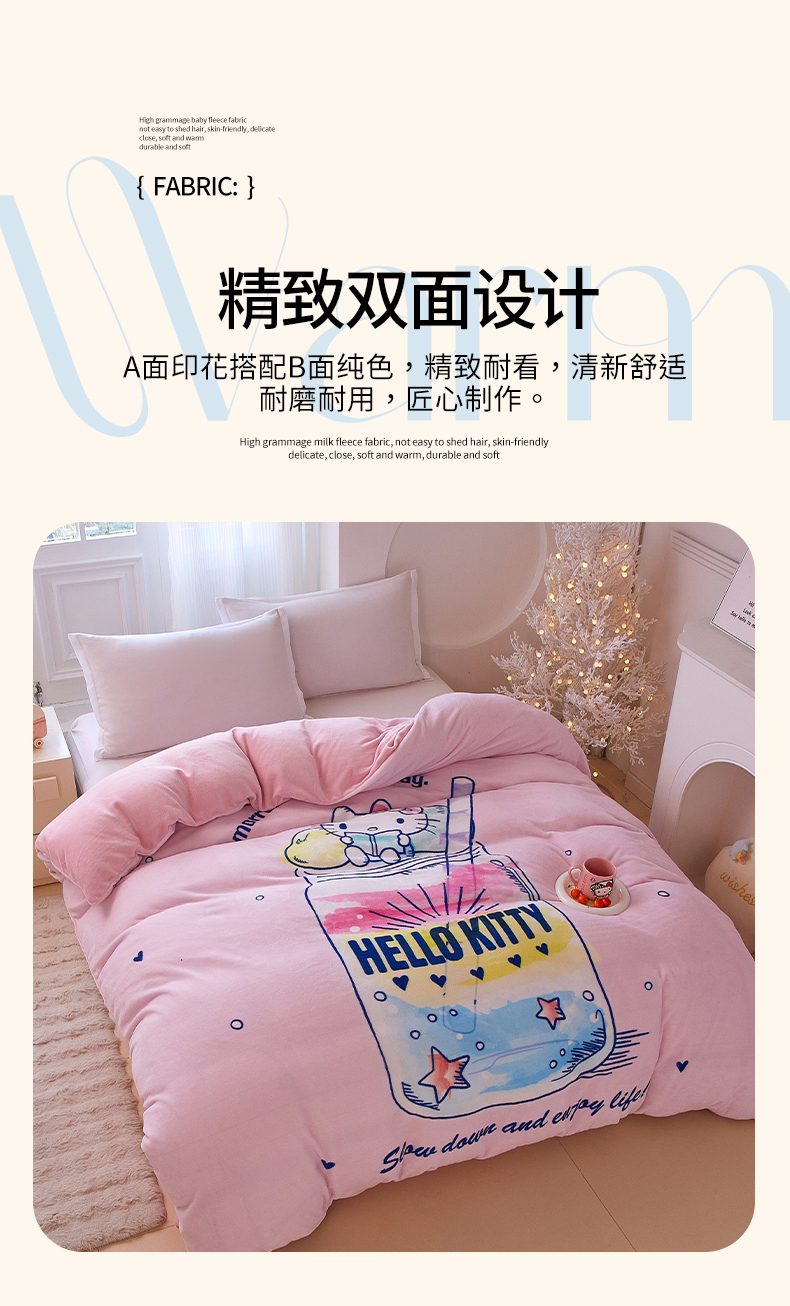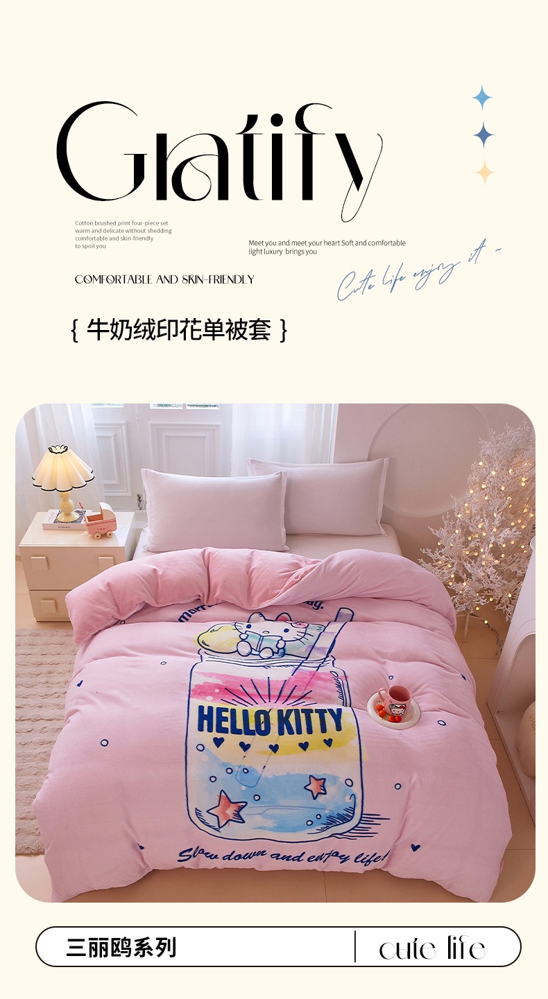 蘭菲家纺 2025新款三丽欧牛奶绒套件系列单品被套 续大杯奶茶