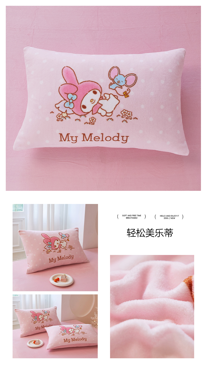商品名称:蘭菲家纺 2025新款三丽欧牛奶绒套件系列单品枕套 可爱KT
