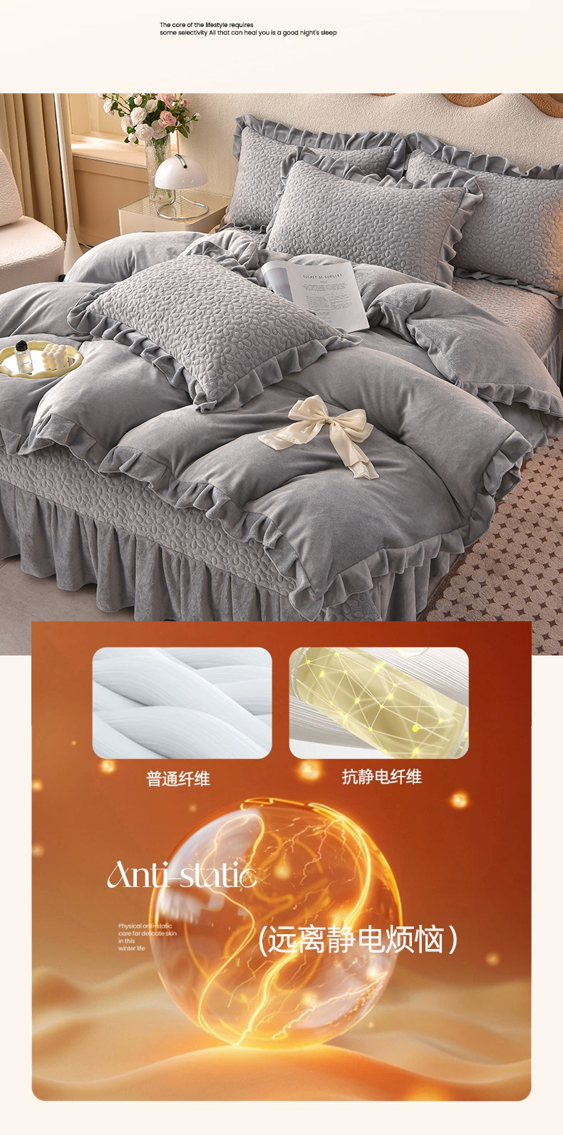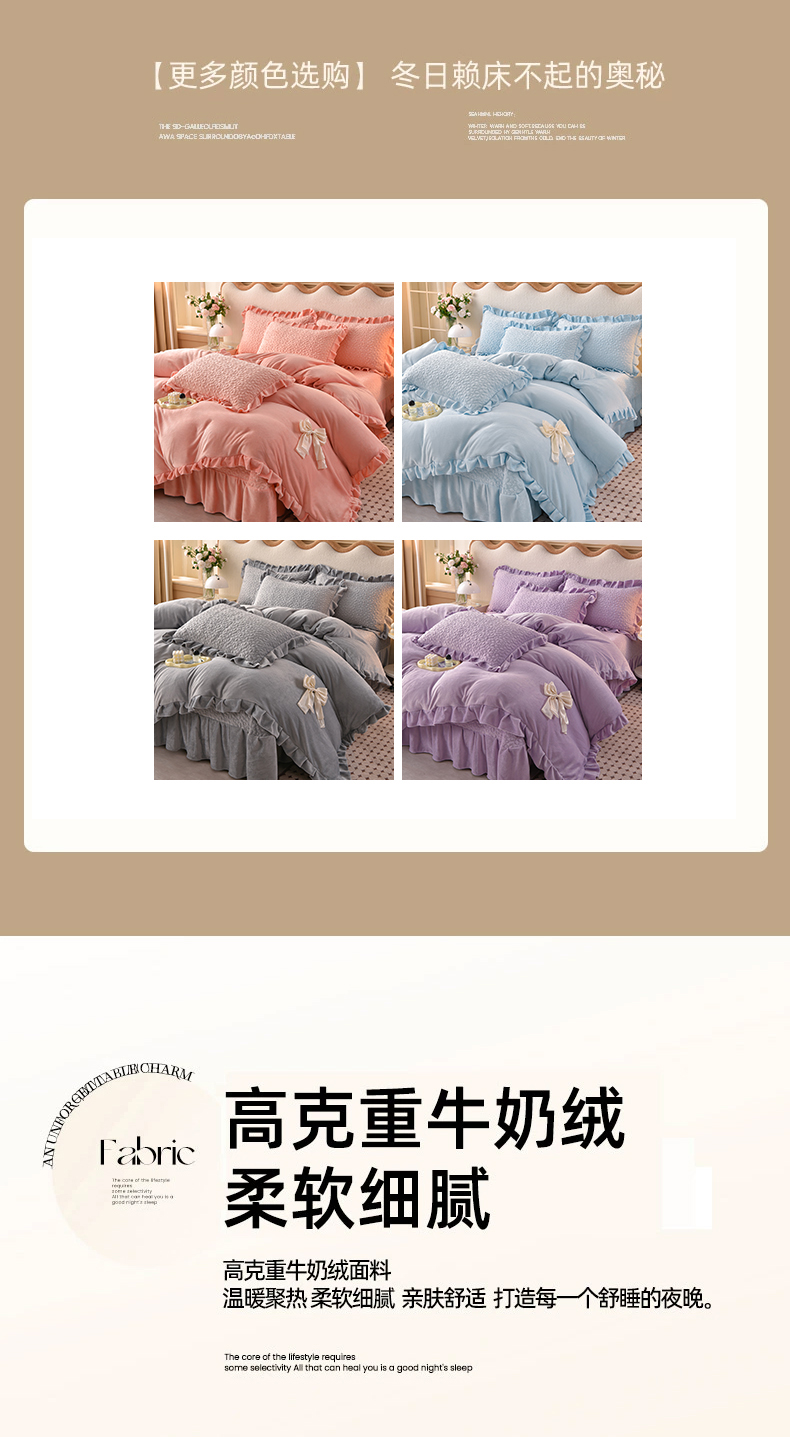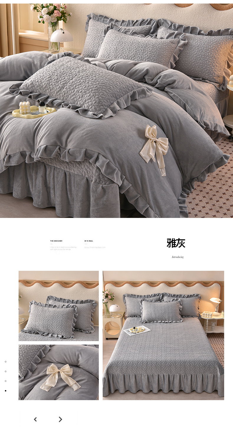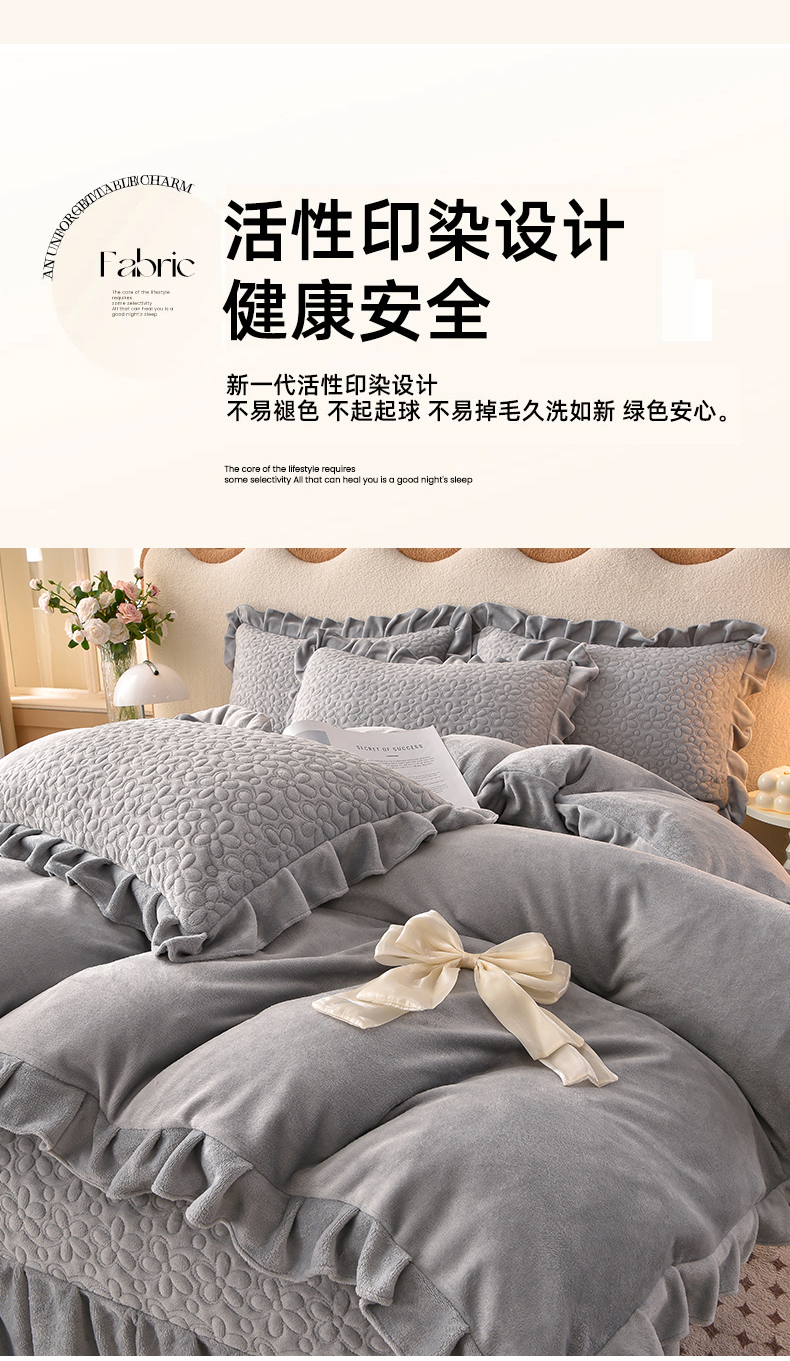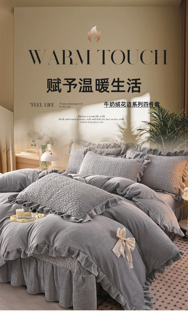 当前位置: 91家纺网 > 商品网购 > 床品套件 > 四件套 > 牛奶绒四件套 > 静缘分 2025新款简约纯色系牛奶绒花边四件套 雅灰