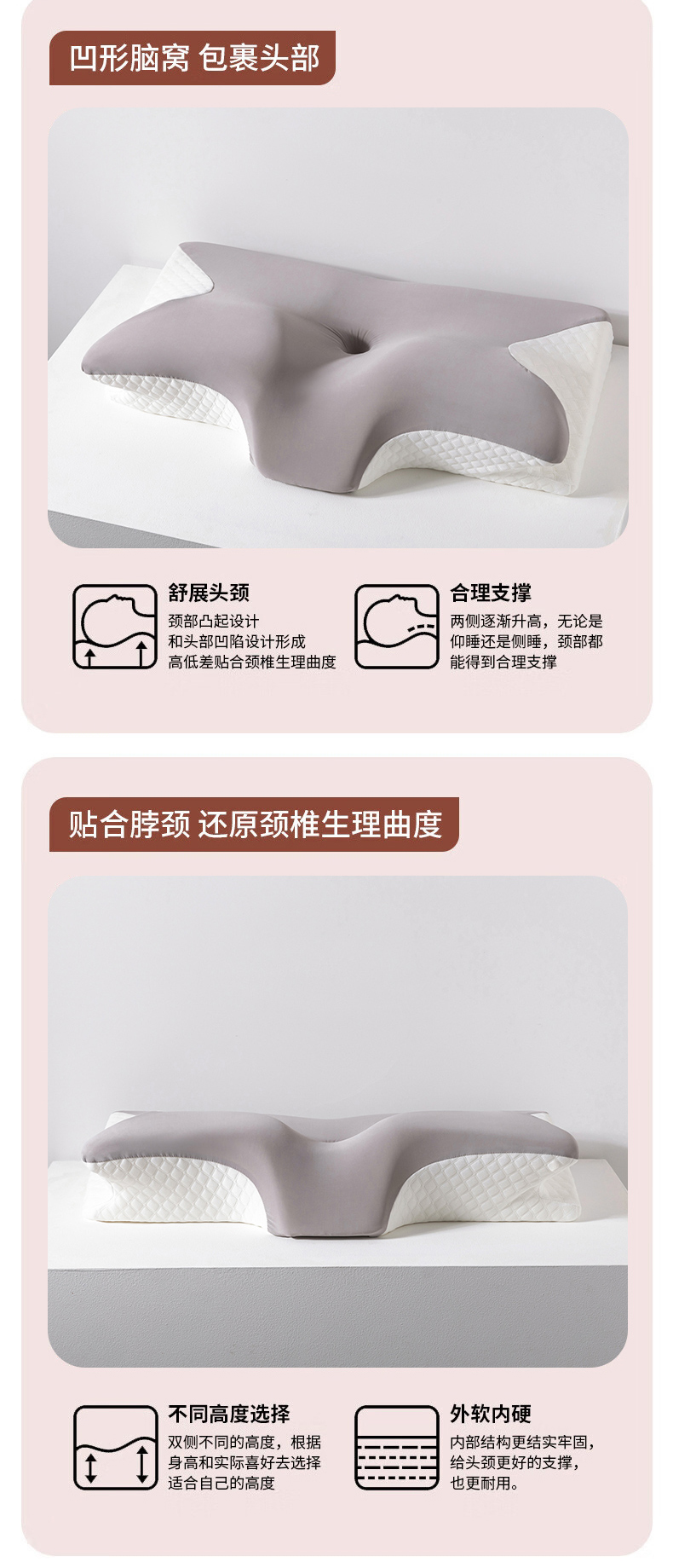 (总)美物匠 2025新款舒适小牛枕枕头枕芯,浅灰,天青色,粉色,深灰,浅蓝,紫色,白色,白黑,白灰,白蓝